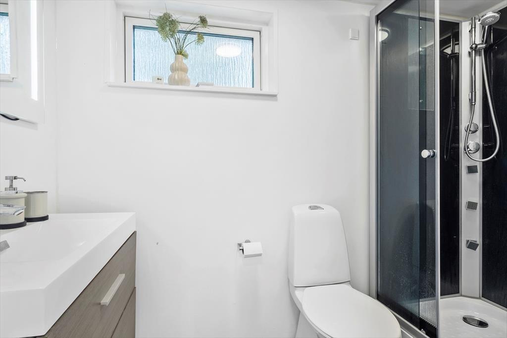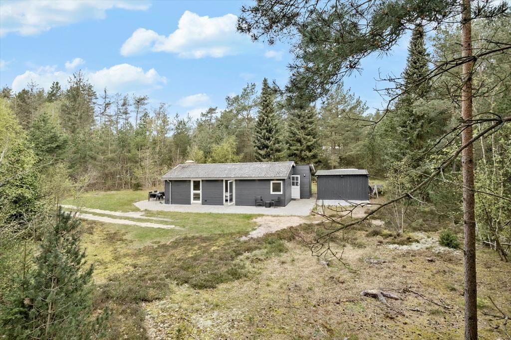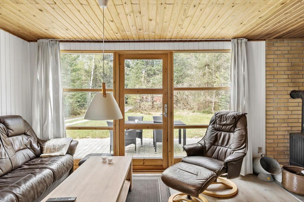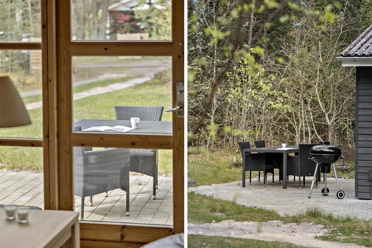 Das große Naturgrundstück ist von hohen Bäumen umgeben - darunter auch schöne Nadelbäume, wie du vielleicht erwartest, wenn die Straße Granborg heißt. Die waldähnliche Vegetation bietet dir einen schönen Anblick, und egal, ob du die Sonnenstunden mit Spielen oder Entspannen verbringst, sodass der Urlaubsalltag in der Nähe des Ferienhauses in ruhiger und abgeschiedener Umgebung stattfindet. Die geflieste Terrassenfläche wird von Osten, Süden und Westen besonnt, sodass du gute Chancen hast, das perfekte Plätzchen zu finden, und auf dem Rasen können Hunde, Kinder und verspielte Erwachsene gerne Ball oder Fangen spielen.