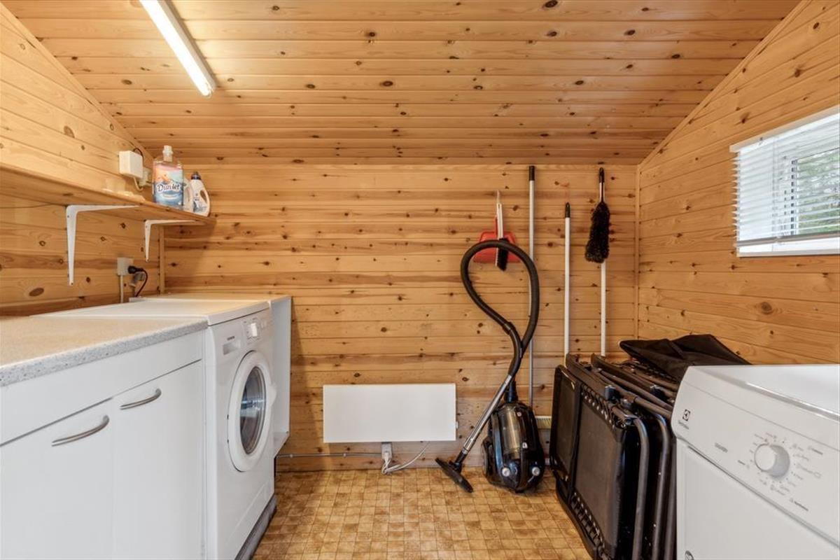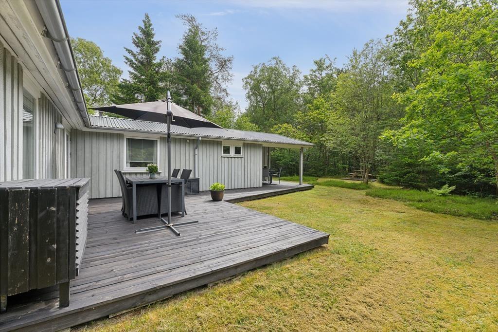 Draußen finden Sie eine große Terrasse, auf der Sie je nach Tageszeit sowohl Sonne als auch Schatten genießen können. Die Terrasse eignet sich hervorragend für gemütliche Mahlzeiten, zum Entspannen in der Sonne und vielleicht für ein leckeres Abendessen auf dem Grill. Das große, naturbelassene Grundstück bietet viel Platz zum Spielen und Erkunden für Kinder und Erwachsene, und die üppige Vegetation rund um das Haus sorgt dafür, dass Sie von der Stille der Natur umgeben sind. Nach einem erlebnisreichen Tag können Sie auf der Terrasse sitzen und die Abendsonne genießen, während sich der Tag langsam dem Ende zuneigt.