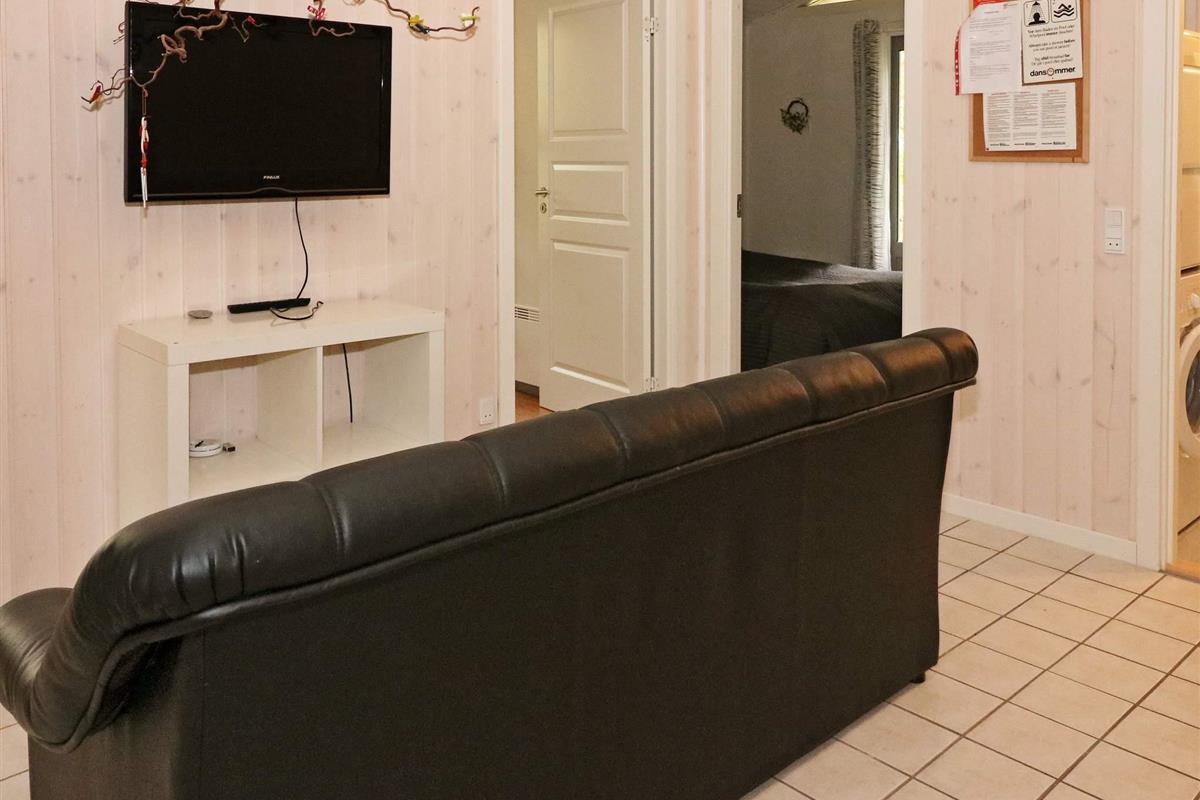 Innen heller Küchen-/Wohnbereich für das Familienleben, mit Zugang zu einer teilweise überdachten Terrassenfläche. Zur technischen Ausstattung gehören auch WLAN und deutsche TV-Sender.