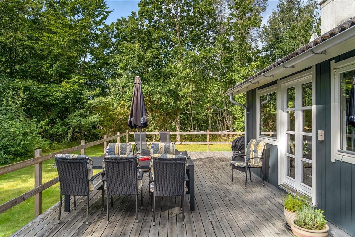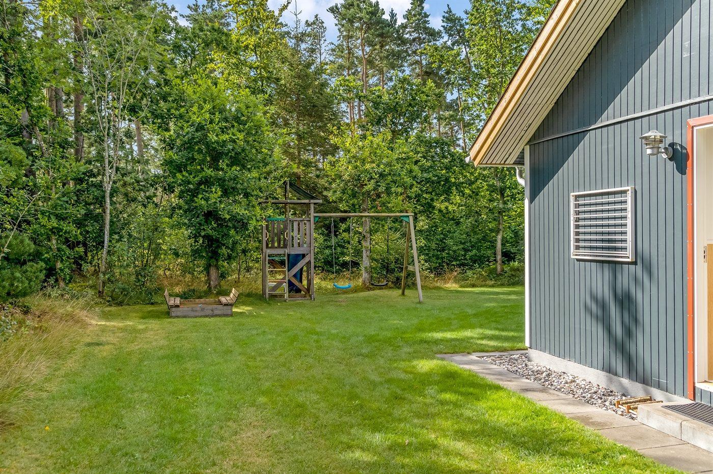 De vakantiewoning is gelegen op een 1700 m² groot natuural grond. Afstand tot de zee 1200 m. Afstand tot de fjord 1800 m. Dichtstbijzijnde winkel 4300 m. Bij de vakantiewoning hoort terras. Schommel. Zandbak. Speeltoren. Glijbaan. Op zwoele avonden zorgt de buitenhaard voor een gezellige sfeer. Barbecue. Parkeerplaats bij het huis.