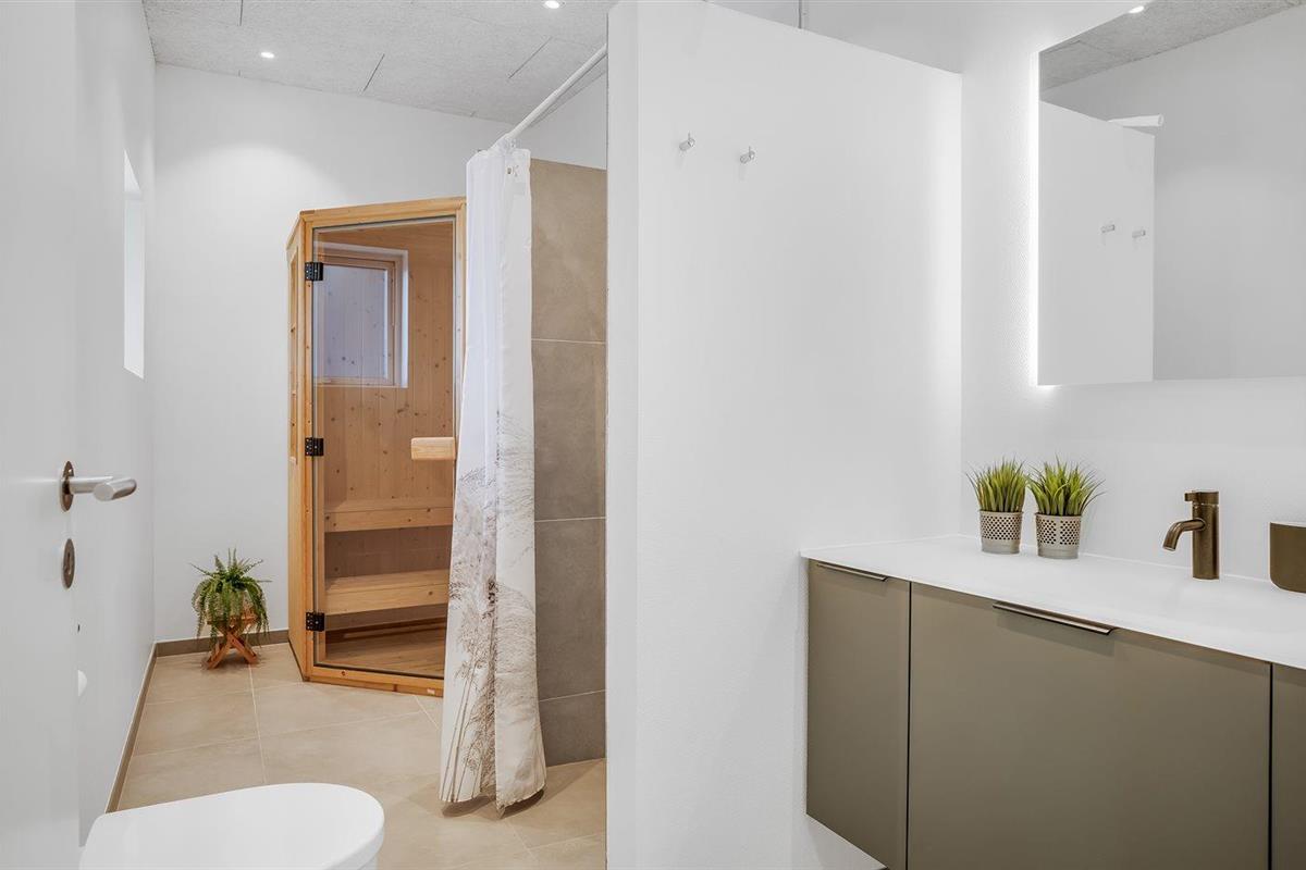 Er is 2 badkamers met douchehok en 2 toiletten. Er is vloerverwarming in 2 van de badkamers. De sauna biedt de gelegenheid tot ontspanning.