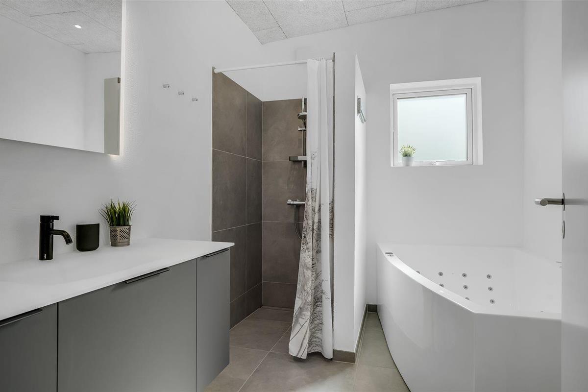 Modern vakantiehuis in Helberskov met sauna, hot tub en speelruimte, vlakbij zee en natuur.