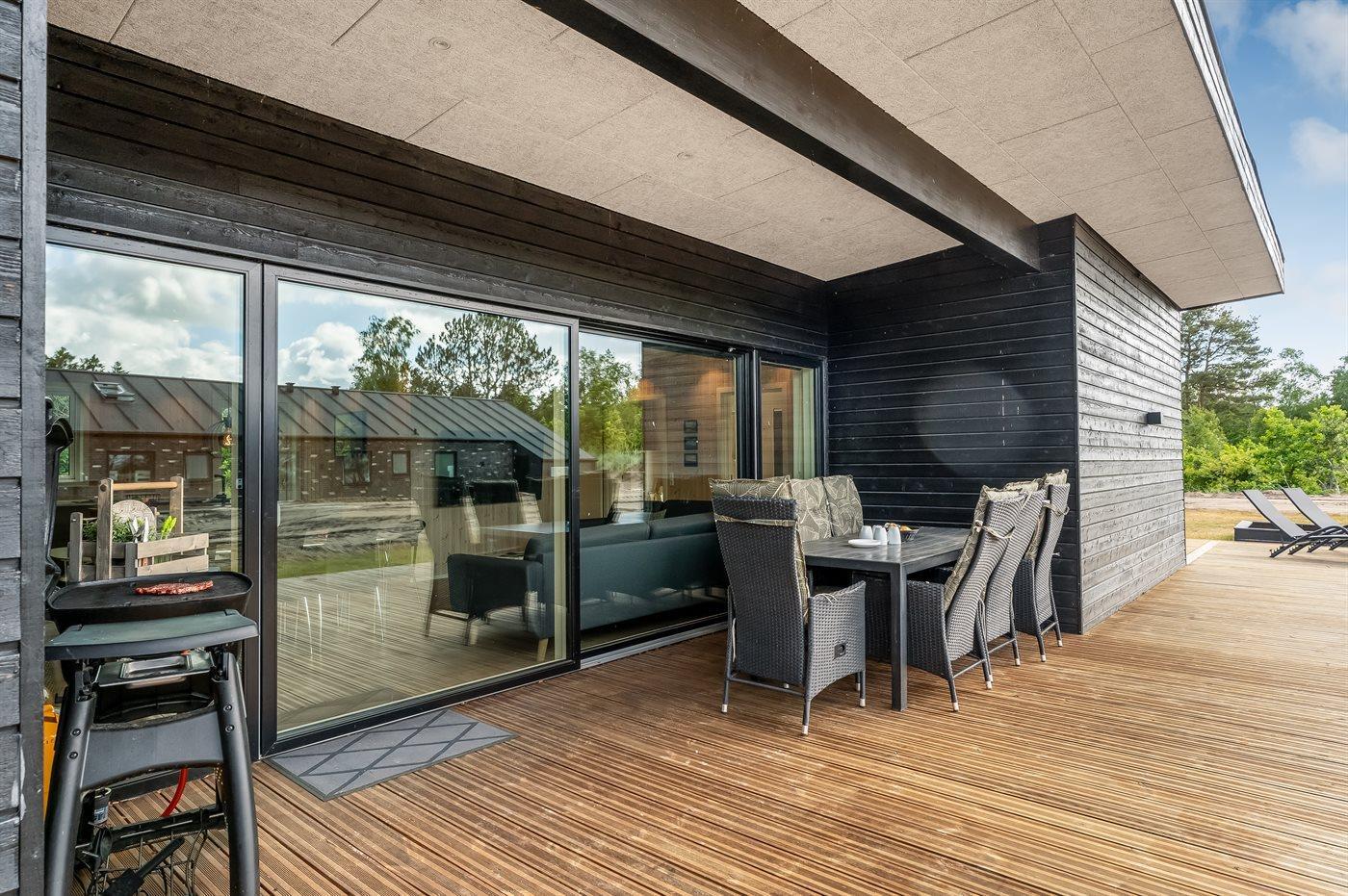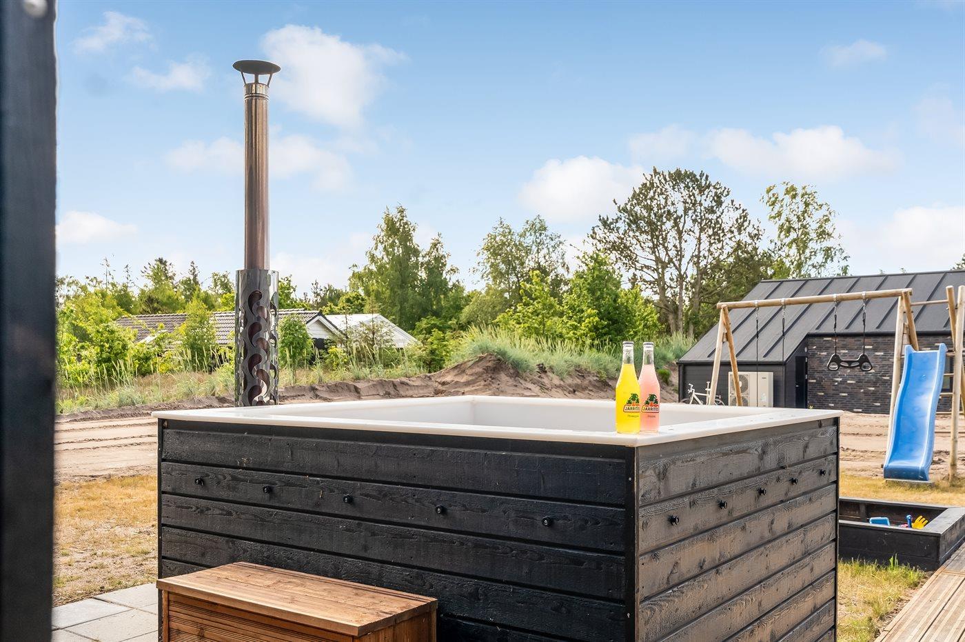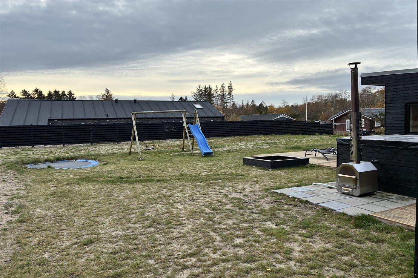 De vakantiewoning is gelegen op een 1300 m² groot natuural grond. Afstand tot de zee 500 m. Afstand tot de fjord 3000 m. Dichtstbijzijnde winkel 3000 m. Er is een golfbaan op een afstand van 14000 m. Bij de vakantiewoning hoort 75 m² terras. Daarnaast is er een 25 m² groot overdekt terras. Zandbak. Trampoline. Speeltoren. Glijbaan. Buitendouche. Barbecue. Het huis heeft een stopcontact voor het opladen van een elektrische auto. CEE-stekker. Met 11 kW-laadvermogen. Parkeerplaats bij het huis.