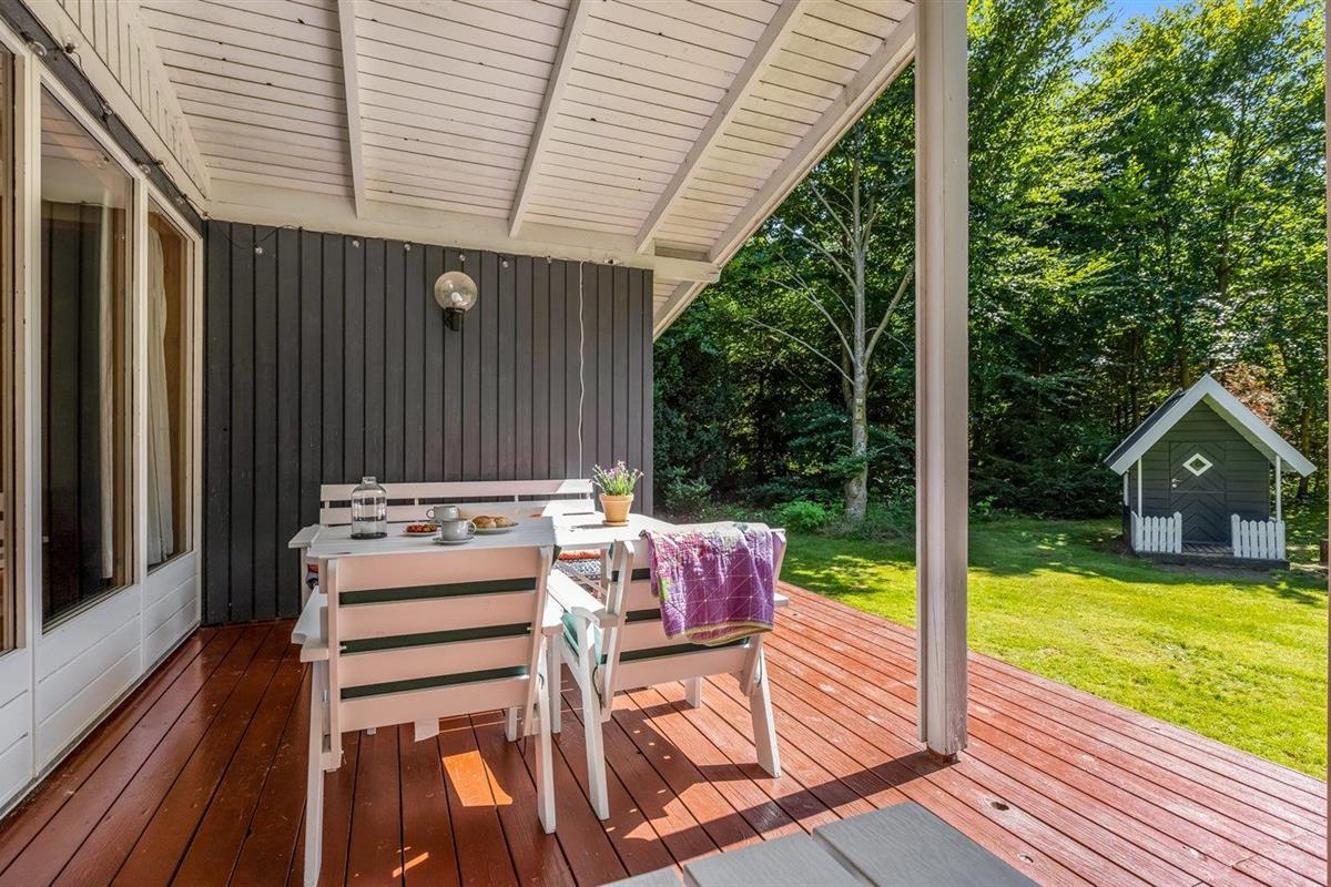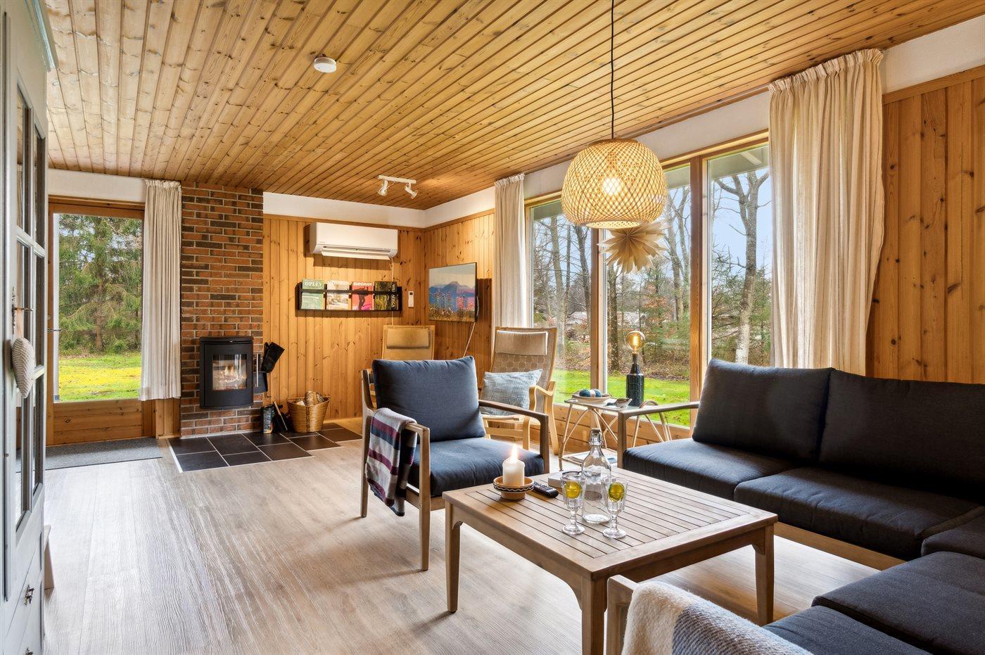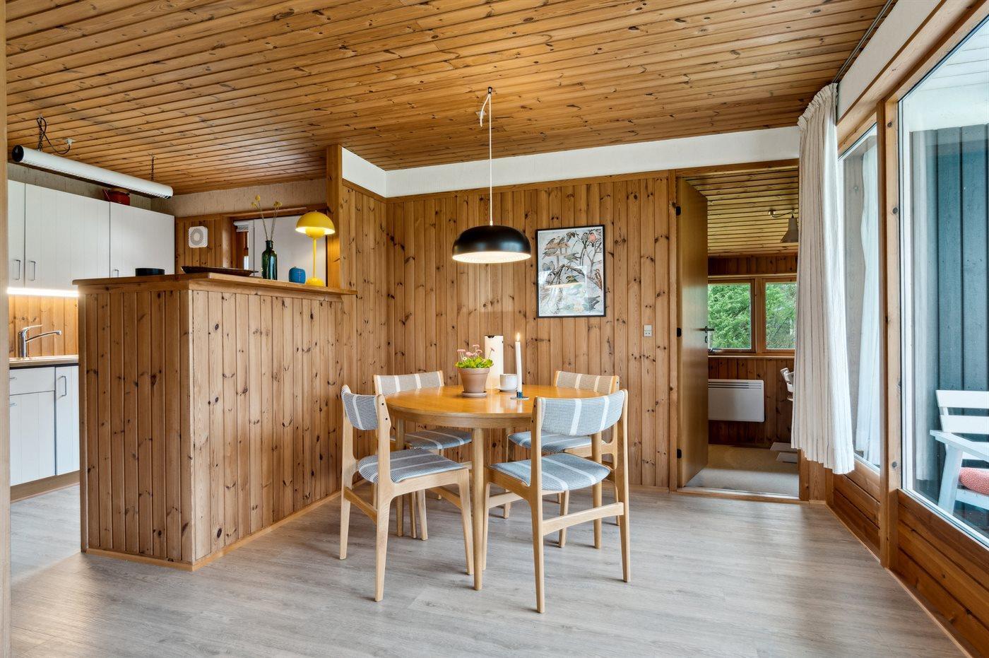 De vakantiewoning is gelegen op een 2643 m² groot natuural grond. Afstand tot de zee 700 m. Afstand tot de fjord 175 m. Dichtstbijzijnde winkel 3500 m. Bij de vakantiewoning hoort terras. Daarnaast is er een overdekt terras. Speelhuisje. Voetbaldoel. Barbecue. Parkeerplaats bij het huis.