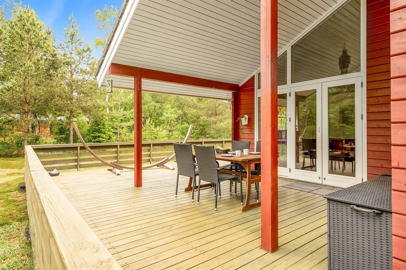Gezellig vakantiehuis nabij zee in Helberskov met ruime terrassen en moderne voorzieningen.