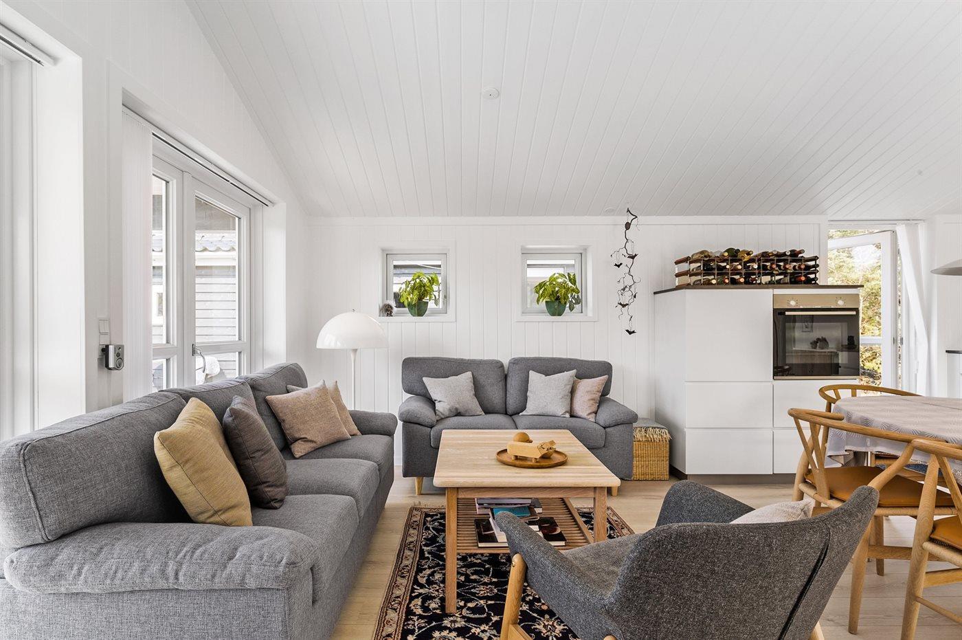 De vakantiewoning is gelegen op een 1225 m² groot aangelegde tuin. Afstand tot de zee 250 m. Afstand tot de fjord 1650 m. Dichtstbijzijnde winkel 2570 m. Er is een golfbaan op een afstand van 14300 m. Daarnaast is er een 10 m² groot overdekt terras. Bij de vakantiewoning hoort terras. Schommel.Vuurplaats. Barbecue. Het huis heeft een stopcontact voor het opladen van een elektrische auto. Parkeerplaats bij het huis.