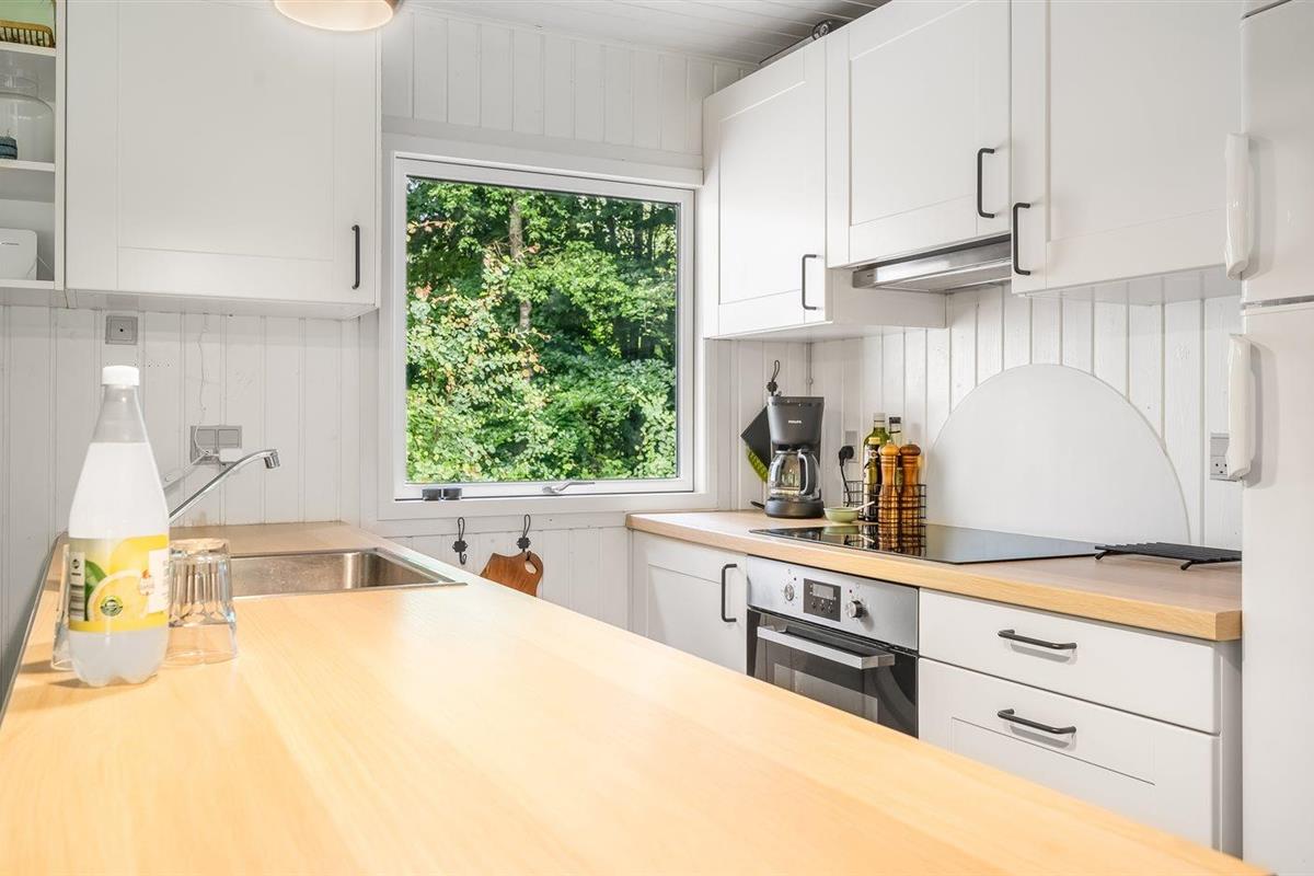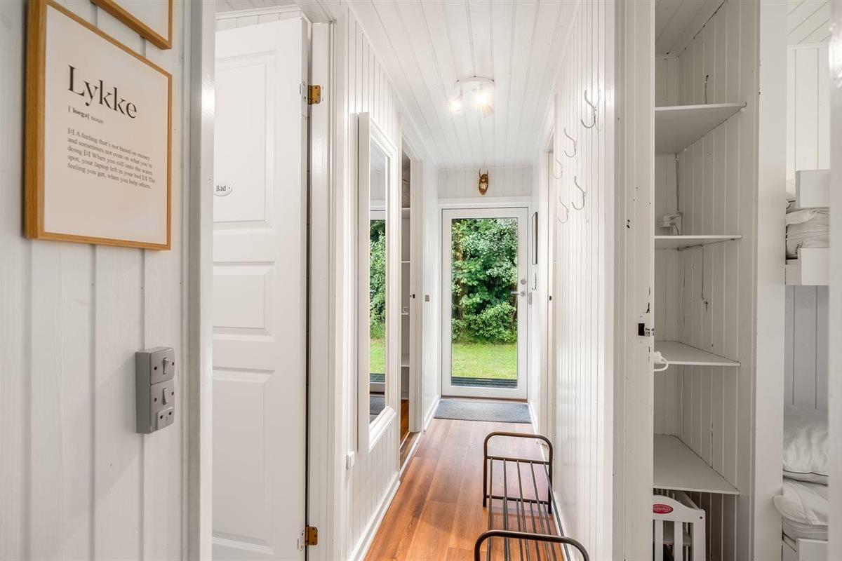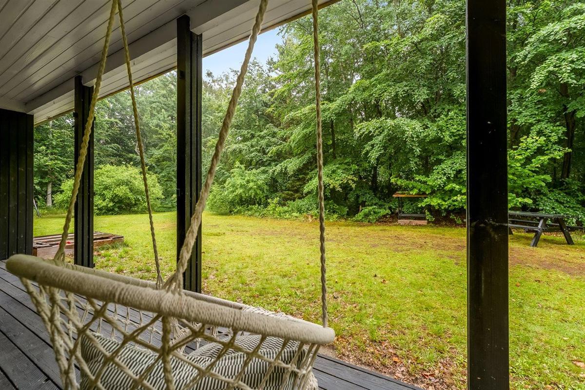 De vakantiewoning is gelegen op een 2499 m² groot natuural grond. Afstand tot de zee 400 m. Afstand tot de fjord 2100 m. Dichtstbijzijnde winkel 5300 m. Er is een golfbaan op een afstand van 14850 m. Bij de vakantiewoning hoort terras. Daarnaast is er een overdekt terras. Gereedschapsruimte. Schommel. Zandbak. Voetbaldoel. Shelter. Op zwoele avonden zorgt de buitenhaard voor een gezellige sfeer. Barbecue. Het huis heeft een stopcontact voor het opladen van een elektrische auto. Parkeerplaats bij het huis.