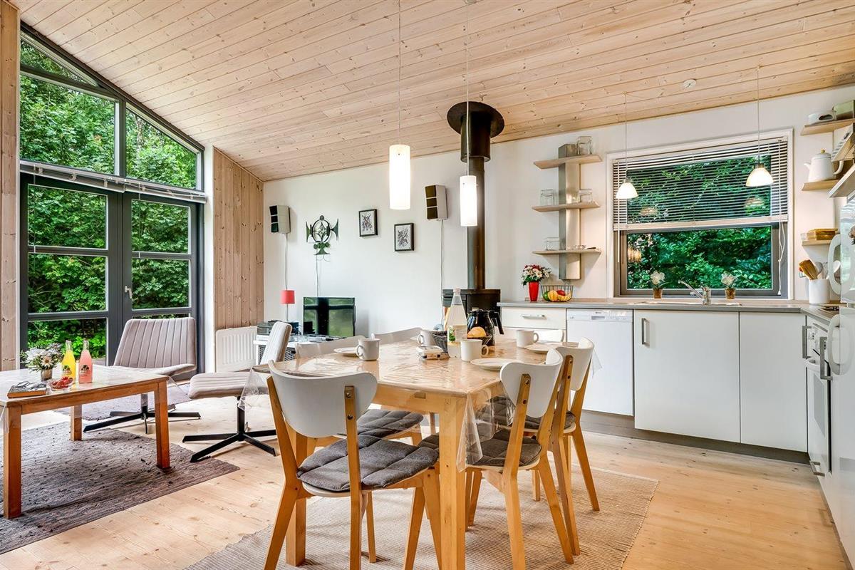De vakantiewoning is gelegen op een 1716 m² groot natuural grond. Afstand tot de zee 500 m. Afstand tot de fjord 1700 m. Dichtstbijzijnde winkel 4440 m. Er is een golfbaan op een afstand van 13300 m. Bij de vakantiewoning hoort terras. Daarnaast is er een overdekt terras. Barbecue. Parkeerplaats bij het huis.