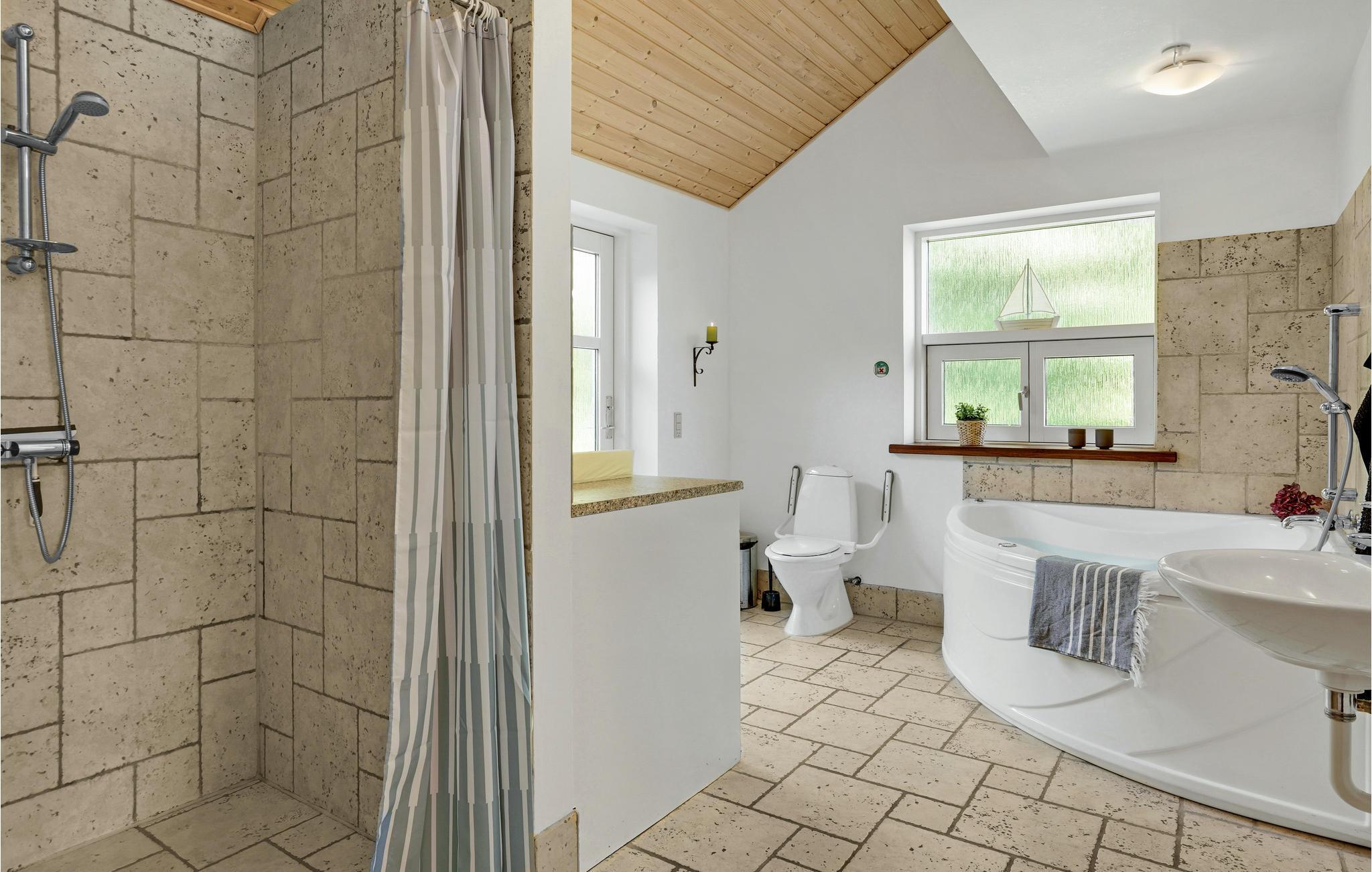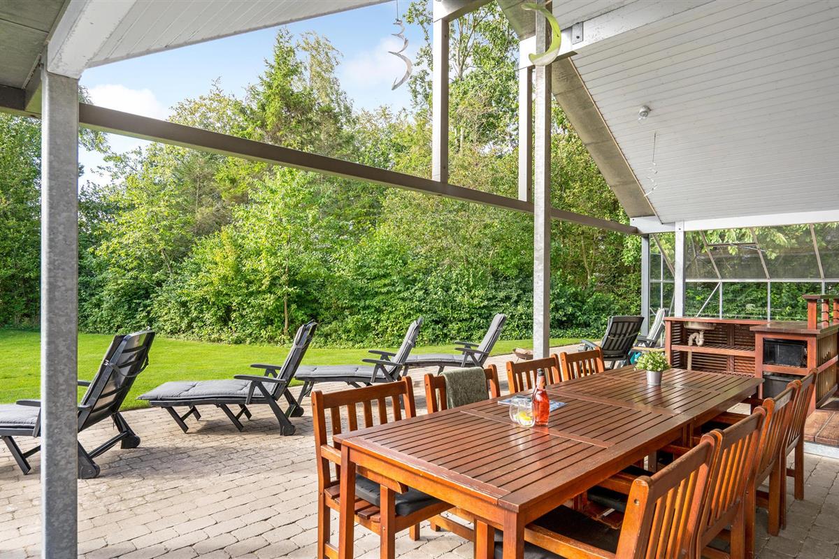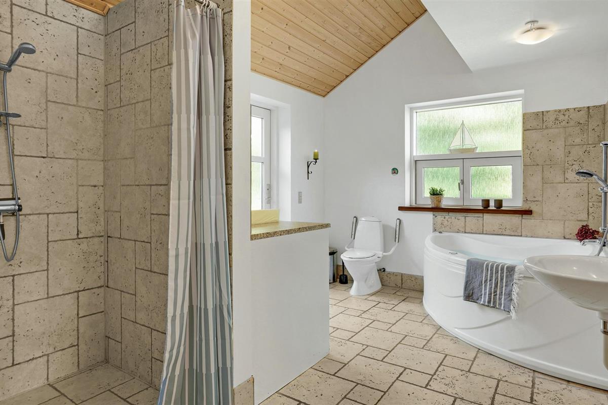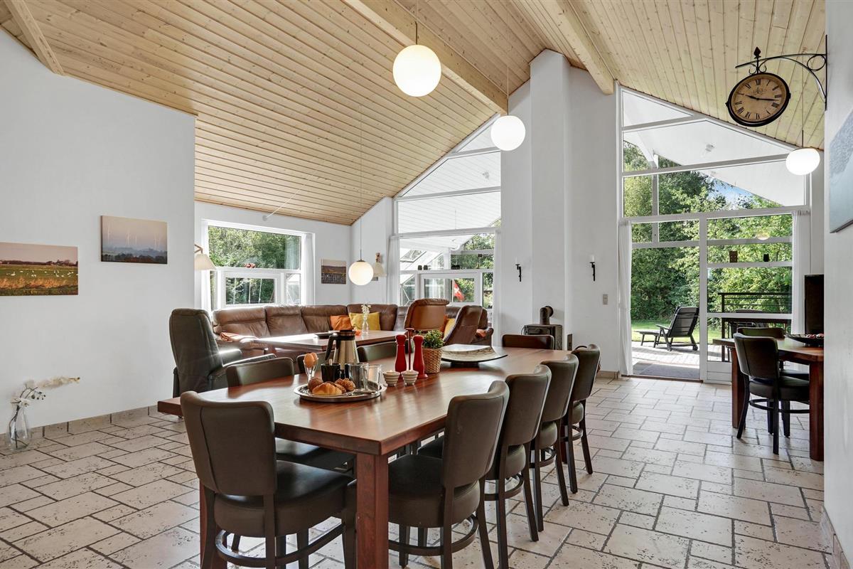 De kamers zijn verdeeld over 2 verdiepingen. U vindt er een mooie woonkamer met uitgang naar het terras. Er is een aparte kamer met een grote flatscreen-tv. De praktische indeling met veel slaapkamers en vier badkamers maakt het huis geschikt voor een verblijf van twee of drie gezinnen. Het grote open en overdekte terras maakt een verblijf in de buitenlucht het hele jaar door mogelijk. Tijdens een excursie kunt u Mariager, de stad van de rozen, ervaren. Een idyllische oase met oude vakwerkhuizen en geplaveide straatjes. Bezoek ook het zoutcentrum van Denemarken (Danmarks saltcenter) en dobber in de zogenaamde Rode Zee.