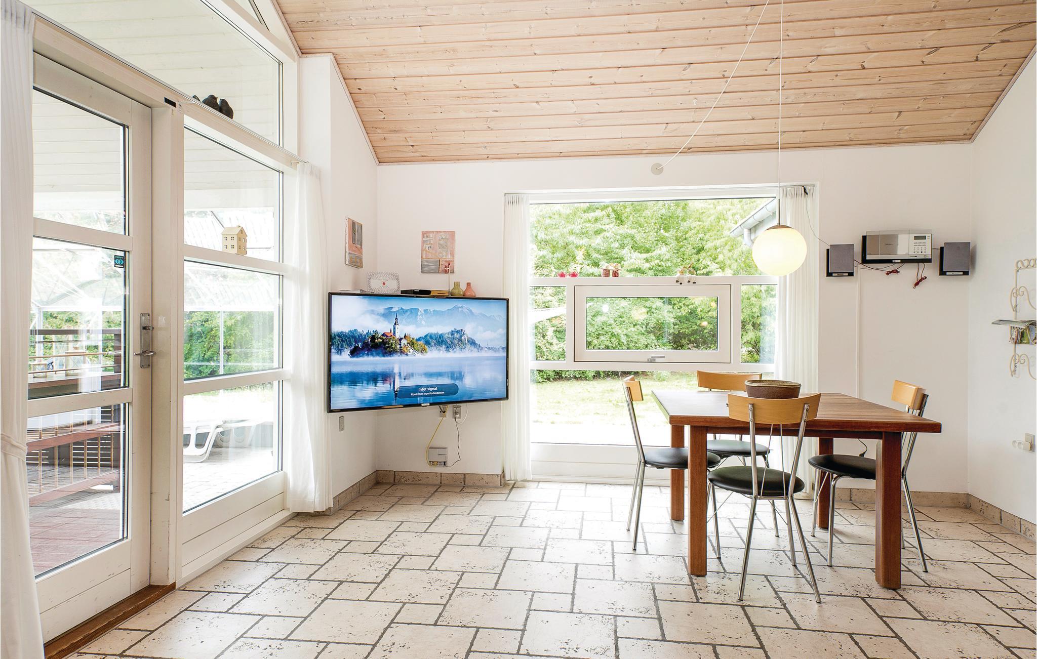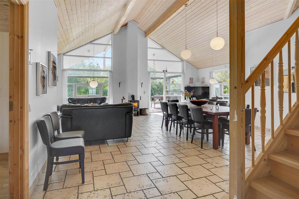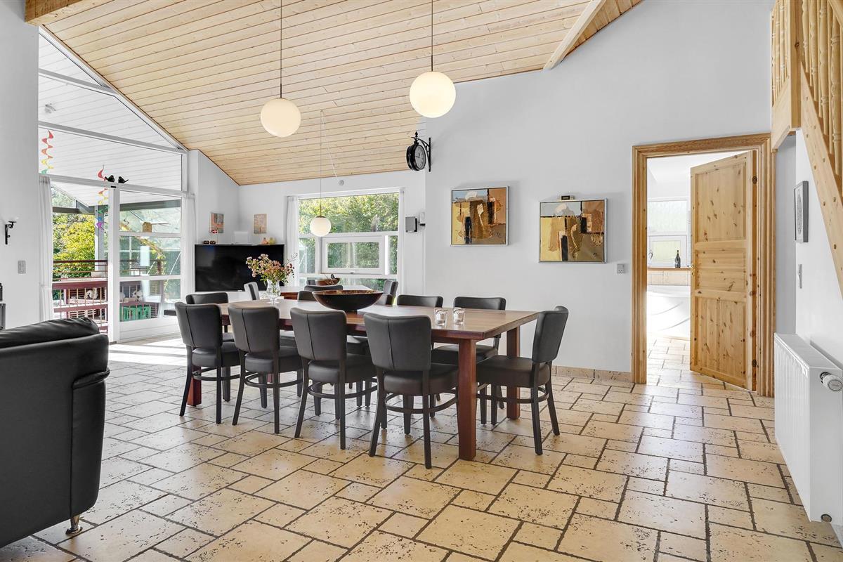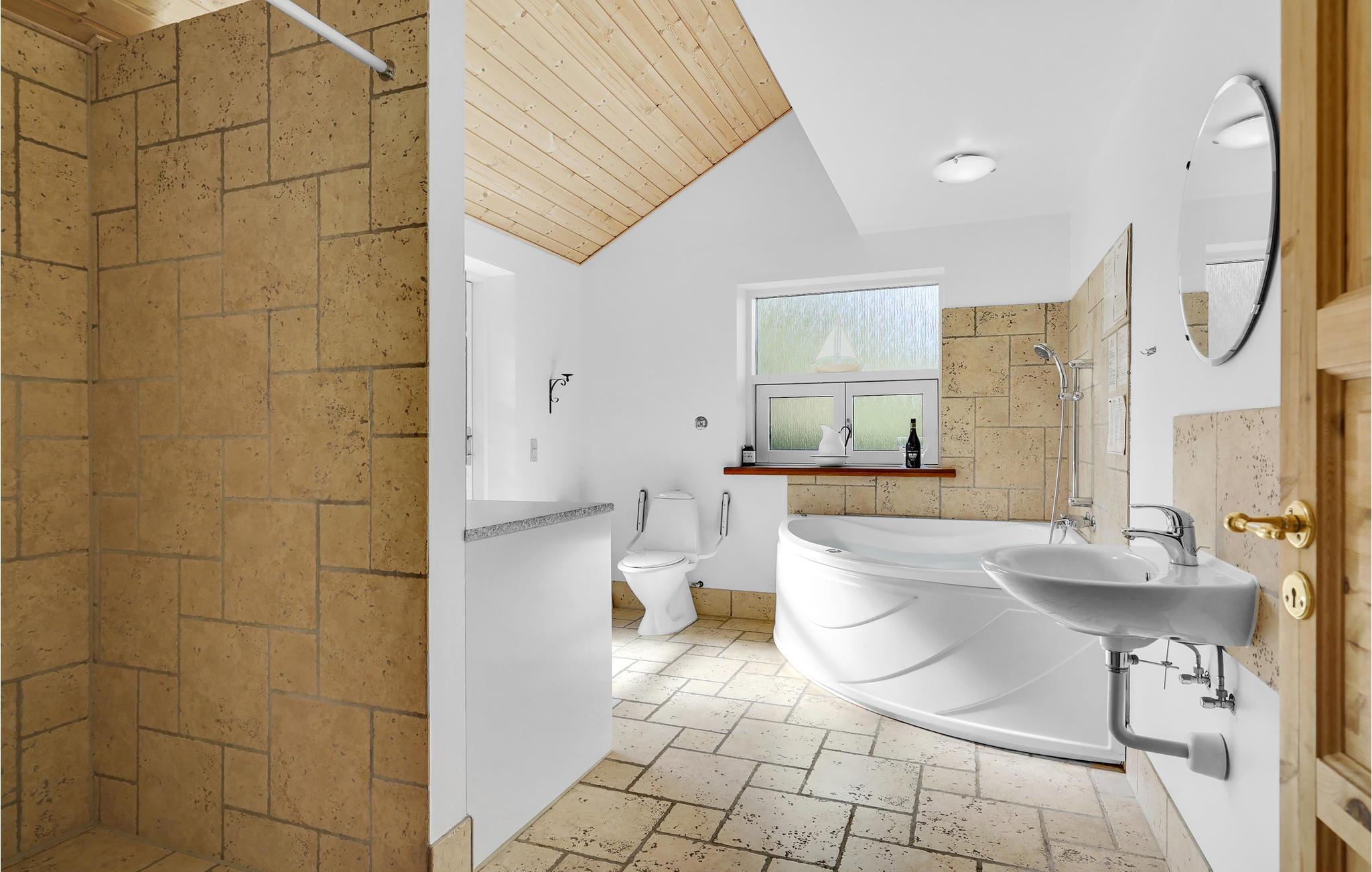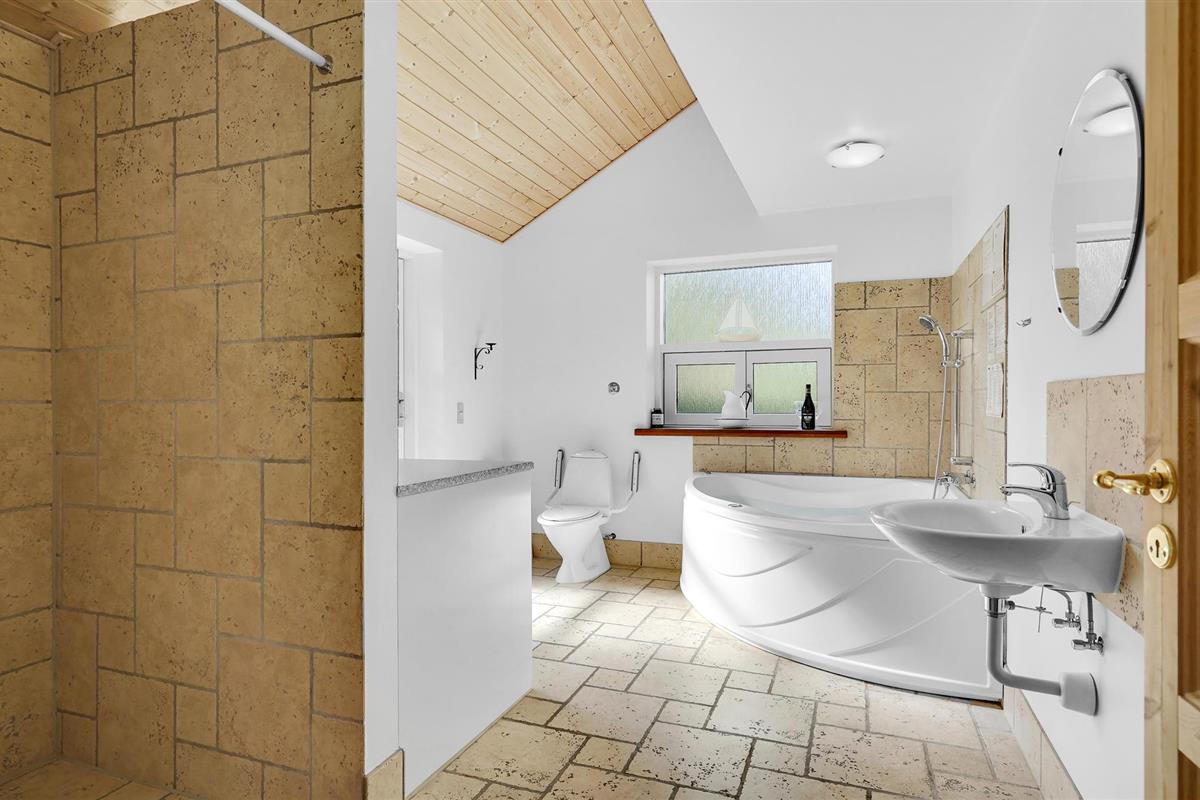 Dit goed gebouwde vakantiehuis ligt in Helberskov. De kamers zijn verdeeld over 2 verdiepingen. U vindt er een mooie woonkamer met uitgang naar het terras en een tv-ruimte met een grote flatscreen. De praktische indeling met veel slaapkamers en vier badkamers maakt het huis geschikt voor een verblijf van twee of drie gezinnen. Dankzij het grote open en overdekte terras kunt u het hele jaar door buiten verblijven. Tijdens een excursie kunt u Mariager, de stad van de rozen, ervaren. Een idyllische oase met oude vakwerkhuizen en geplaveide straatjes. Bezoek ook het zoutcentrum van Denemarken (Danmarks saltcenter) en dobber in de zogenaamde Rode Zee. Langs de fjord vindt u leuke dorpjes, kleine herbergen, mooie kerkjes en oude kloosters. Als u wilt ontspannen op het strand, moet u ook uw hengel meenemen. Een korte rit brengt u naar het kleine Vildmose Museum en "Remissen" in Dokkedal. Het huis is geschikt voor rolstoelgebruikers. Er is een strandweide aan de dichtstbijzijnde kust. Als dichtstbijzijnde zandstrand kunnen wij het badstrand bij Øster Hurup aanbevelen. Verbruikskosten en eindschoonmaak worden direct bij het huis betaald.