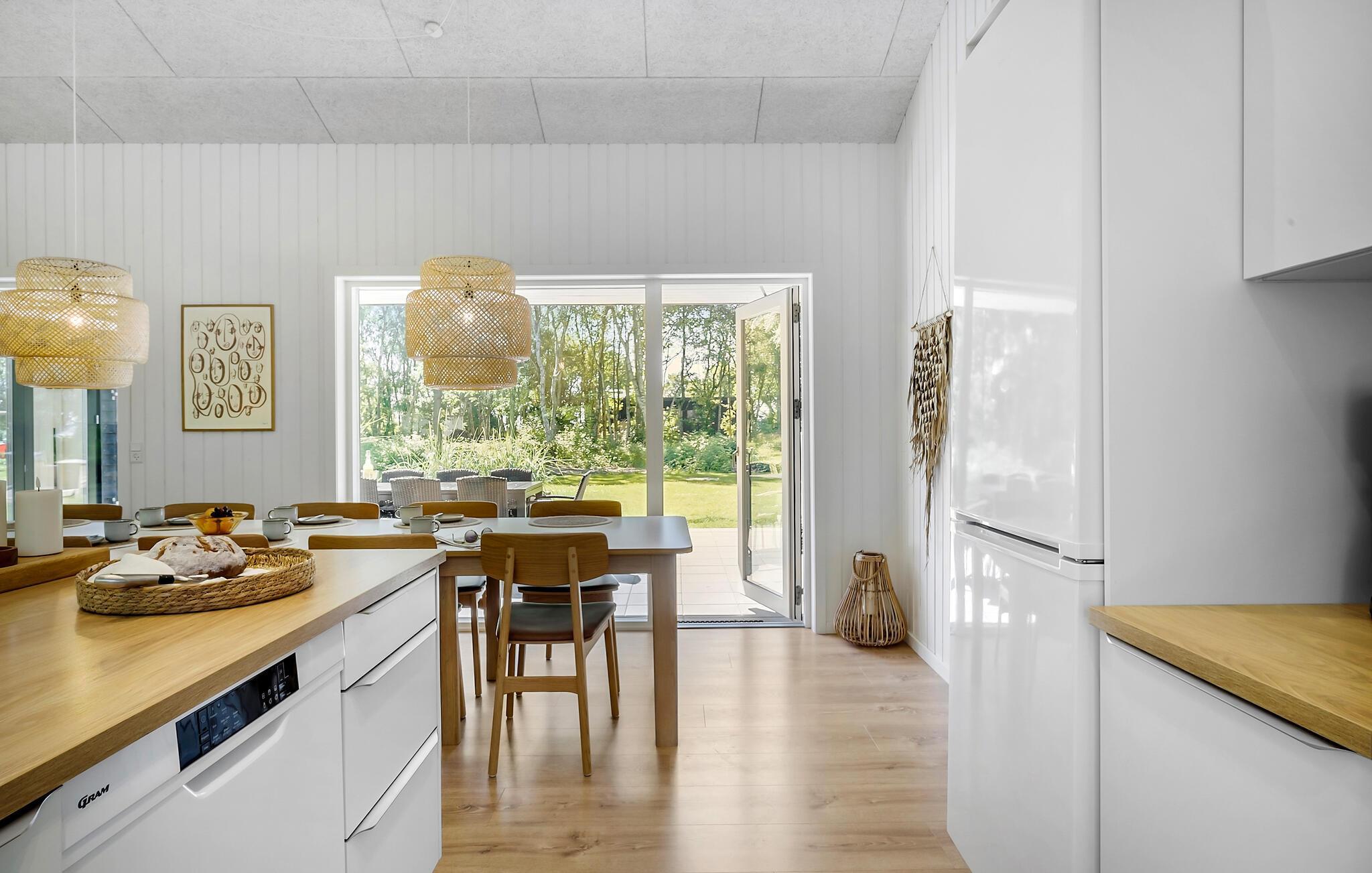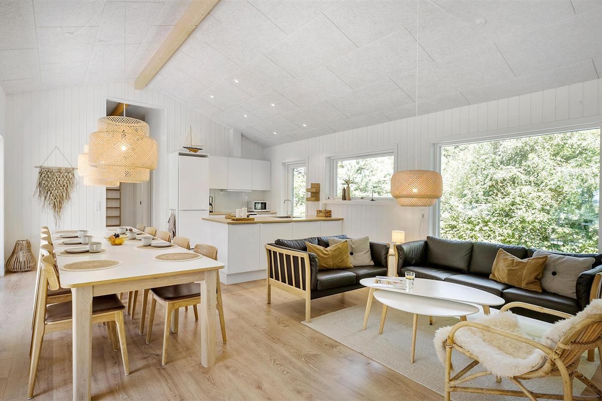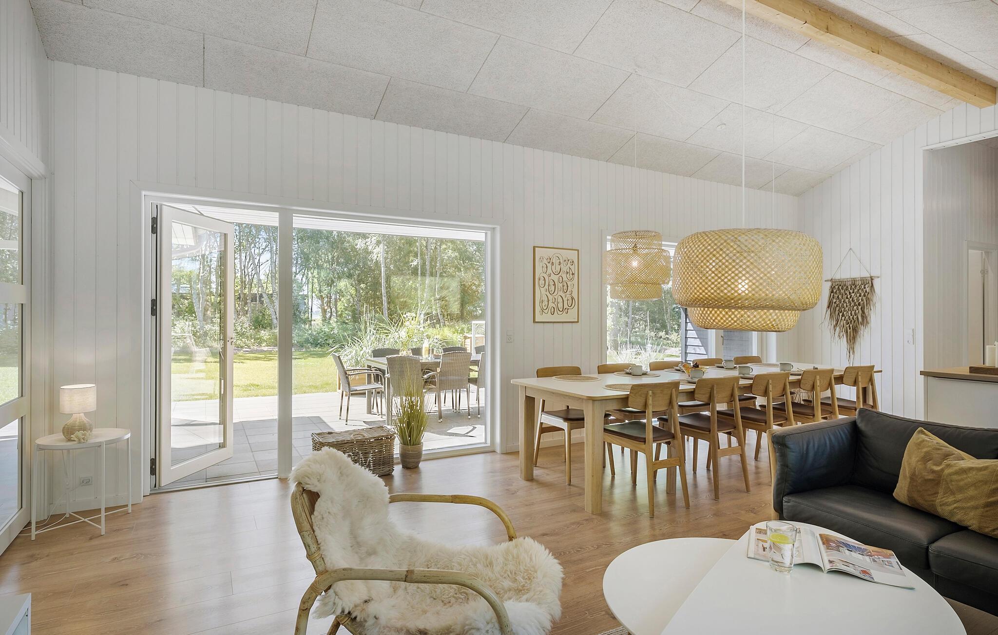 Het lichte open woonconcept laat de ruime woonkamer stralen, terwijl de moderne meubels voor een gezellige sfeer zorgen. Hier kunt u het uzelf gemakkelijk maken terwijl u samen tv kijkt, kaartspelletjes speelt of zelfs bij slecht weer geniet van de vloerverwarming van het huis terwijl u achterover leunt met een roman. Gebruik het Finse houten bad en de sauna om te ontspannen en optimaal van uw vakantie te genieten. Het terras is ook een geweldige plek om te ontspannen of samen buiten te ontbijten. De barbecue staat ook klaar voor gebruik en om u mooie avonden te bereiden met vers gegrild eten en een glas wijn.