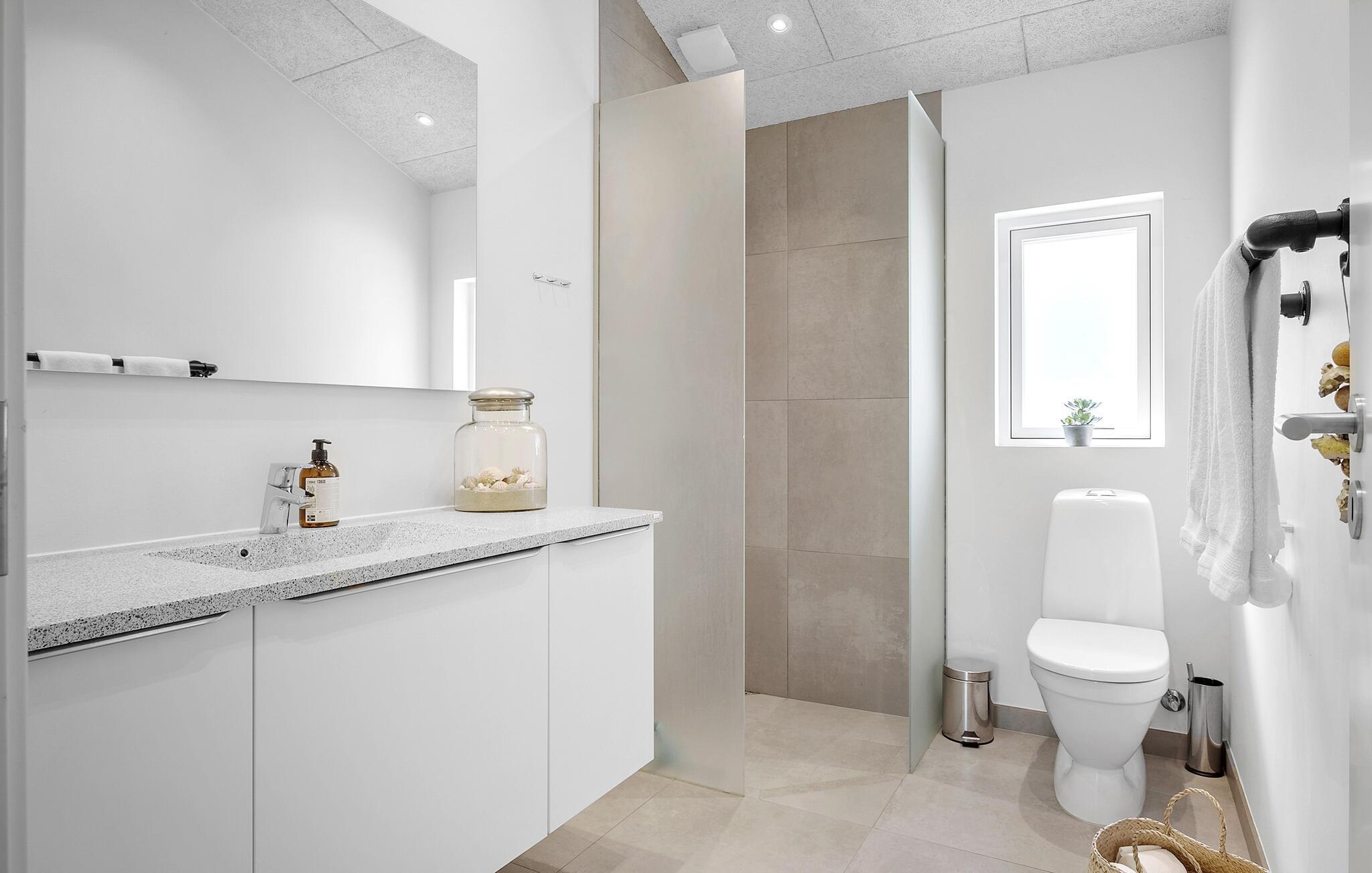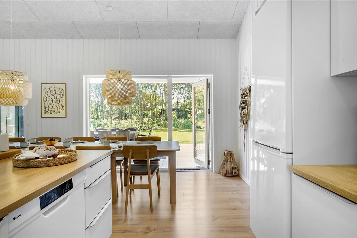 In 200 m bereikt u het strand, waar u gemakkelijk kunt wandelen, zwemmen of vliegeren. In ongeveer 3 km bereikt u ook de dichtstbijzijnde vis- en winkelfaciliteiten, evenals ongeveer 7 km verder een minigolfbaan, een overdekt zwembad of een tennisbaan. De milde kust verwelkomt al haar gasten die hier willen genieten van het strandleven, waar het Kattegat zich van zijn vriendelijkste kant laat zien. Het gebied bij Hals en Hou is ideaal voor kinderen van alle leeftijden om te ravotten op een 8 km lang wit zandstrand zonder verkeer. Het heuvelachtige landschap met zijn prachtige bossen nodigt uit tot verfrissende wandelingen en in de gezellige havens van Hals en Hou kunt u met een Deens Gammeldaws ijsje in de hand de schepen voorbij zien varen, die binnenkomen of uitgaan.