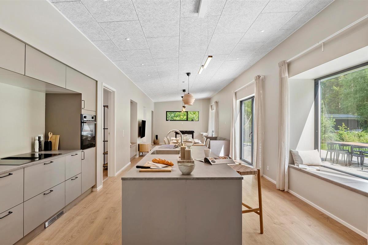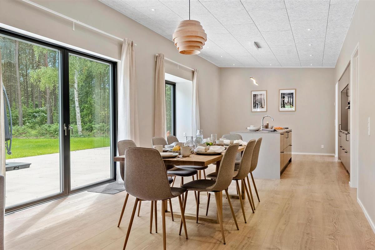 Dit prachtige huis maakt indruk met een moderne stijl die elegantie, warmte en ruimtelijkheid combineert. Grote ramen laten veel natuurlijk licht binnen, terwijl een warme houten look en elegante meubels een gezellige sfeer creëren. Bereid heerlijke maaltijden in de moderne keuken en geniet ervan aan de lange eettafel met uitzicht op de natuurlijke omgeving.