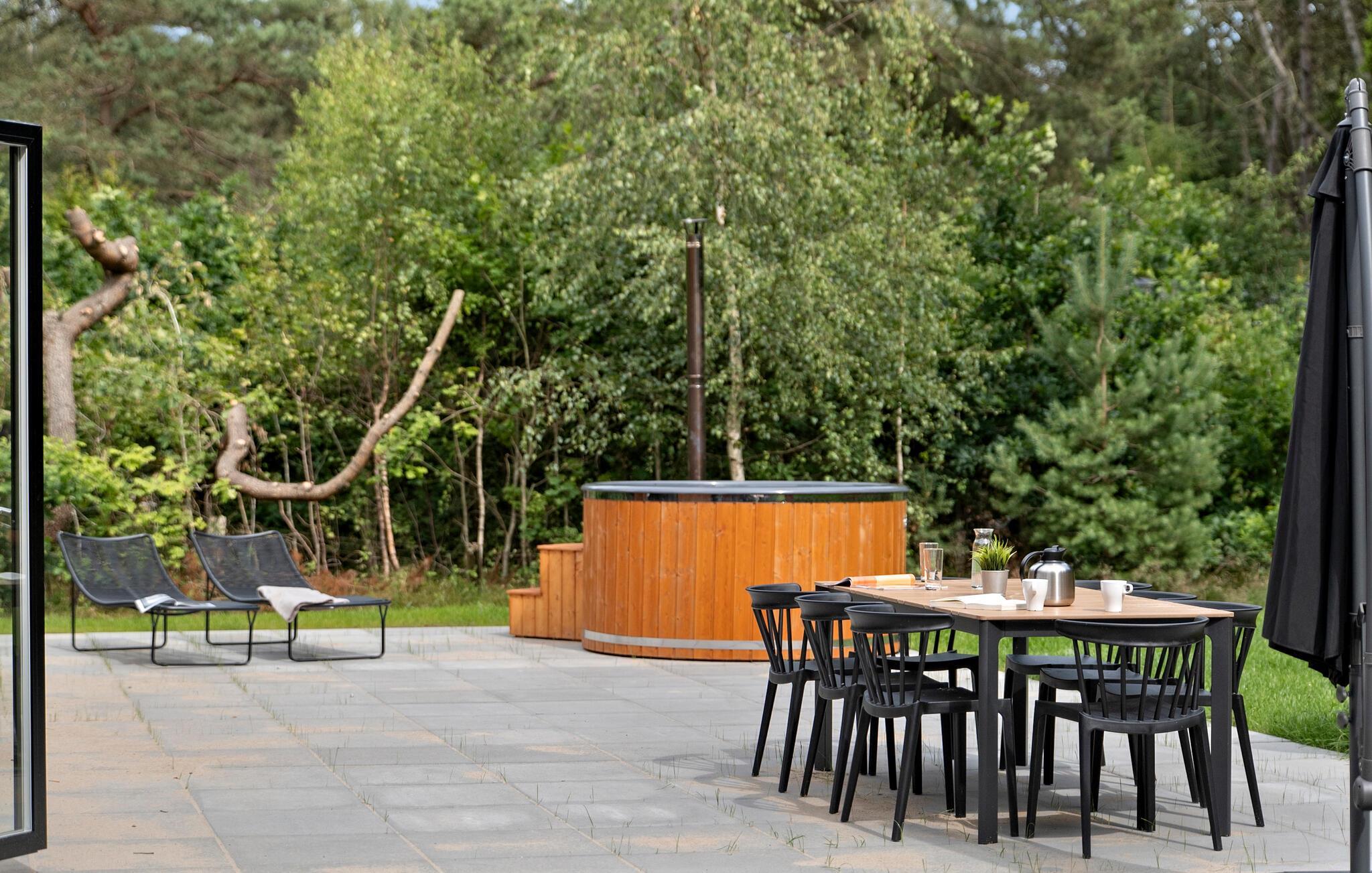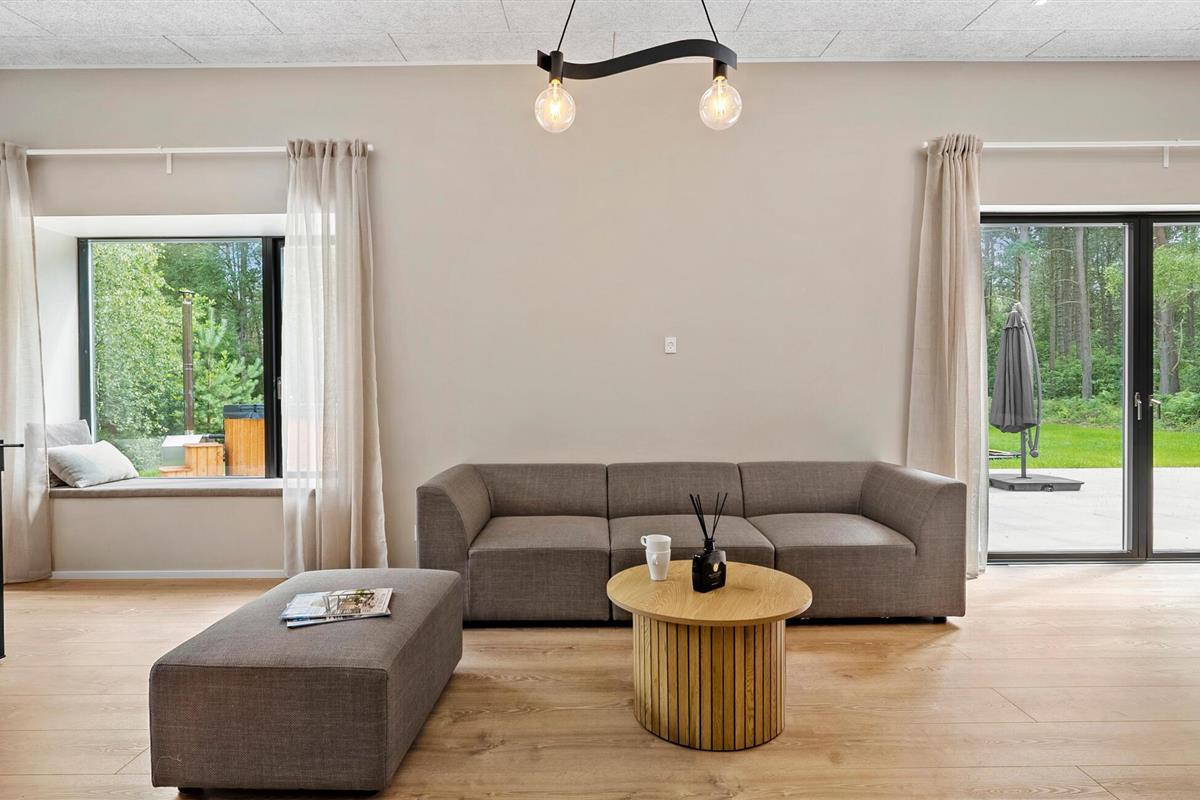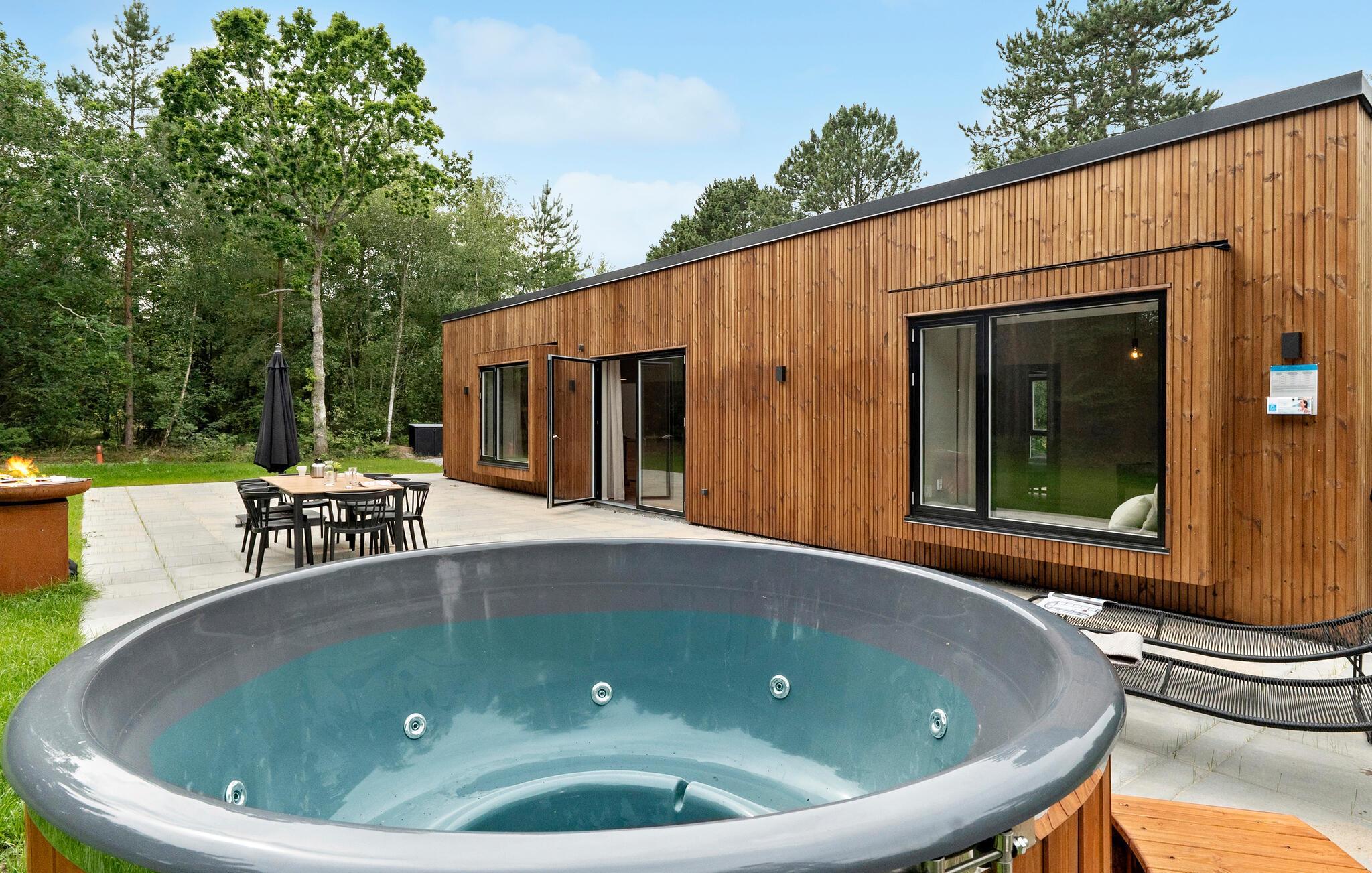 Stijlvol vakantiehuis in Helberskov met whirlpool en ruime moderne inrichting, perfect voor ontspanning en natuurbeleving.