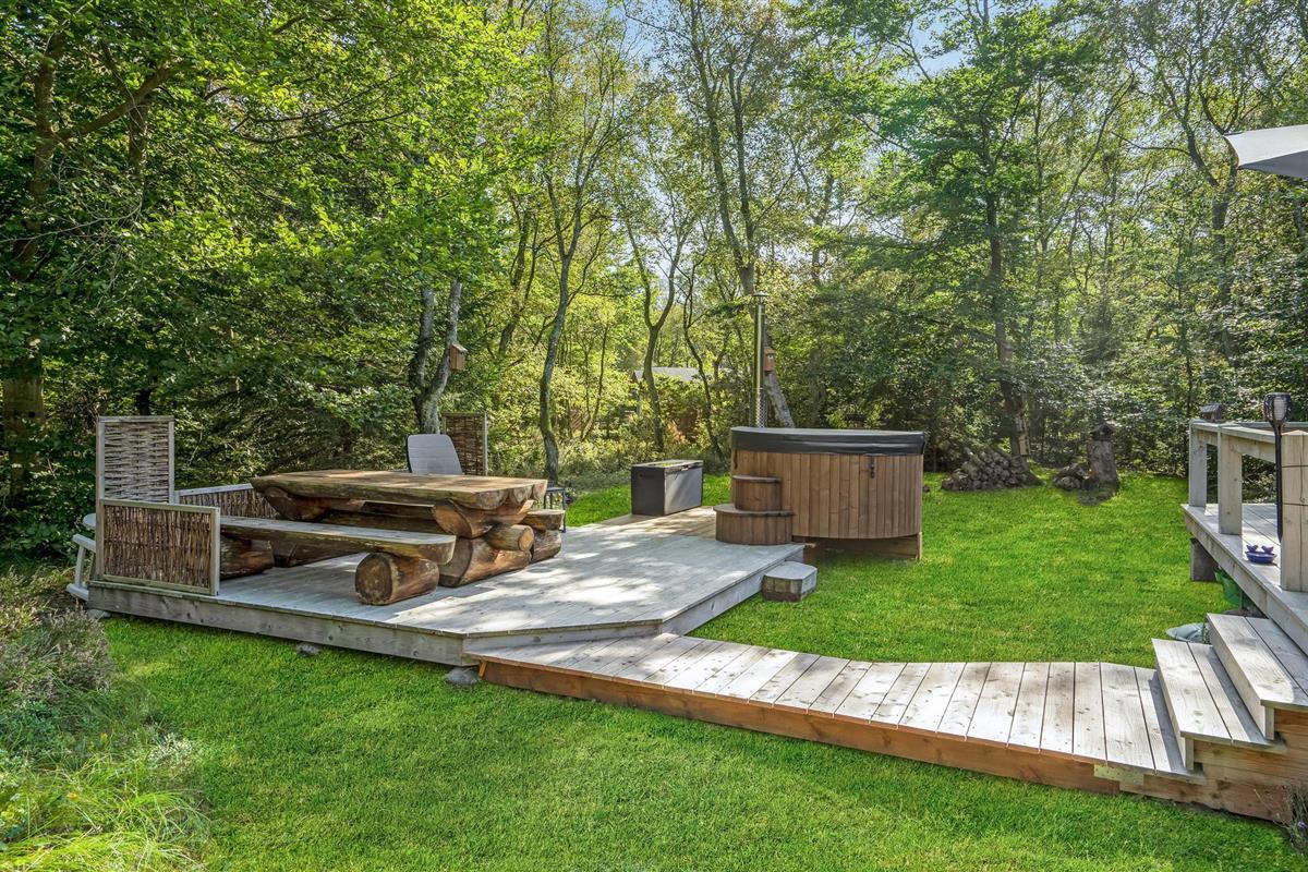 Geniet van een comfortabel, licht vakantiehuis met whirlpool, open haard en terras nabij Helberskov Strand.