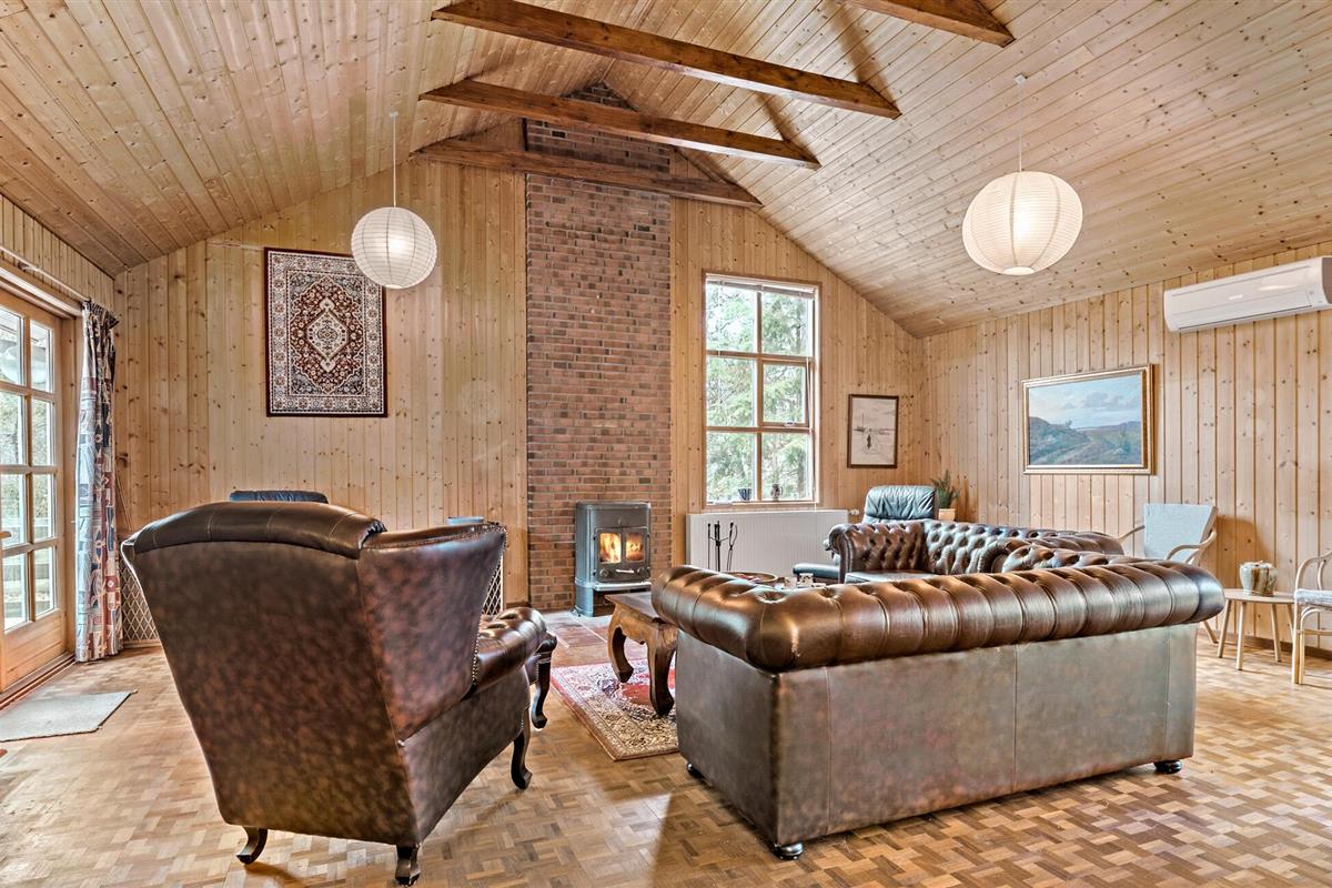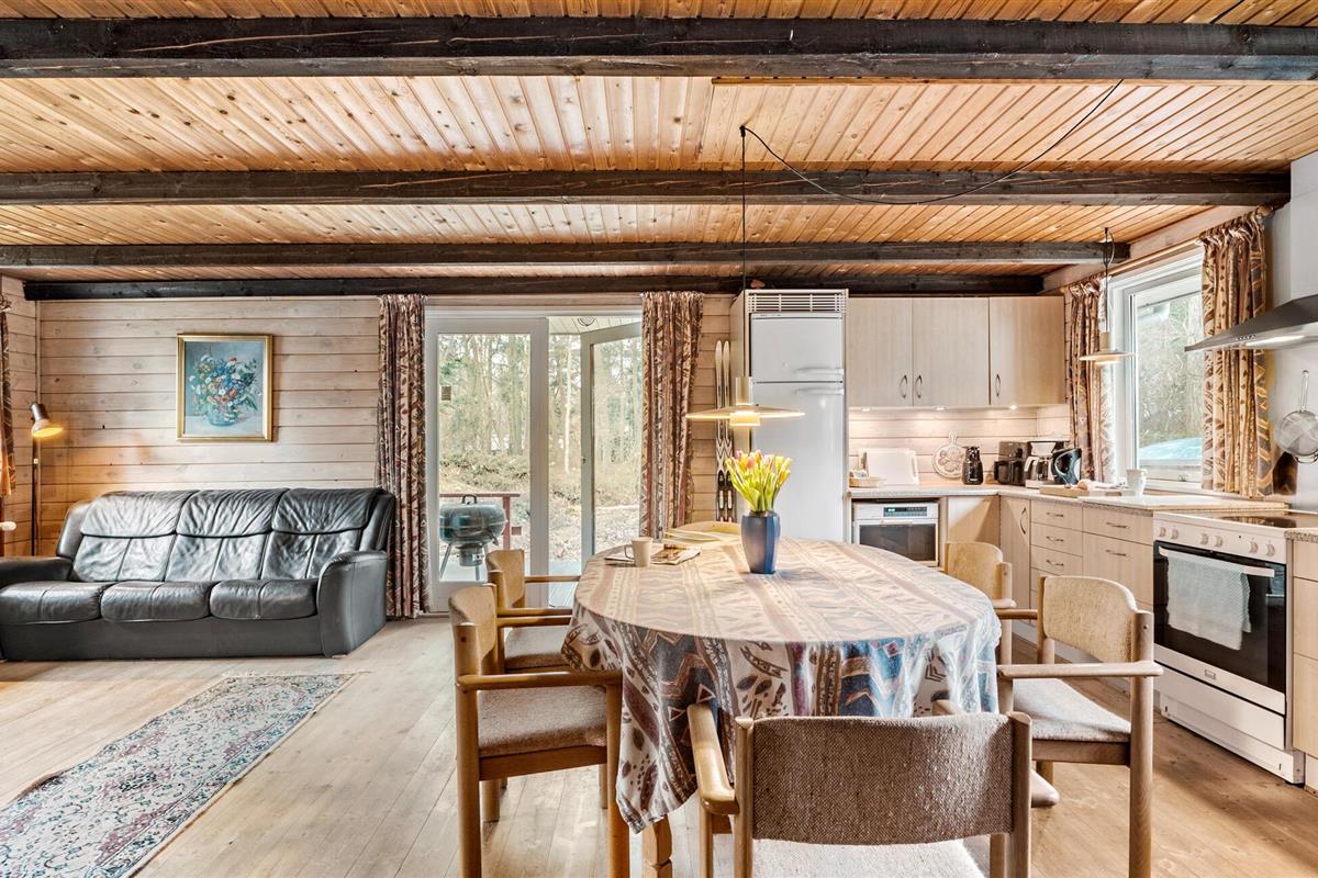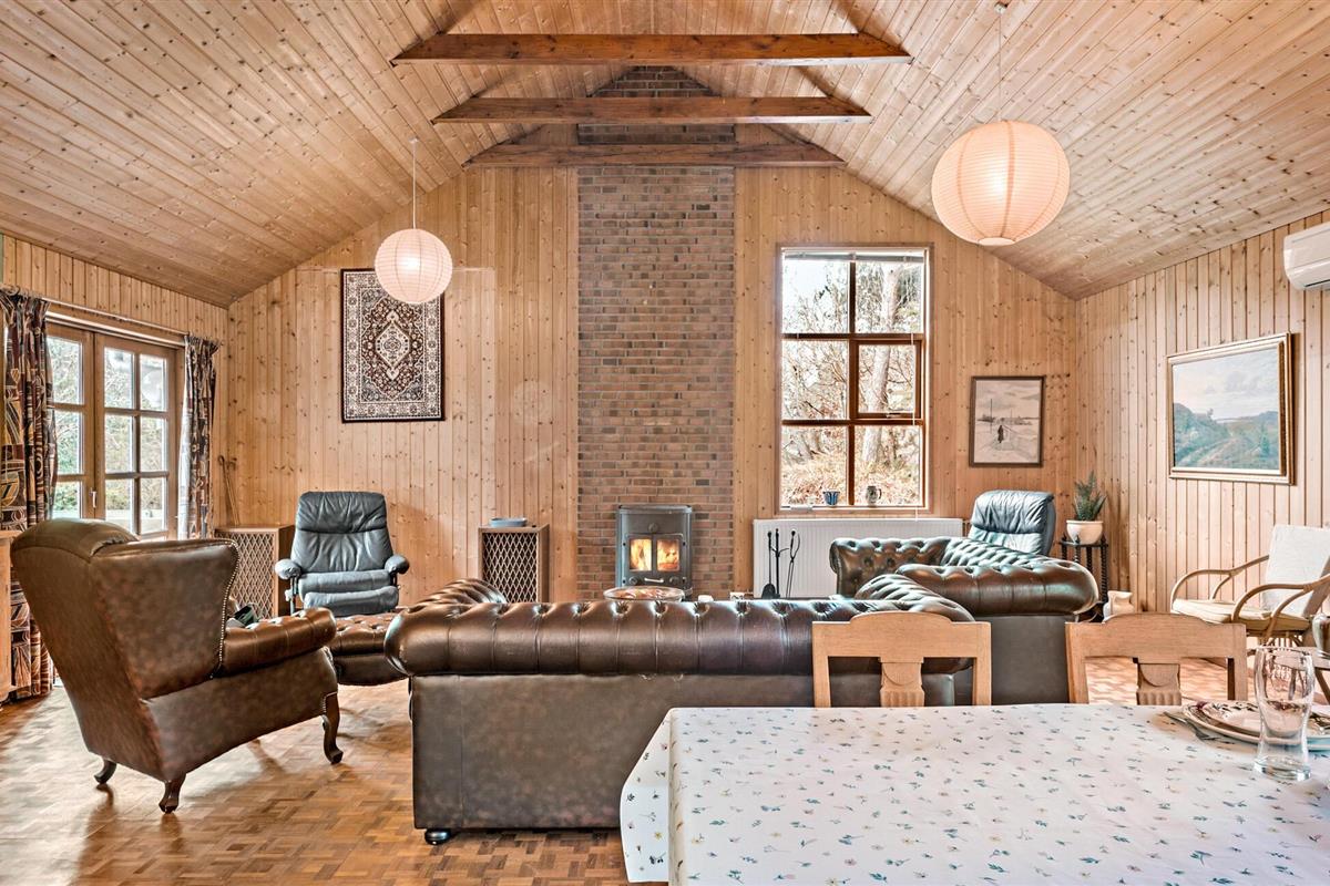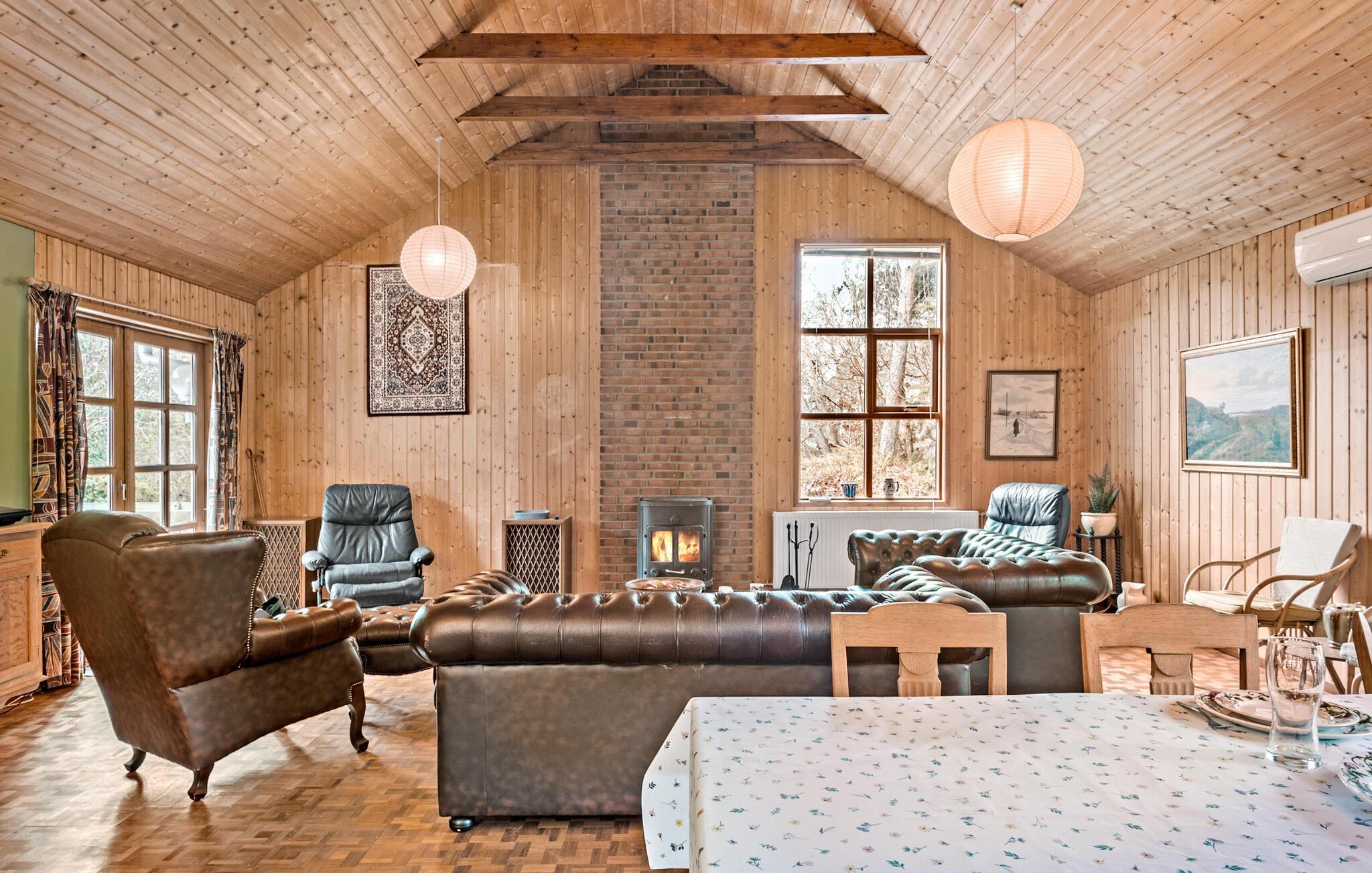 Genesteld op een groot bebost perceel in Helberskov, is dit huis het ideale toevluchtsoord voor families of vrienden die samen willen genieten van een ongestoorde vakantie. Stap het charmante huis binnen en laat je betoveren door het warme houten ontwerp en het uitnodigende interieur. De ruime woonkamer met balkenplafond, gezellige banken en houtkachel nodigt je uit om te ontspannen en tot rust te komen. Geniet van avonden samen aan de lange eettafel of sluit de dag af met een glas wijn in een gezellige sfeer. Kook samen in de open keuken terwijl anderen naar hartenlust muziek maken in de woonkamer. Of gebruik de sportuitrusting om fit te blijven op vakantie.