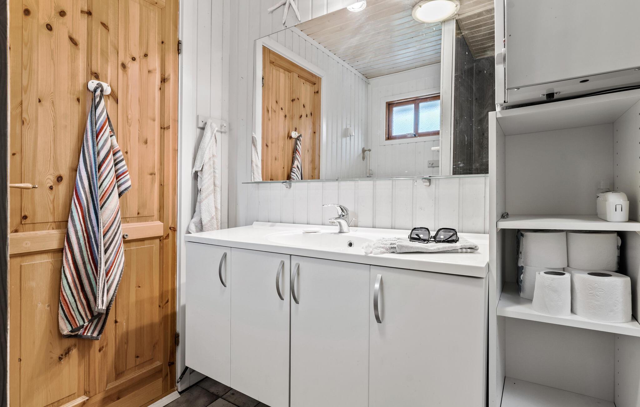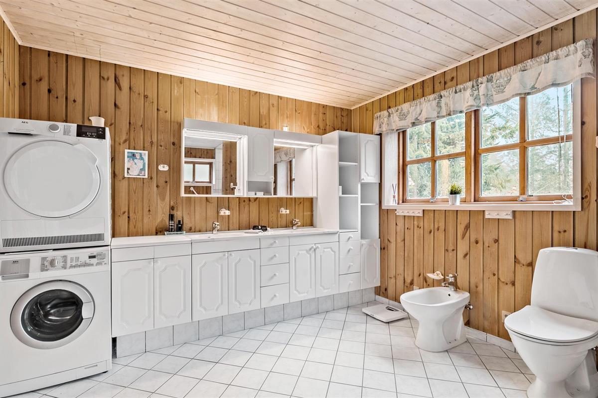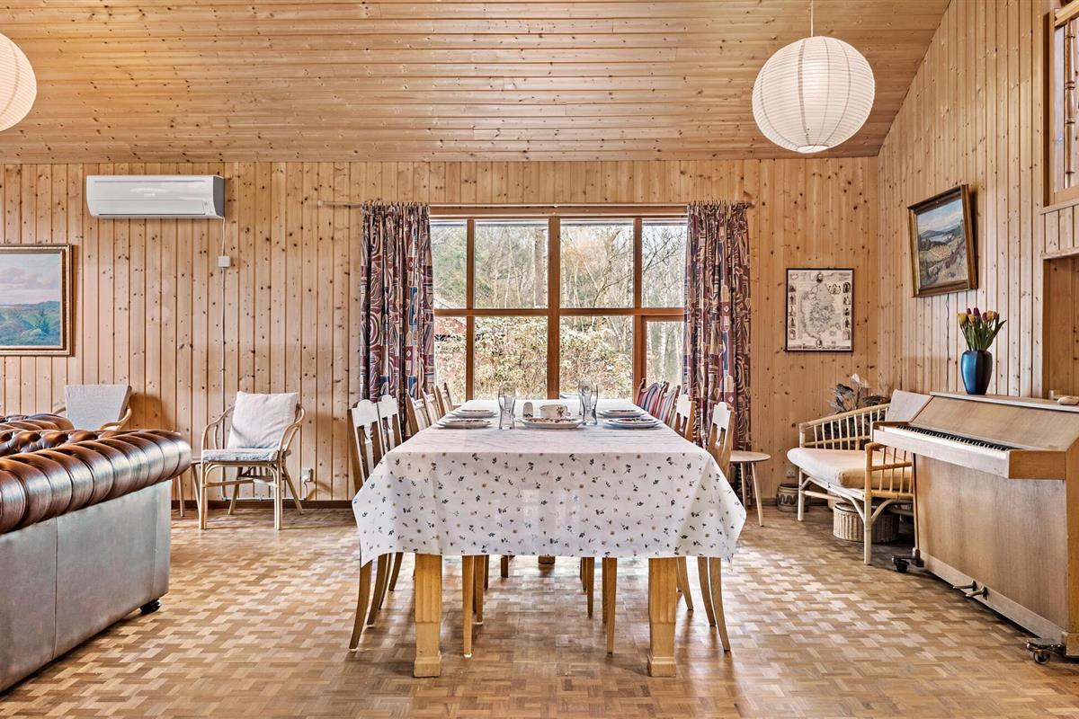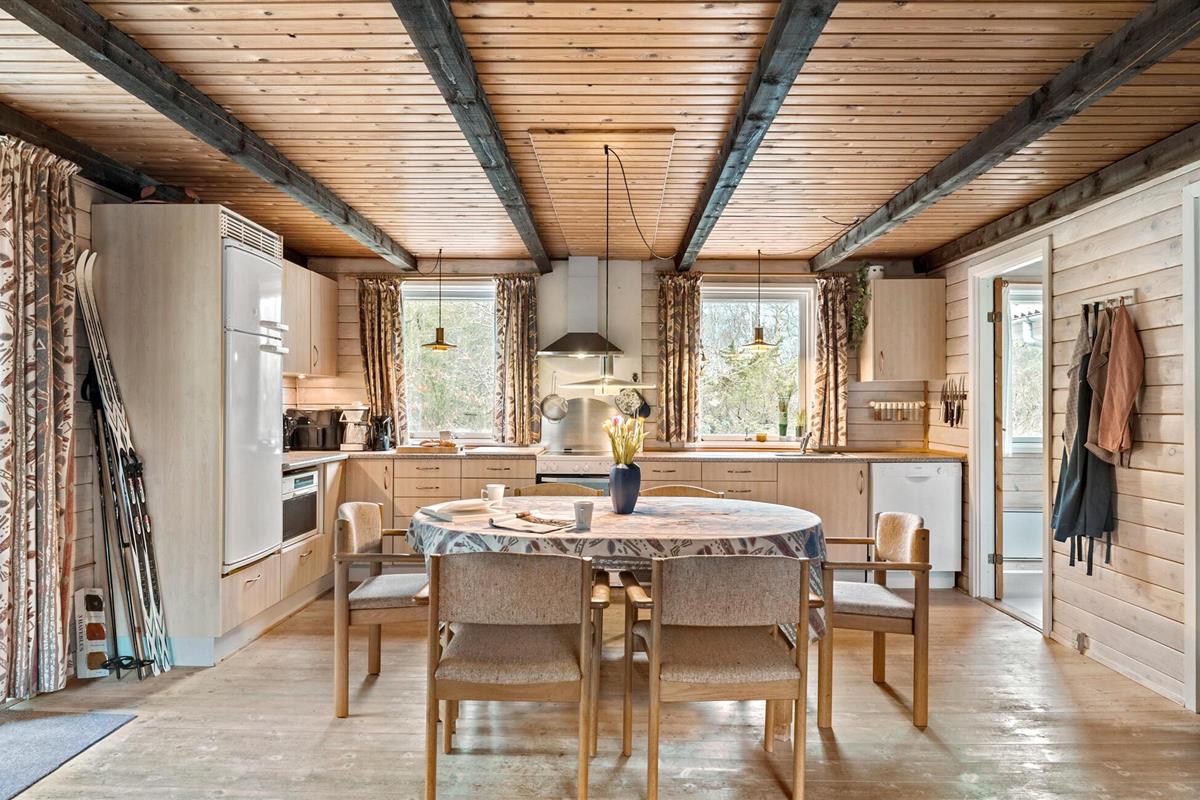 Genesteld op een groot bebost perceel in Helberskov, is dit huis het ideale toevluchtsoord voor families of vrienden die samen willen genieten van een ongestoorde vakantie. Stap het charmante huis binnen en laat je betoveren door het warme houten ontwerp en het uitnodigende interieur. De ruime woonkamer met balkenplafond, gezellige banken en houtkachel nodigt je uit om te ontspannen en tot rust te komen. Geniet van avonden samen aan de lange eettafel of sluit de dag af met een glas wijn in een gezellige sfeer. Kook samen in de open keuken terwijl anderen naar hartenlust muziek maken in de woonkamer. Of gebruik de sportuitrusting om fit te blijven op vakantie.