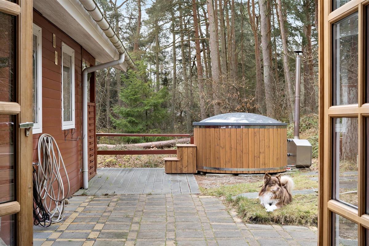 Ontspan in een charmant houten vakantiehuis met Finse hottub in het bos bij Helberskov, Denemarken.