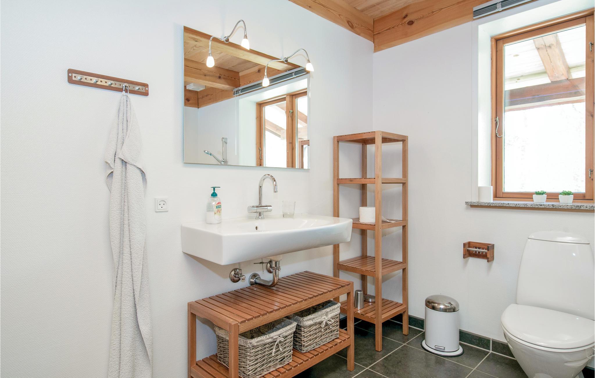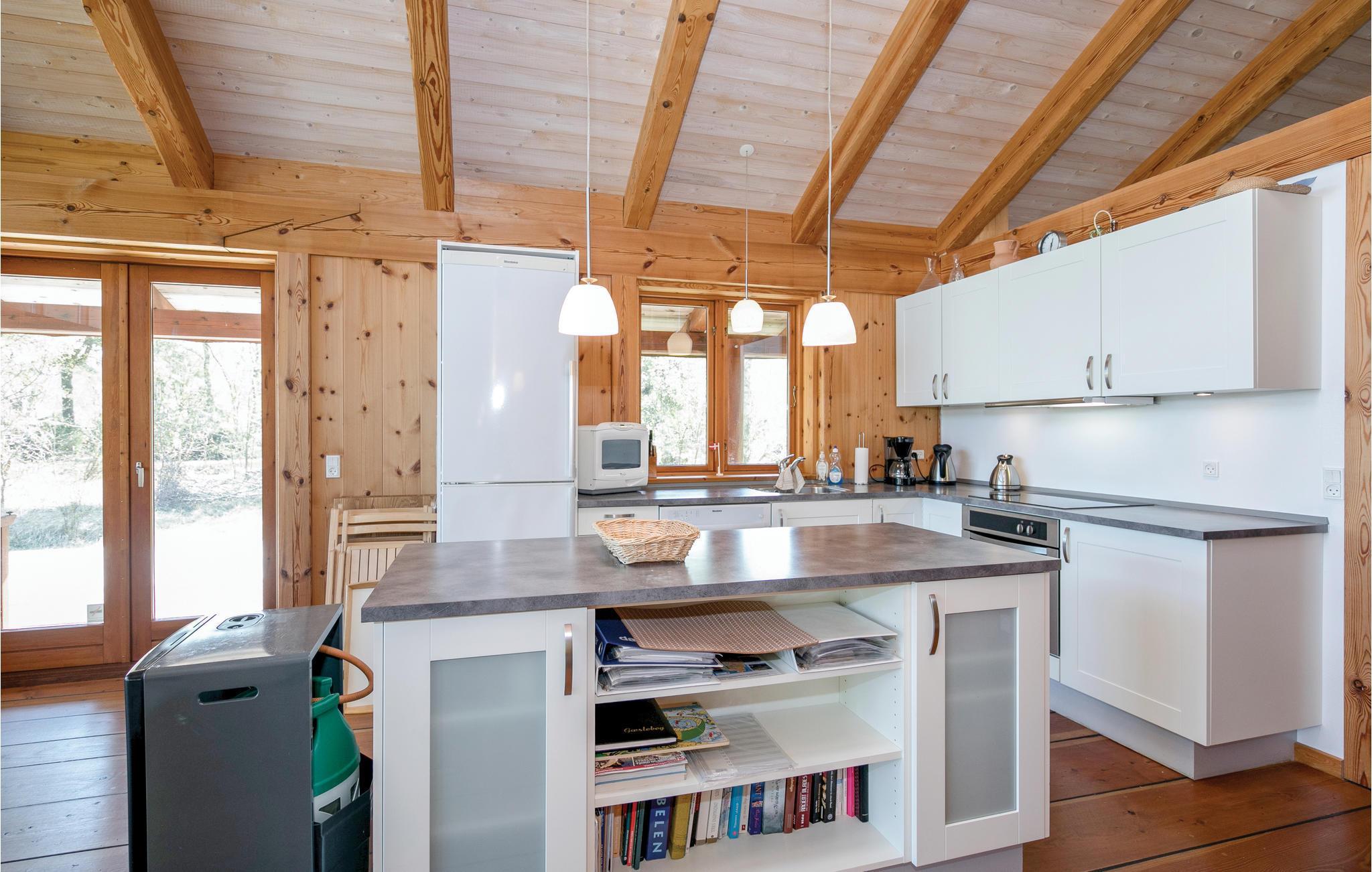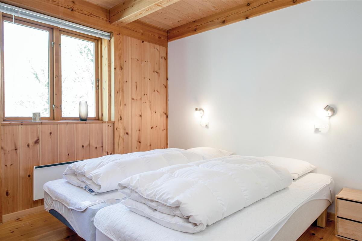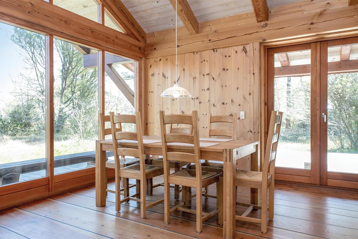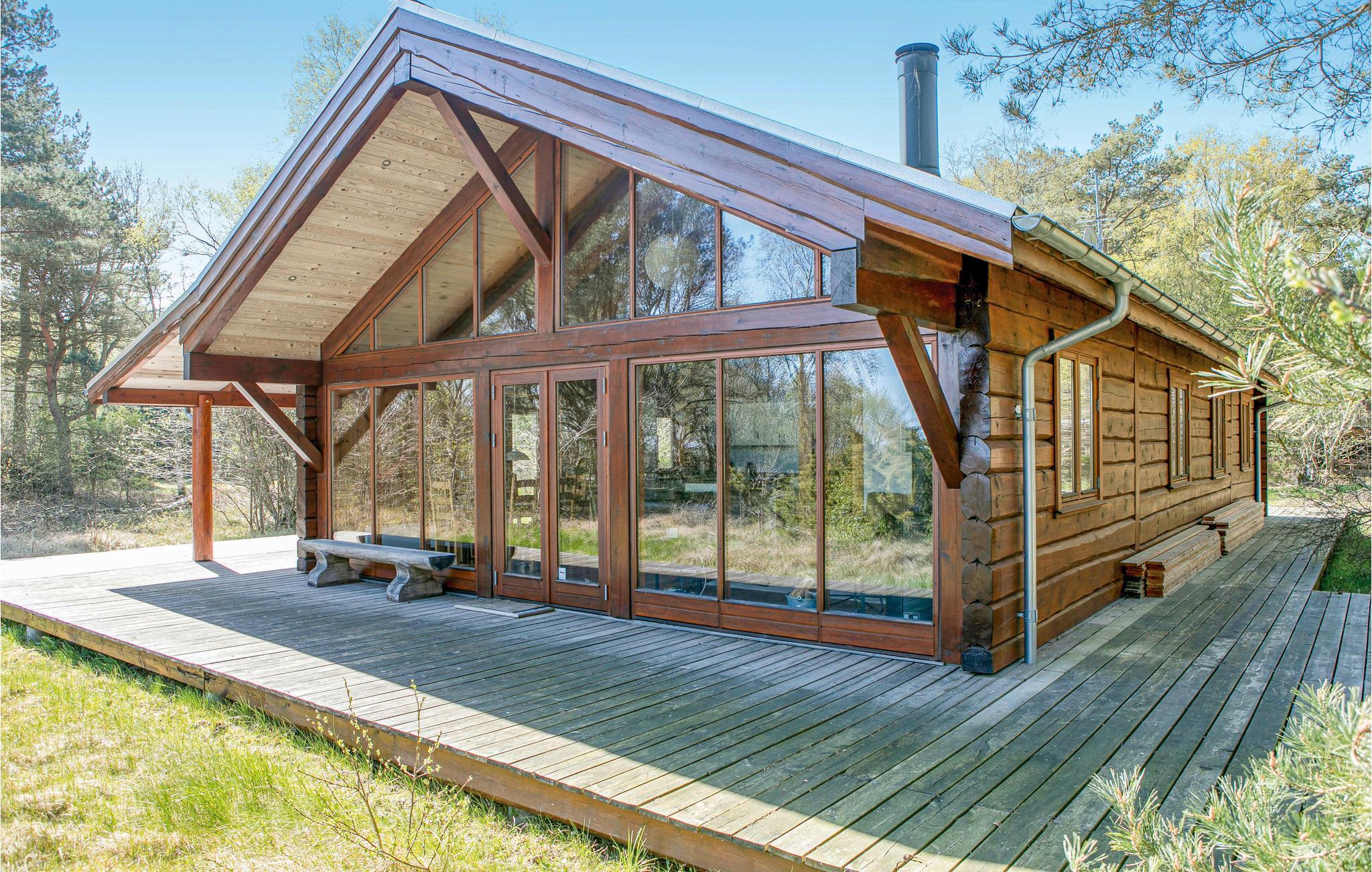 Helberskov ligt in een recreatiegebied waar het Mariager Fjord en het Kattegat samenkomen. Hier vindt u deze gezellige blokhut op een bosperceel vlakbij het strand. In een gevel, waar zich de woonkamer, keuken en eettafel bevinden, heeft u door een groot raam uitzicht op zee. Vanaf de bank kunt u genieten van het uitzicht en de aangename warmte van de houtkachel. In het huis bevindt zich een schuin dak met houten balken, wat zorgt voor de juiste vakantiehuis-sfeer. U vindt verschillende gezellige slaapplaatsen in de mooie slaapkamers en ook op de open slaapzolder, waar de kinderen ook hun eigen holletje hebben en tv kunnen kijken.