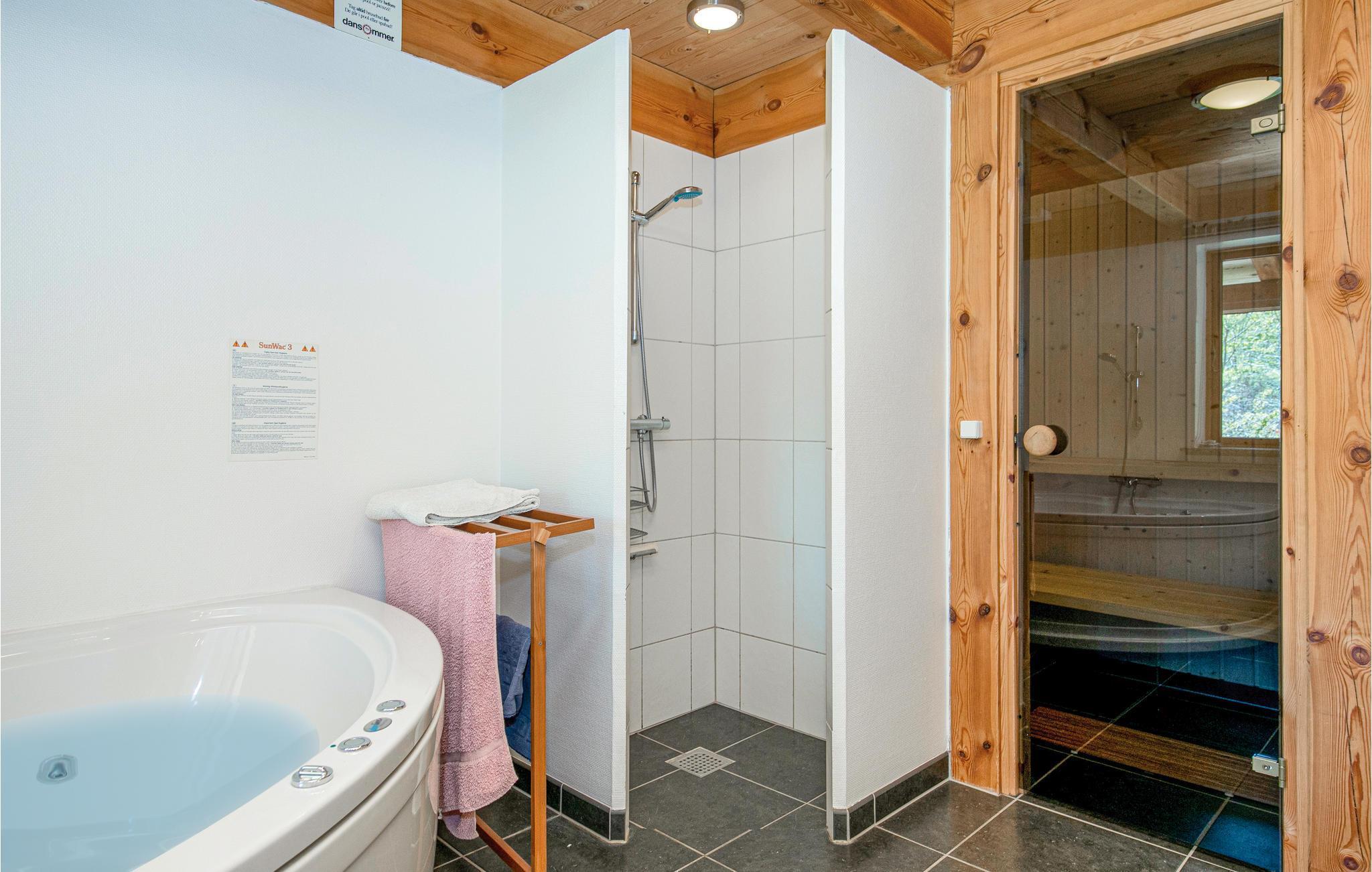 Prachtige blokhut met sauna, jacuzzi en uitzicht op zee.