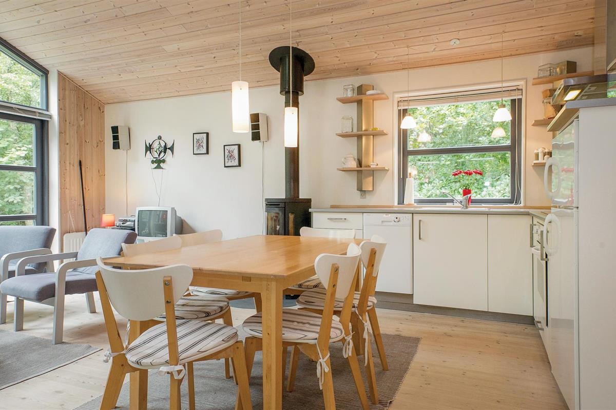 Een echt gezellig en goed ingericht vakantiehuis wacht hier op u op een groot, schaduwrijk natuurperceel met een paar afgelegen, zonnige hoekjes. Ideaal voor het hele gezin. U zult zeker vele aangename uren doorbrengen in de lichte keuken-woonkamer, waar u heerlijk bij elkaar kunt zitten en goede vakantiegerechten kunt bereiden. De elektriciteit in het huis wordt CO2-neutraal geproduceerd. Het grootste deel van het prachtige gebied 'Himmerland' is omgeven door water en nodigt daarom uit tot allerlei activiteiten in het natte element. De kindvriendelijke stranden langs de kusten lenen zich uitstekend voor surfen, zeilen en vissen. Ook in het binnenland kunt u in een van de vele beken en riviertjes aan de vishaak slaan. Wilt u diepgroene kloven, uitgestrekte bossen, heide en veen ervaren, ga dan op verkenning in de prachtige natuur van 'Himmerland'. Vergeet niet het betoverende bos 'Rold Skov' te bezoeken. Aan de dichtstbijzijnde kust ligt een strandweide. Het dichtstbijzijnde zandstrand dat wij u kunnen aanbevelen is het badstrand bij Øster Hurup.
