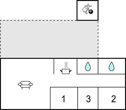 Badkamer (nr. 1) - Toilet: warm en koud water. Douche