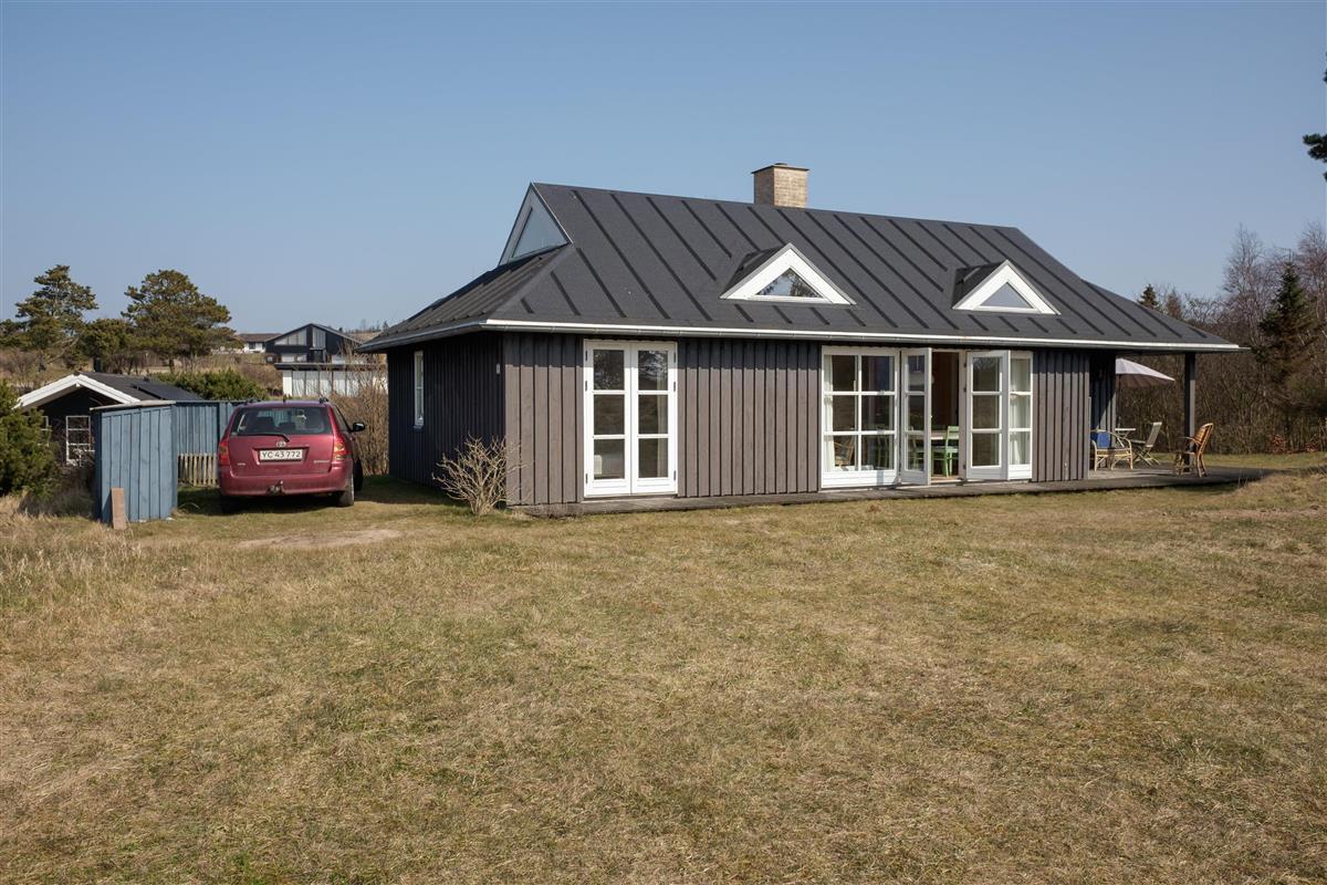 A truly lovely summer house located near Sletterhage Lighthouse, with panoramic views over Aarhus Bay. The house is beautifully situated on a large, secluded natural plot with bushes and trees and features a lovely terrace, both open and covered, equipped with outdoor furniture, a parasol, and a grill. The property also includes a firepit and a sandbox for the little ones.