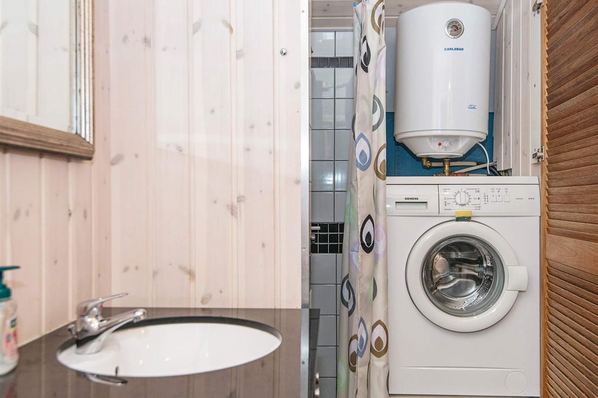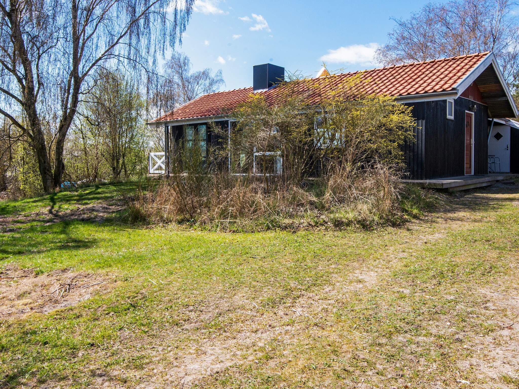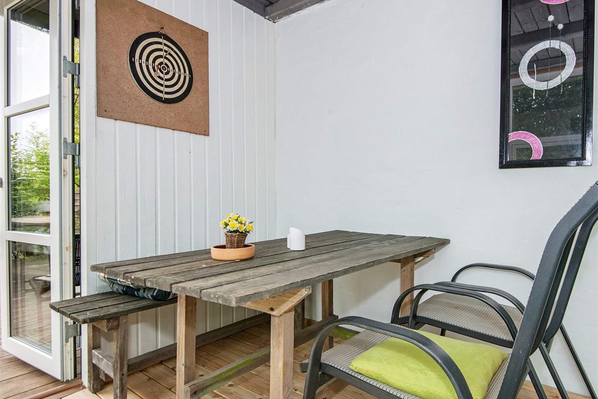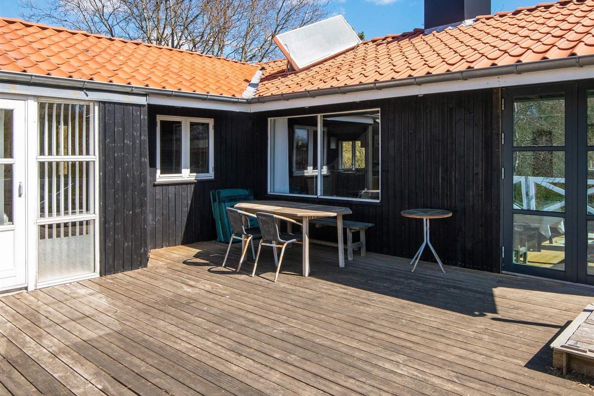 Das Ferienhaus verfügt im Außenbereich über eine teilweise überdachte Holzterrasse, auf man die Sommerabende länger genießen kann. Es gibt auf dem Naturgrundstück mit Bäumen auch einen Grillplatz und hinter dem Haus eine sonnige Sitzbank. Alles in allem ist dies ein schöner Rahmen für erholsame Urlaubstage mit der Familie.
