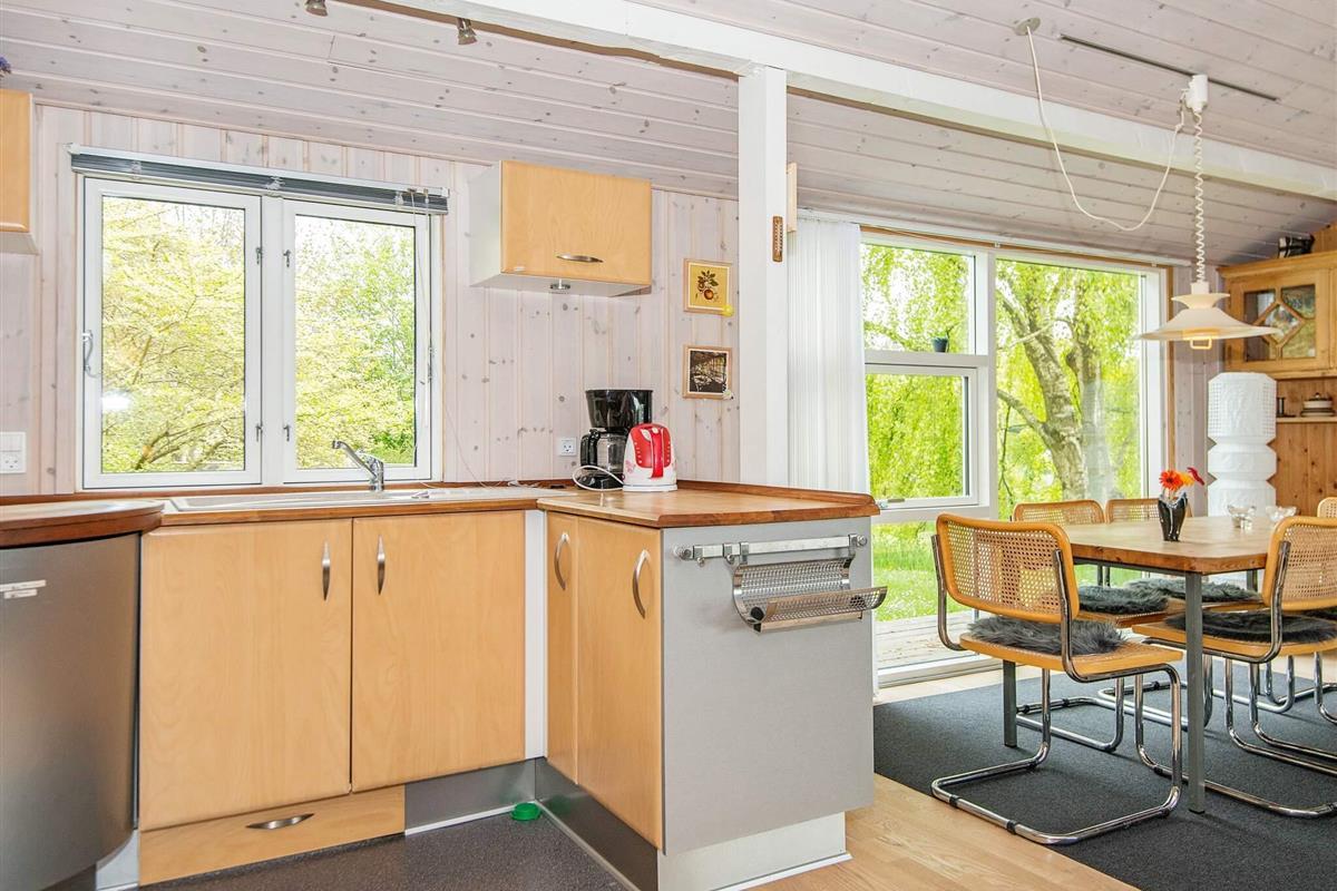 In einem ruhigen Urlaubsgebiet mit hügeligem Gelände und am Rande des Naturparks Mols Bjerge findet man dieses wohnliche Ferienhaus. Es hat einen offenen Küchen-/Wohnbereich für das Familienleben, ausgestattet mit Essecke, offenem Kamin sowie schneller Internetverbindung zum Downloaden und Streamen. Im TV stehen auch einige deutsche Sender zur Auswahl.