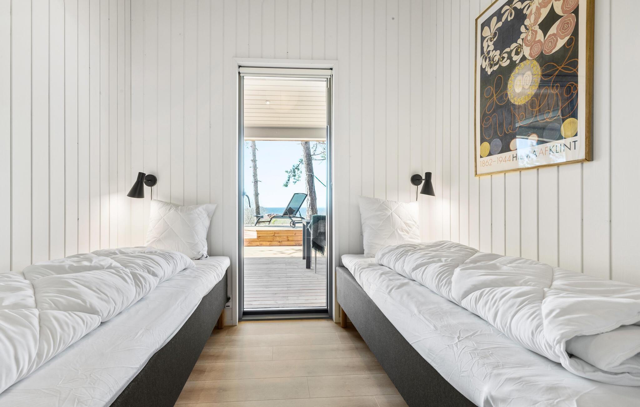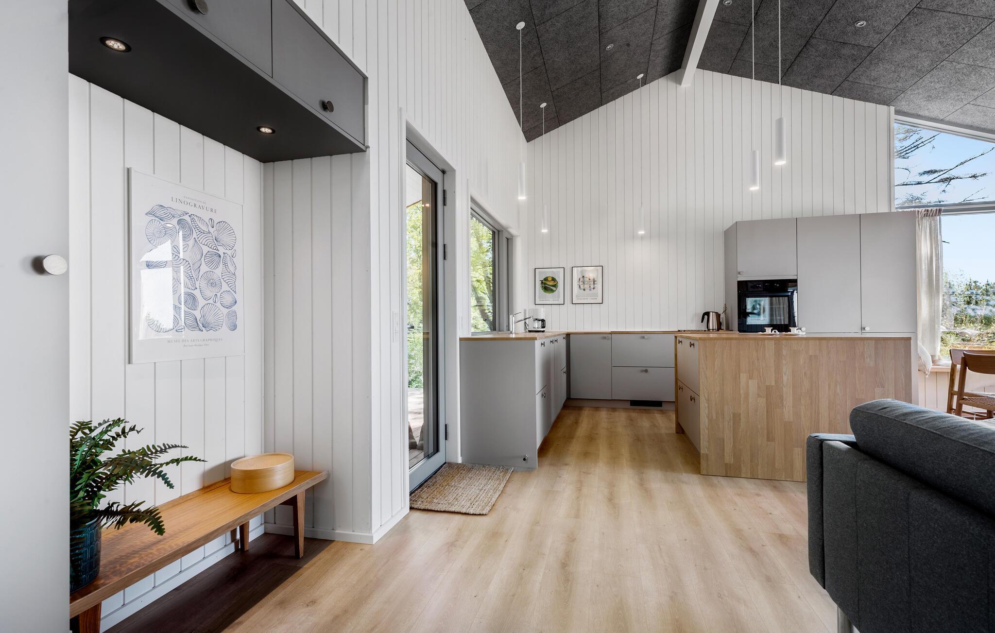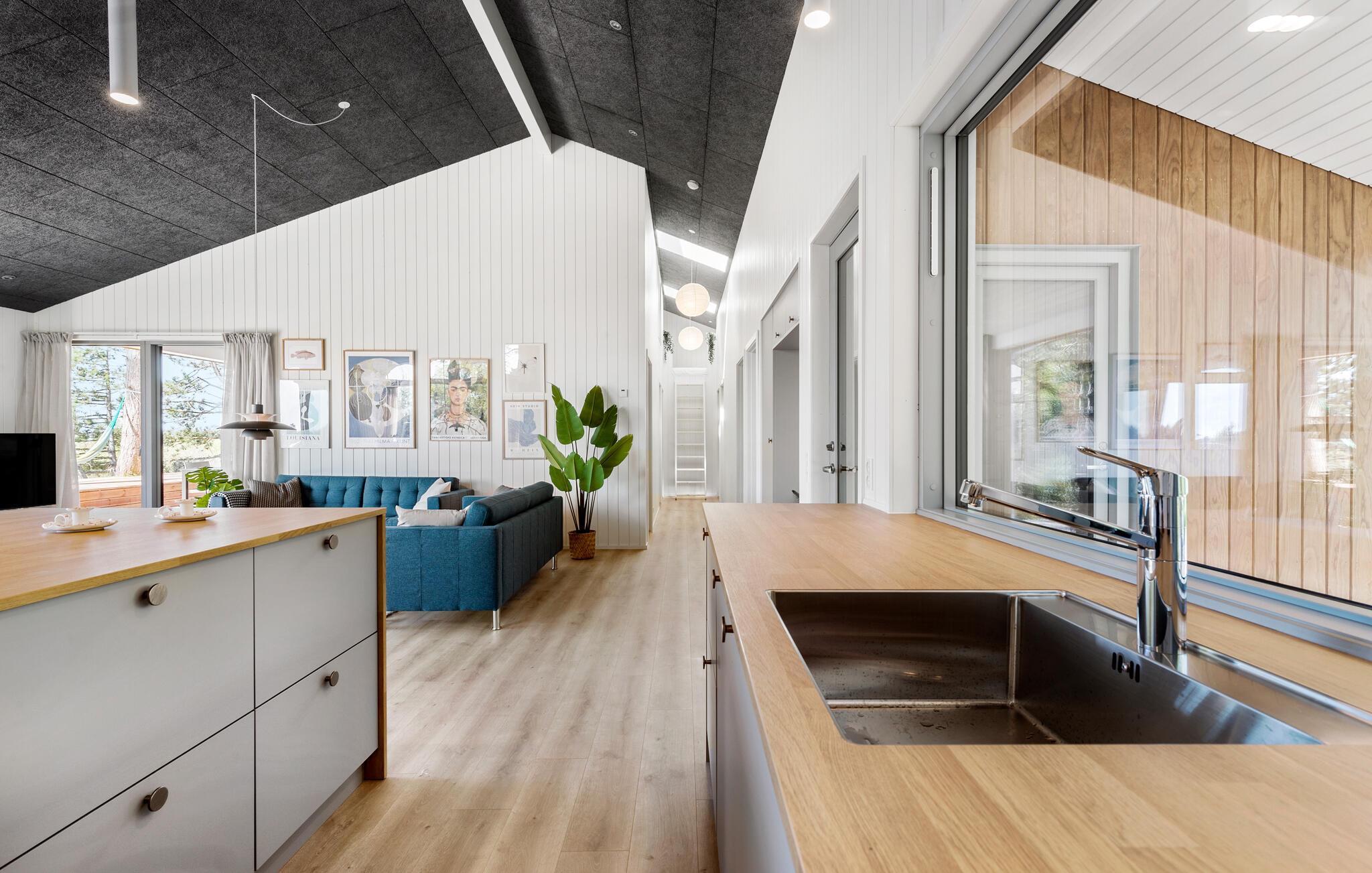 Breng je volgende vakantie door in dit moderne vakantiehuis dat comfort, design en een fantastisch uitzicht combineert. Ontspan in de ruime woonkamer met hoge plafonds en panoramische ramen. Geniet van het stijlvolle interieur met comfortabele banken, geselecteerde kunst aan de muren en een harmonieus kleurenschema. Kook samen in de lichte, open keuken met kookeiland en hoogwaardige apparatuur. Neem plaats aan de lange eettafel met uitzicht op het groen en het water.