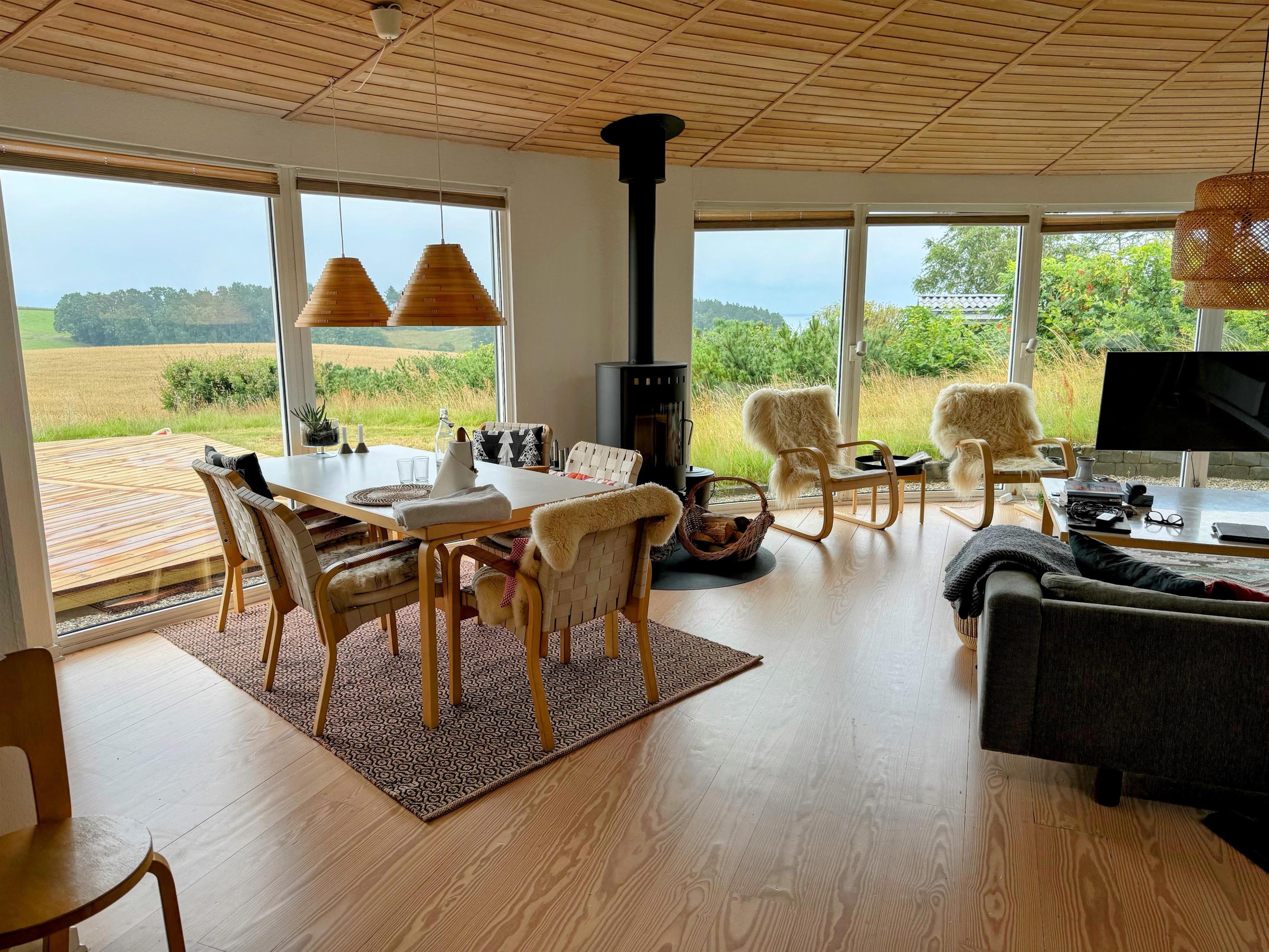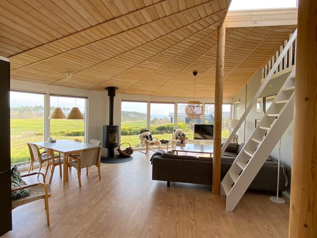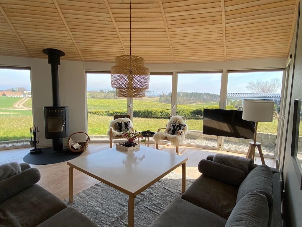 The house has a beautiful living room with a wood burning stove and a lovely corner sofa where you can relax and enjoy the magnificent view. There is free internet and Chromecast.