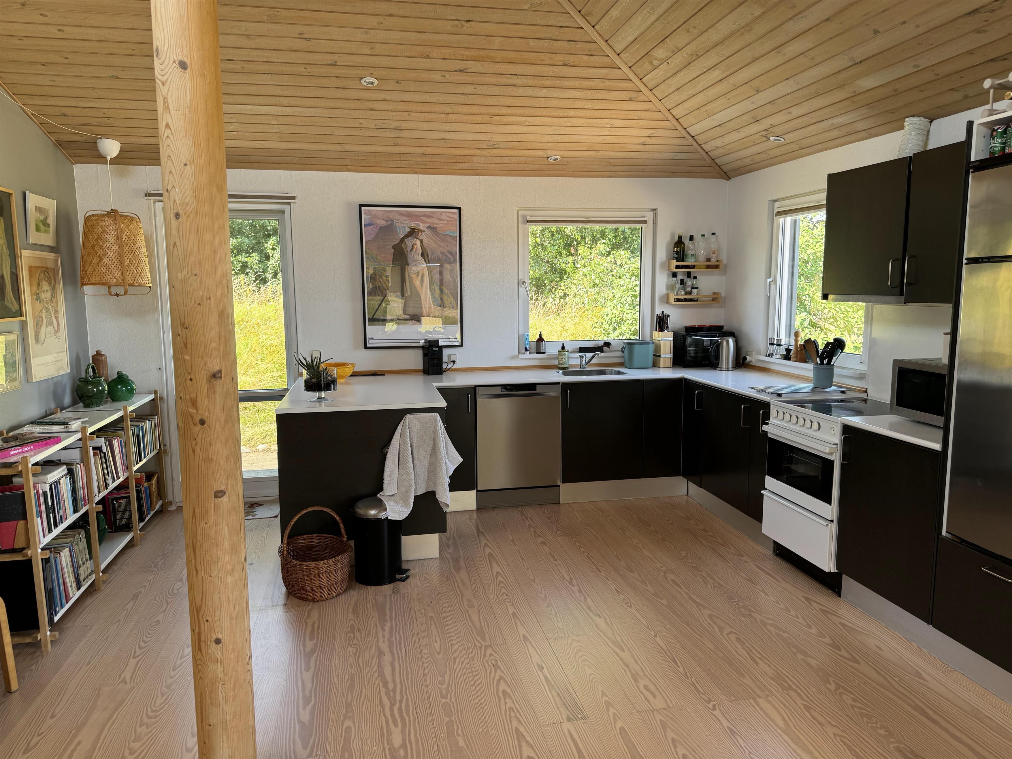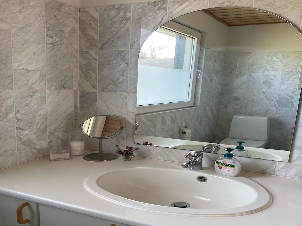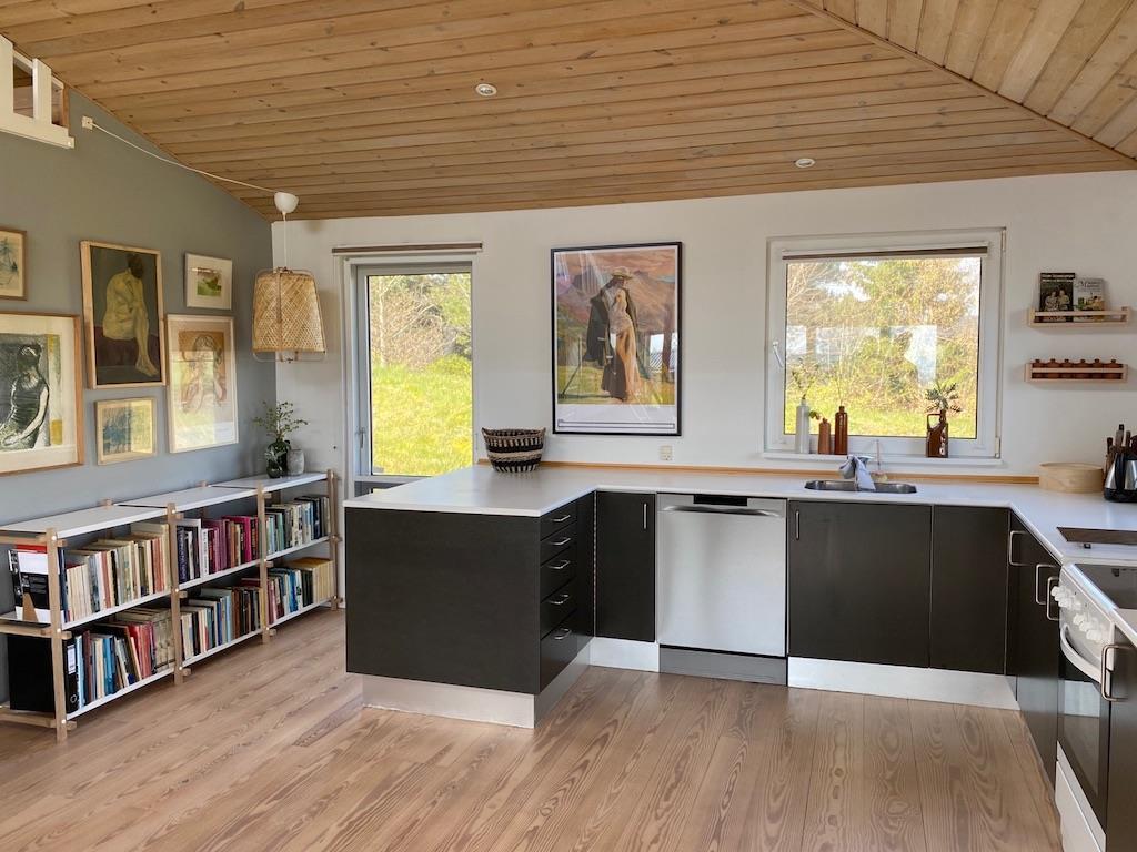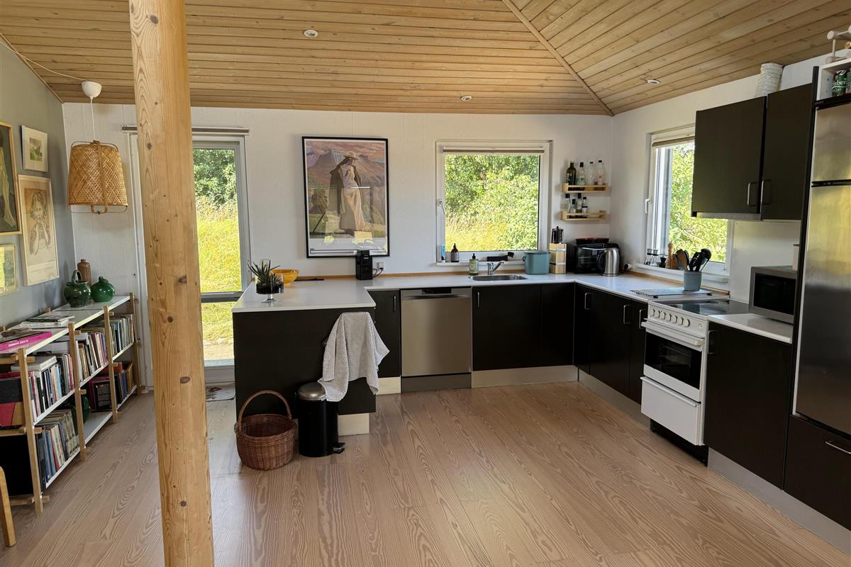 The house has a beautiful living room with a wood burning stove and a lovely corner sofa where you can relax and enjoy the magnificent view. There is free internet and Chromecast.