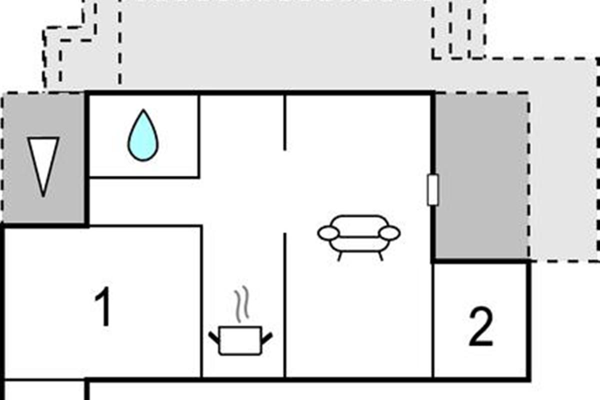 Woonkamer met open keuken 36m2 - 2 Slaapplaatsen. (Opklapbed(den) of matras(sen)).