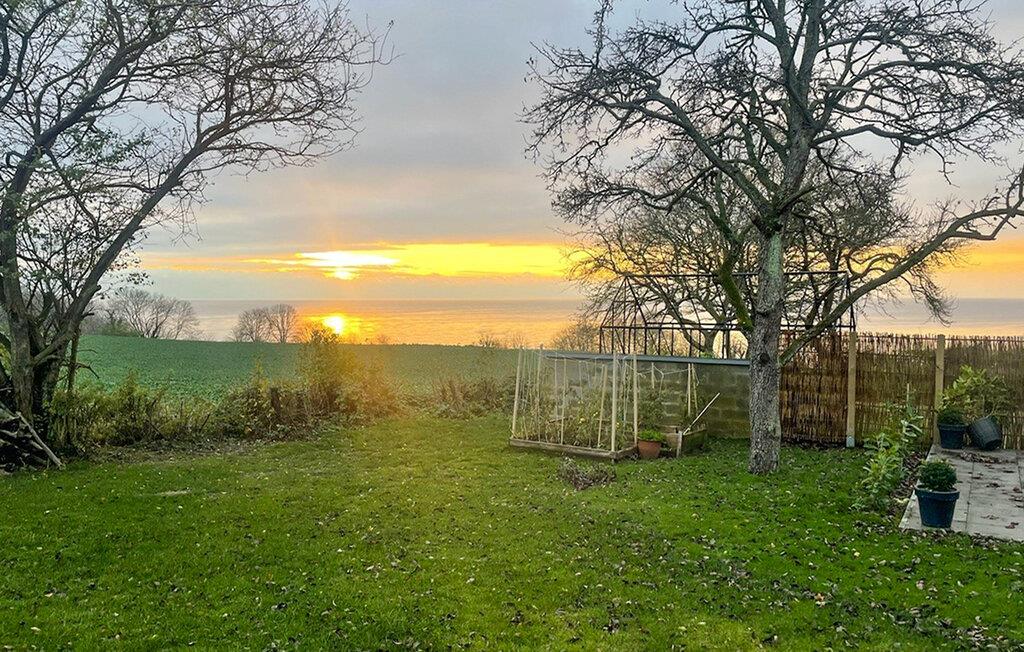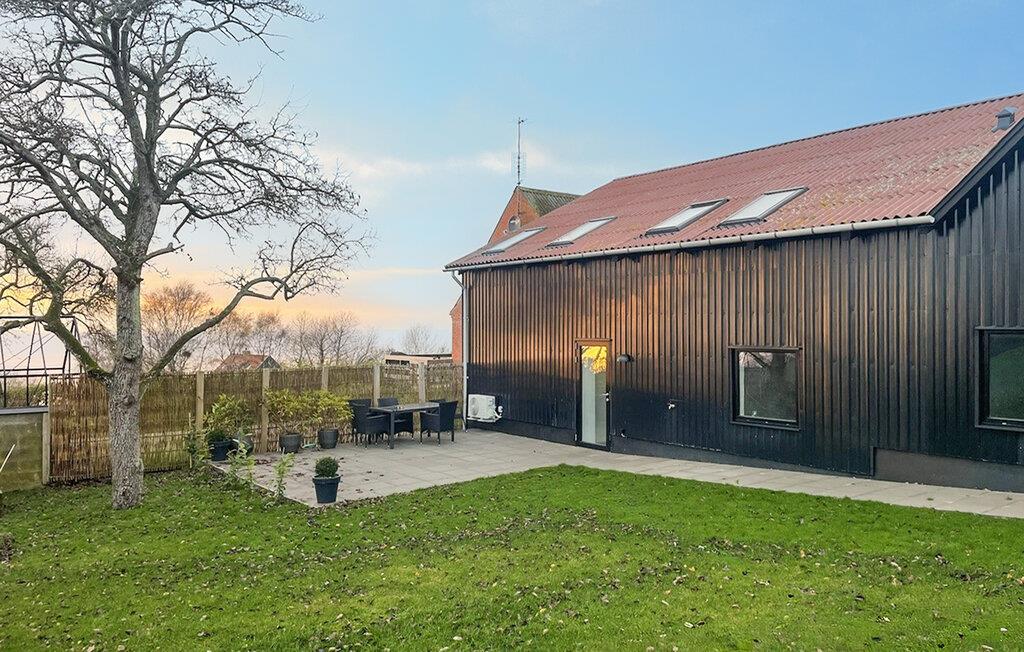 Ontdek deze moderne vakantiewoning met ruime tuin en gedeeltelijk zeezicht nabij de kust van Helligpeder in Denemarken.