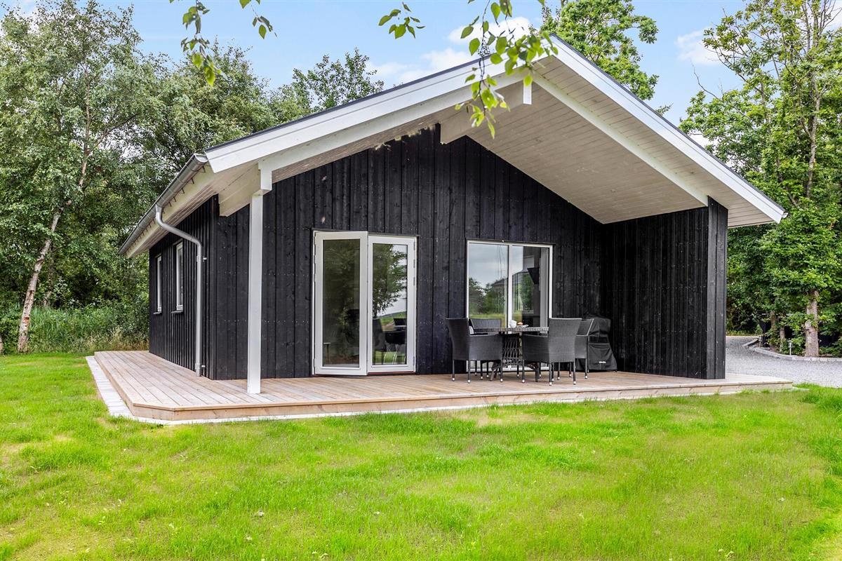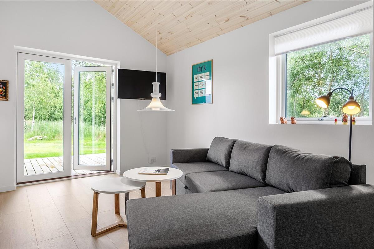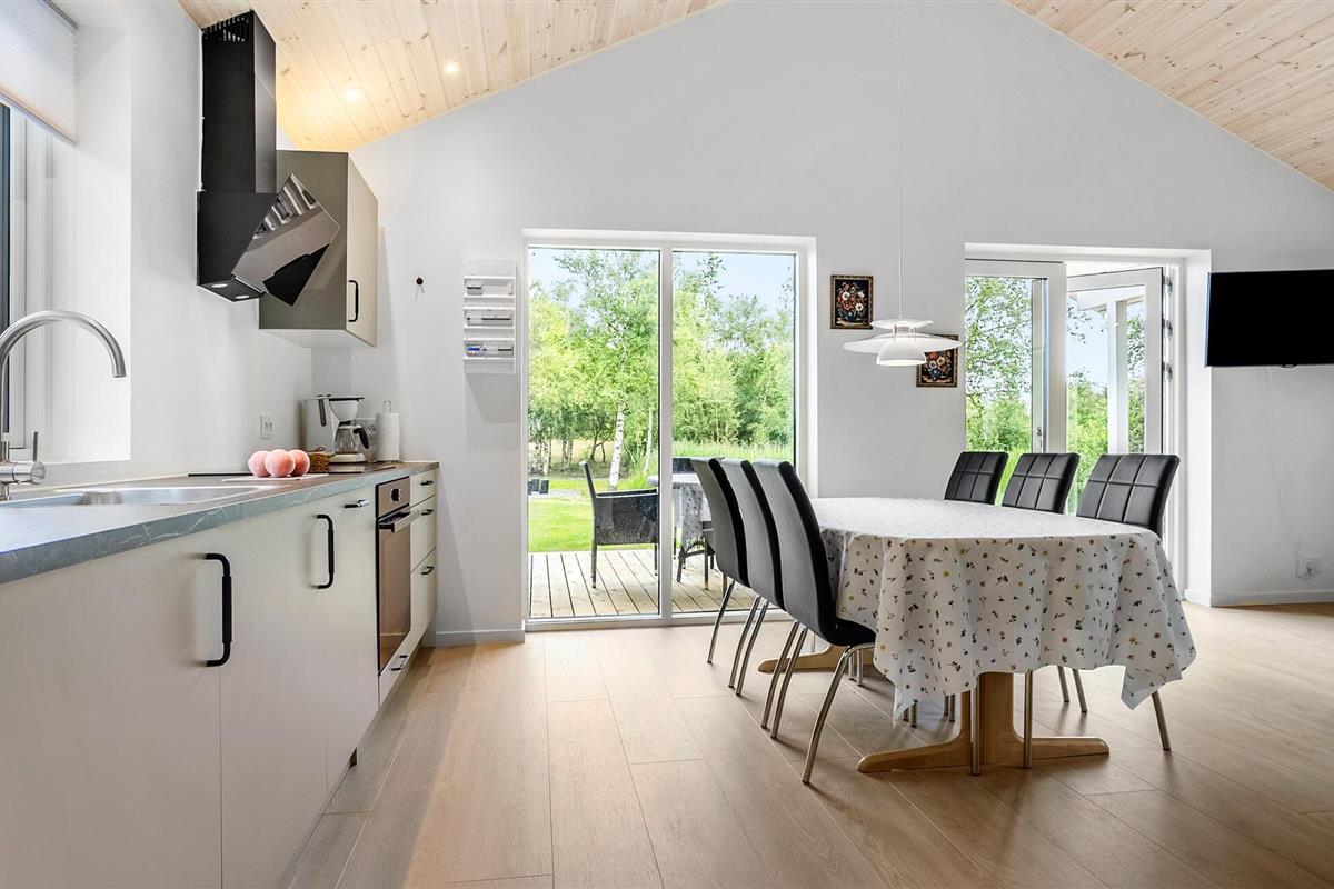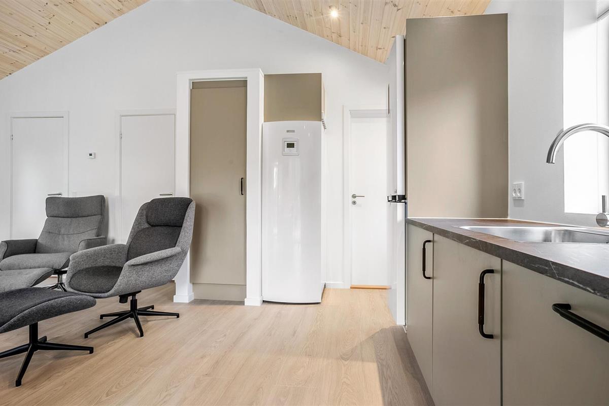 Ontspan in een modern vakantiehuis met houtinrichting nabij Helligsø Strand, ideaal voor rust en natuurbeleving.