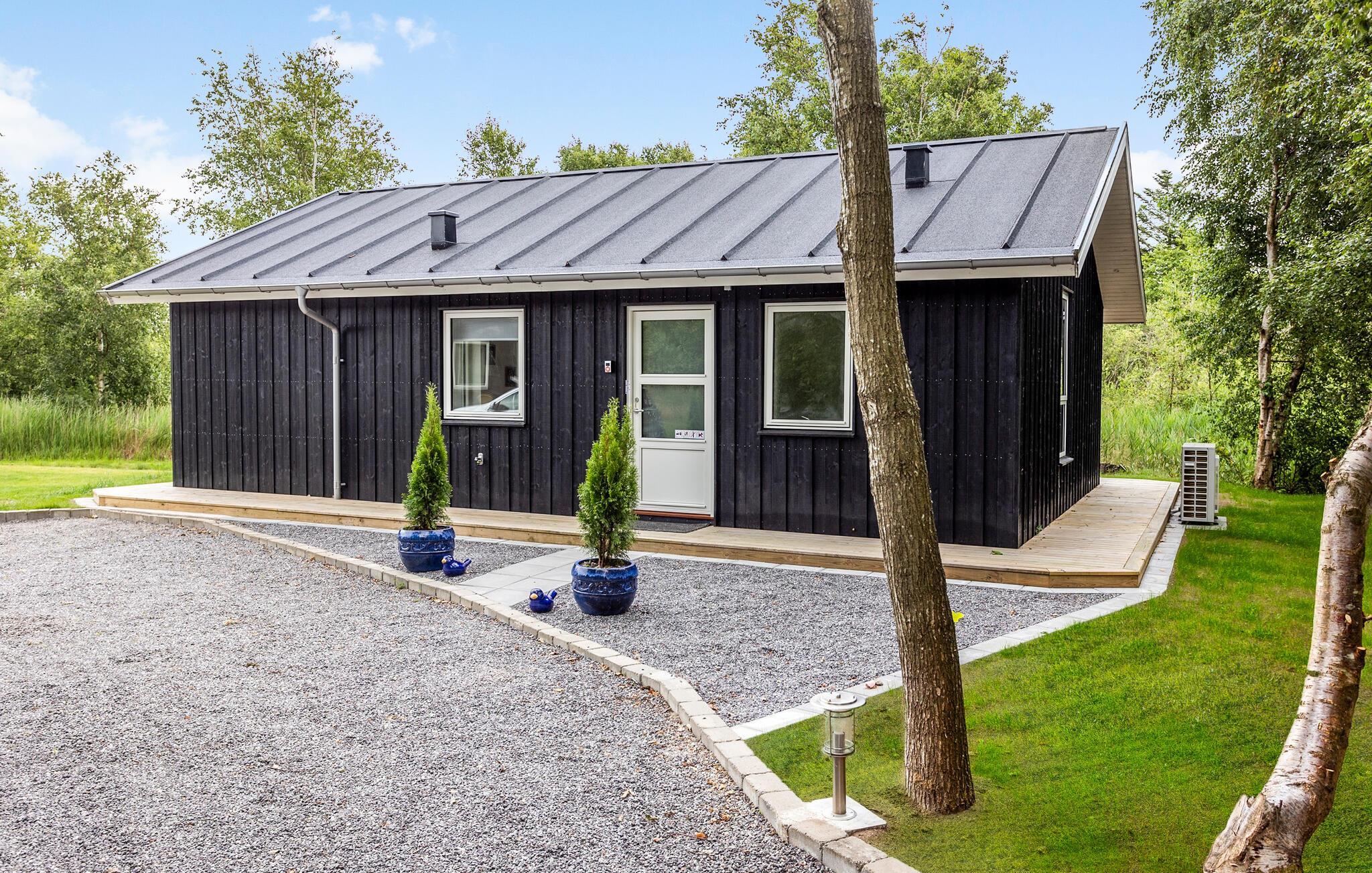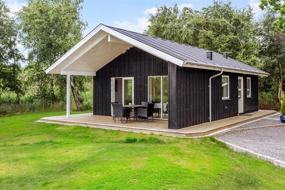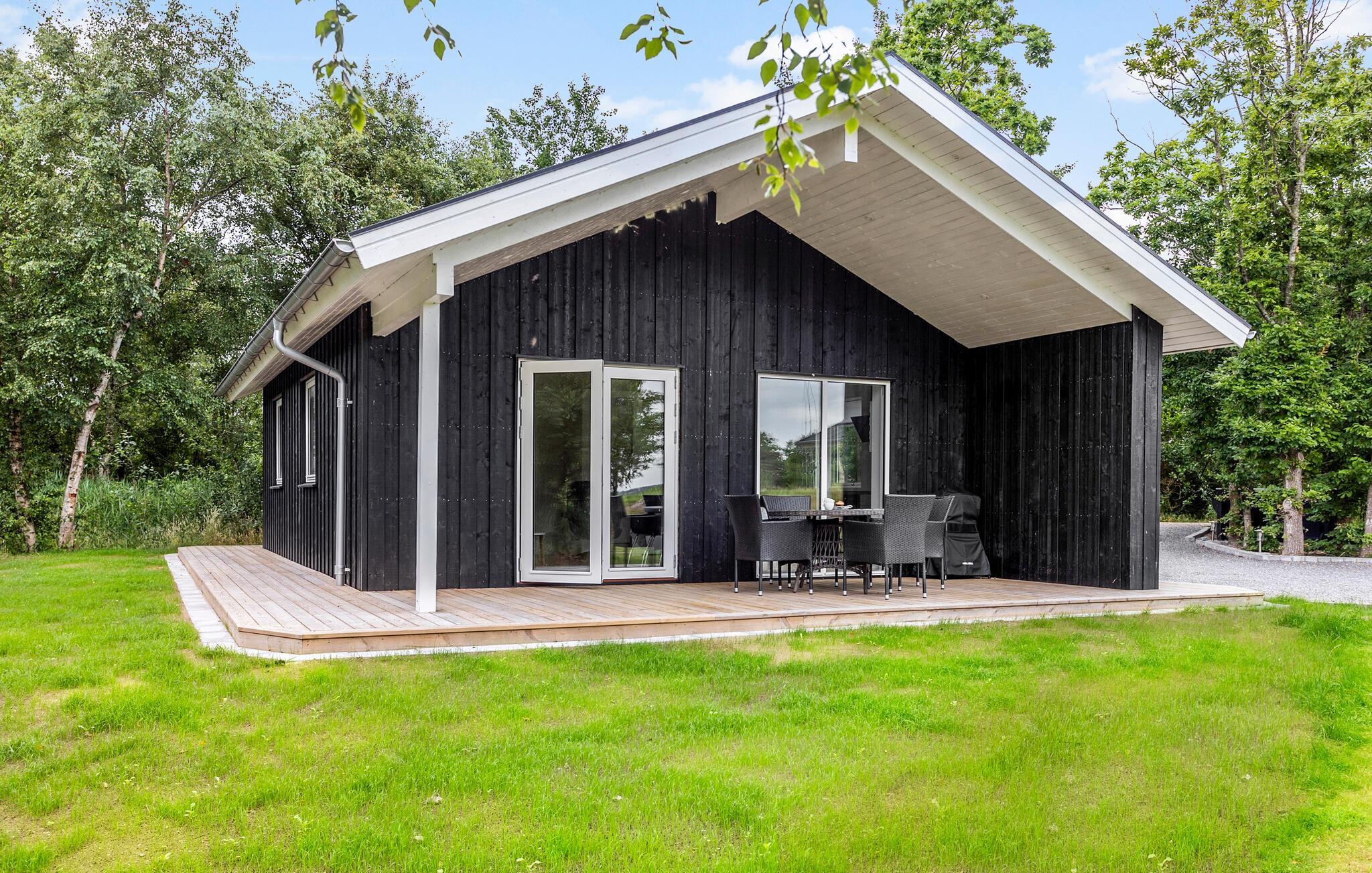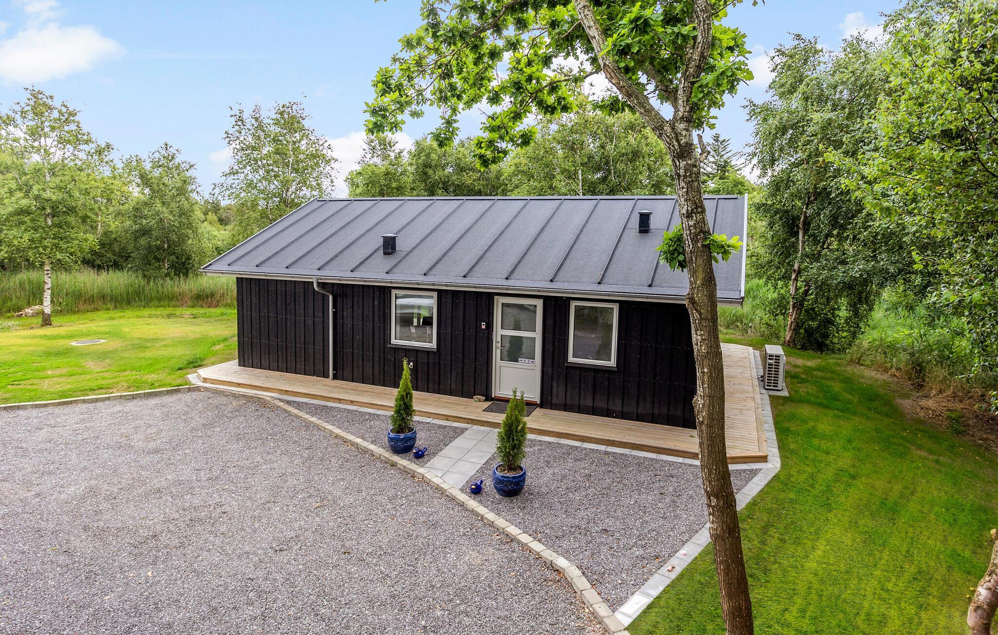 Ontspan in een modern vakantiehuis met houtinrichting nabij Helligsø Strand, ideaal voor rust en natuurbeleving.