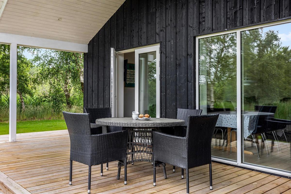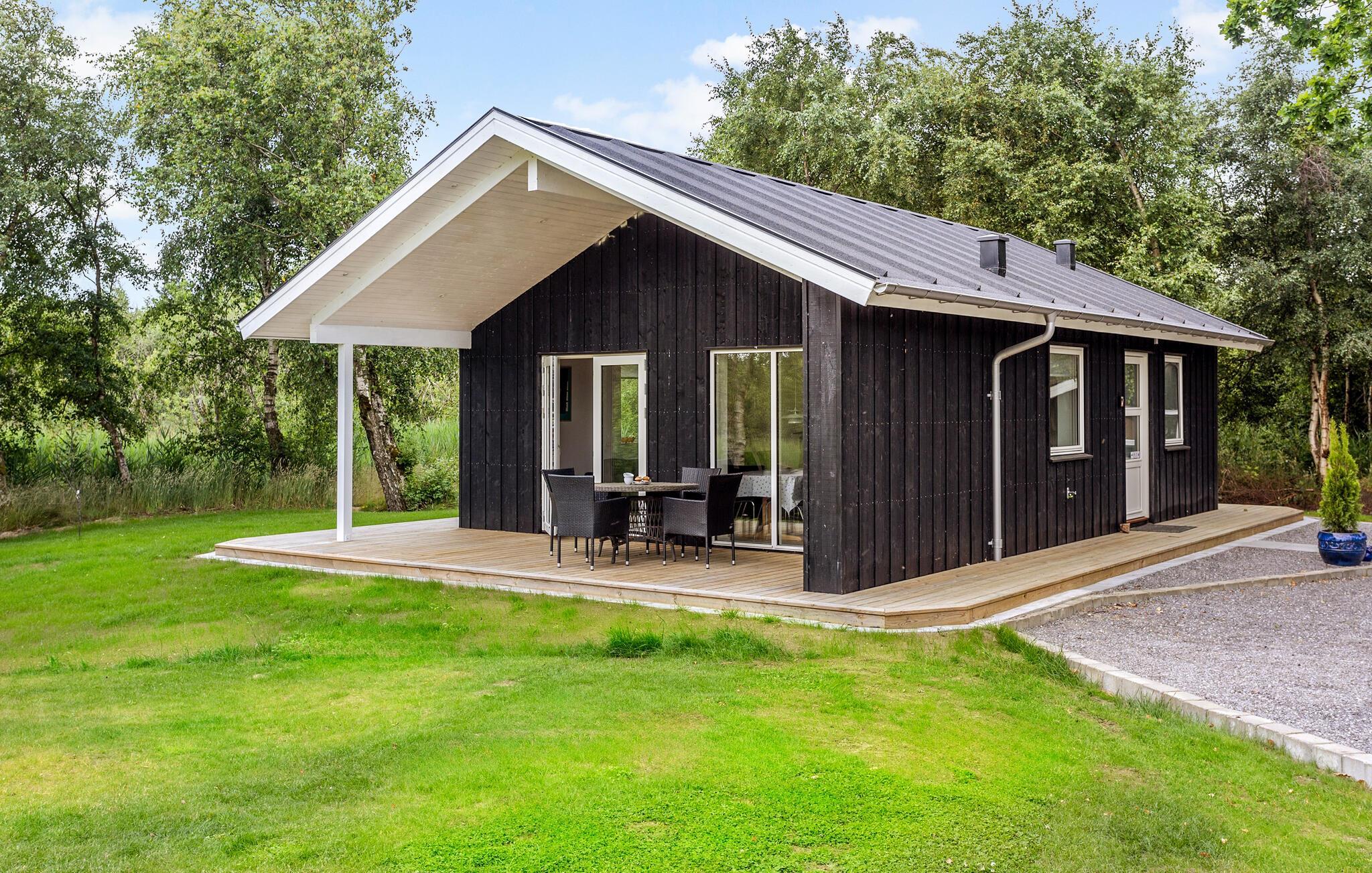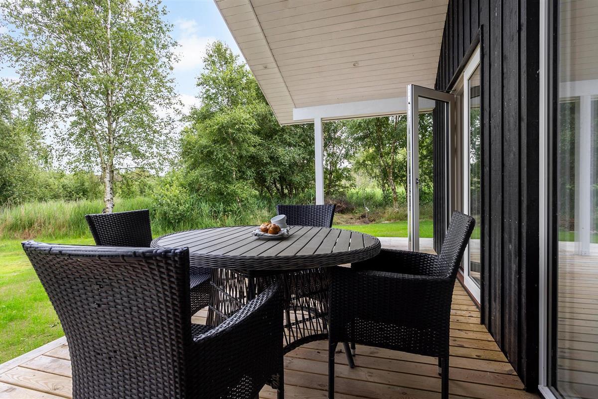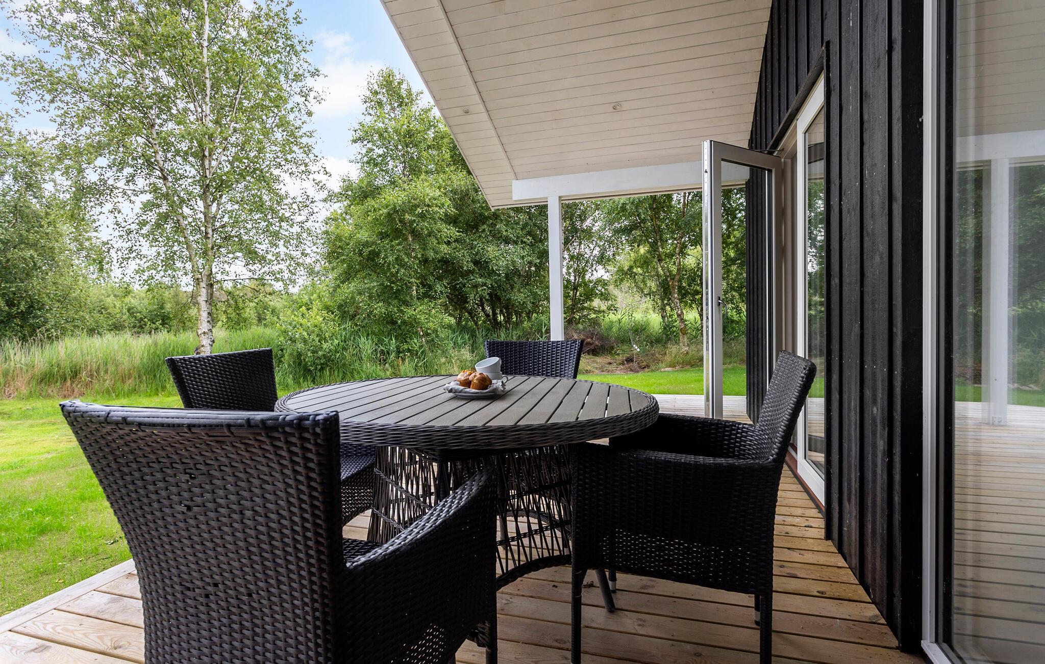 Ontspan in een modern vakantiehuis met houtinrichting nabij Helligsø Strand, ideaal voor rust en natuurbeleving.