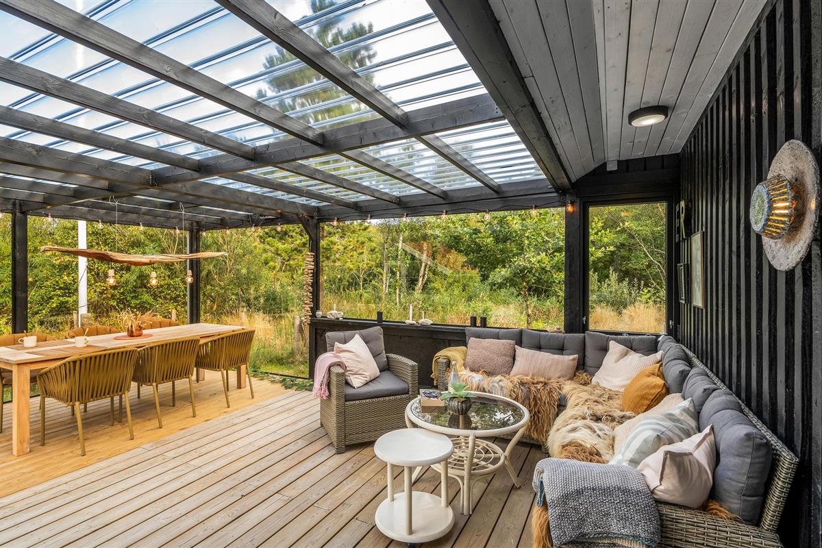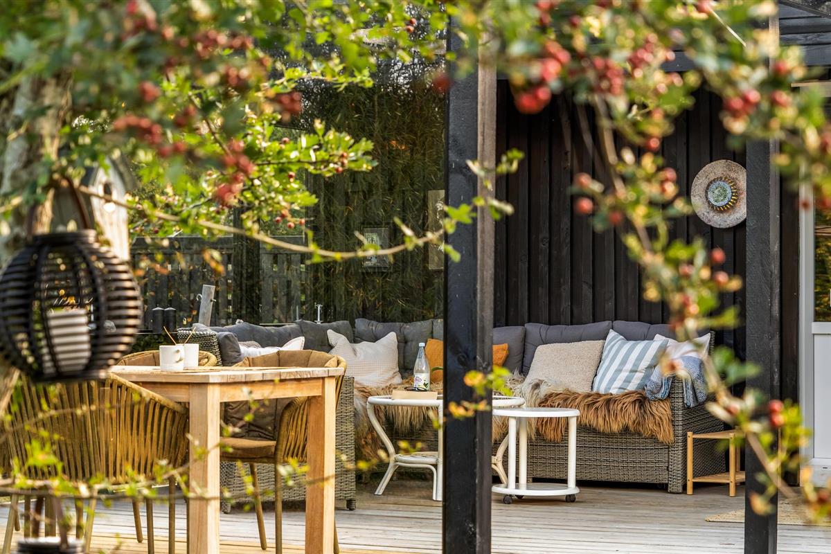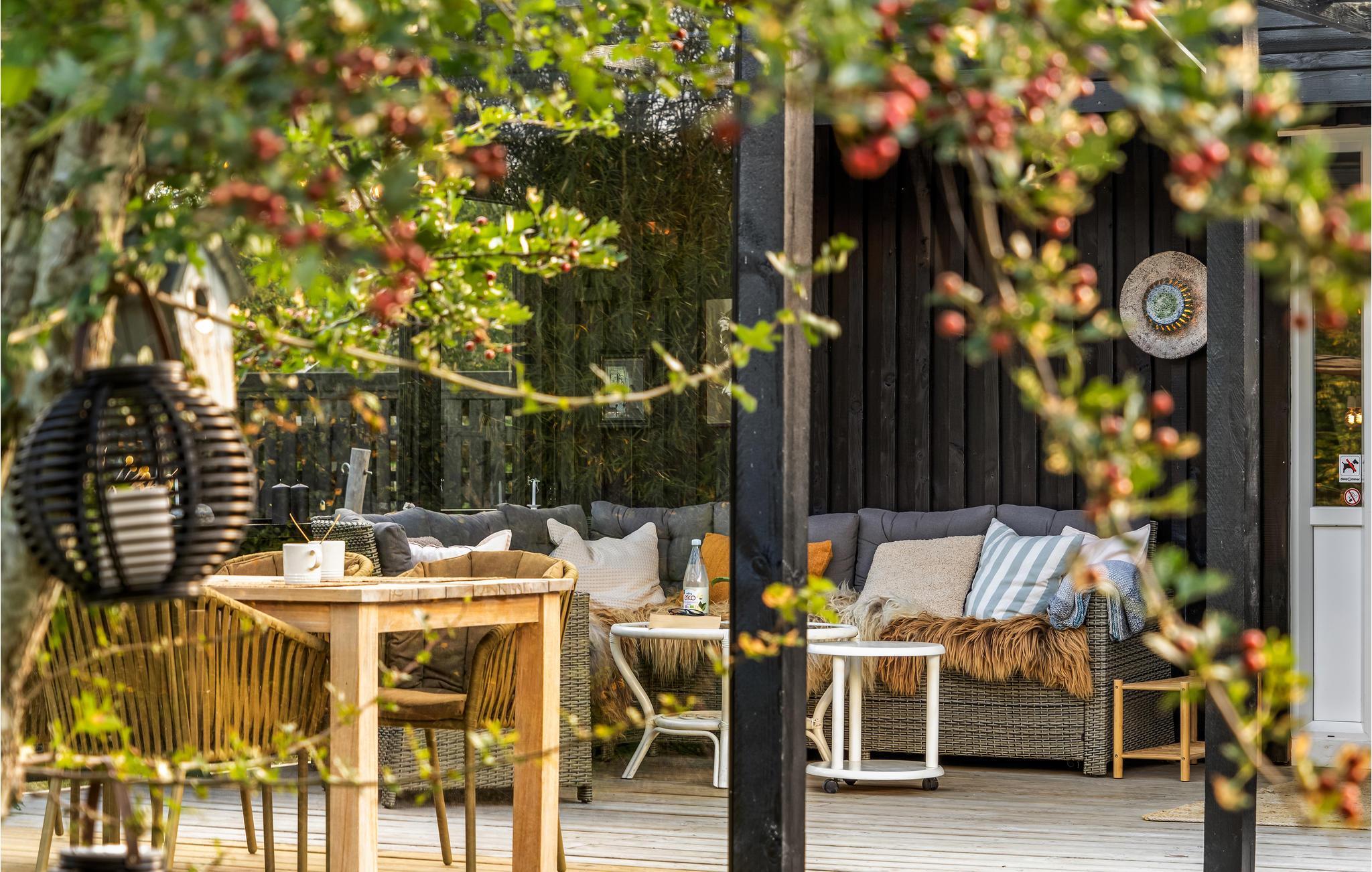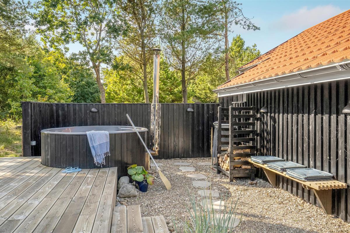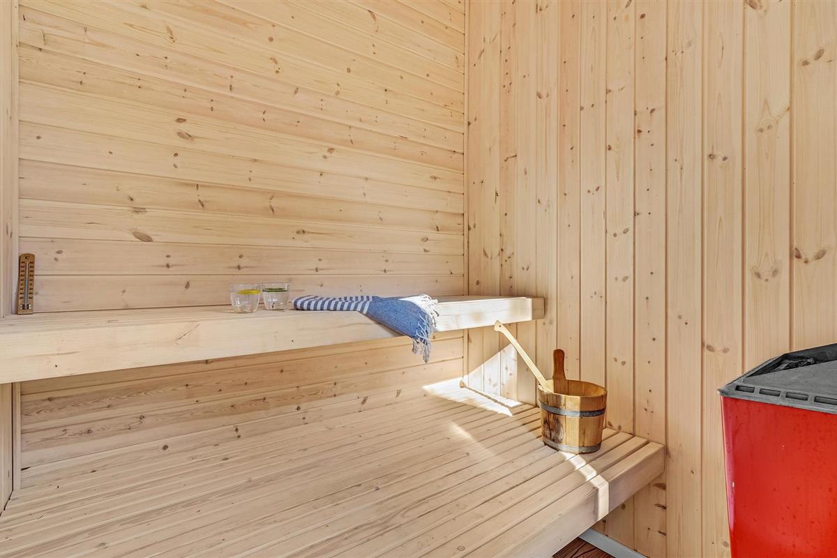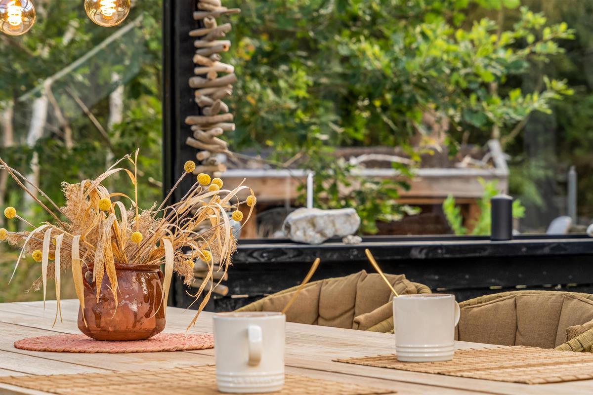 Het huis ligt op een mooi natuurperceel, dat veel ruimte biedt om buiten te zijn. Ontspan op het terras met open en overdekte delen of geniet van de zon op de ligstoelen met een spannend boek. Na een actieve vakantiedag nodigt het Finse houten bad of de sauna uit tot fijne wellnessmomenten. Of geniet van een kampvuur bij het afdak in de tuin.