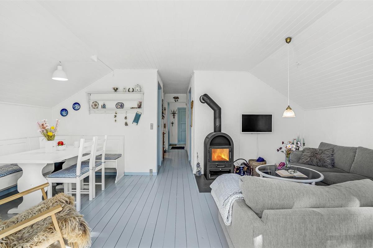 Dicht bij het fjord wacht dit uitnodigende vakantiehuis op u in Helligsø Strand.