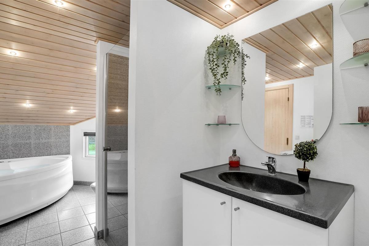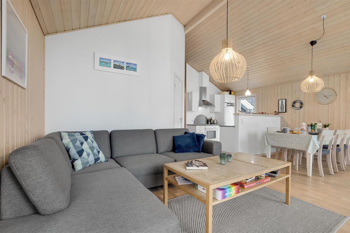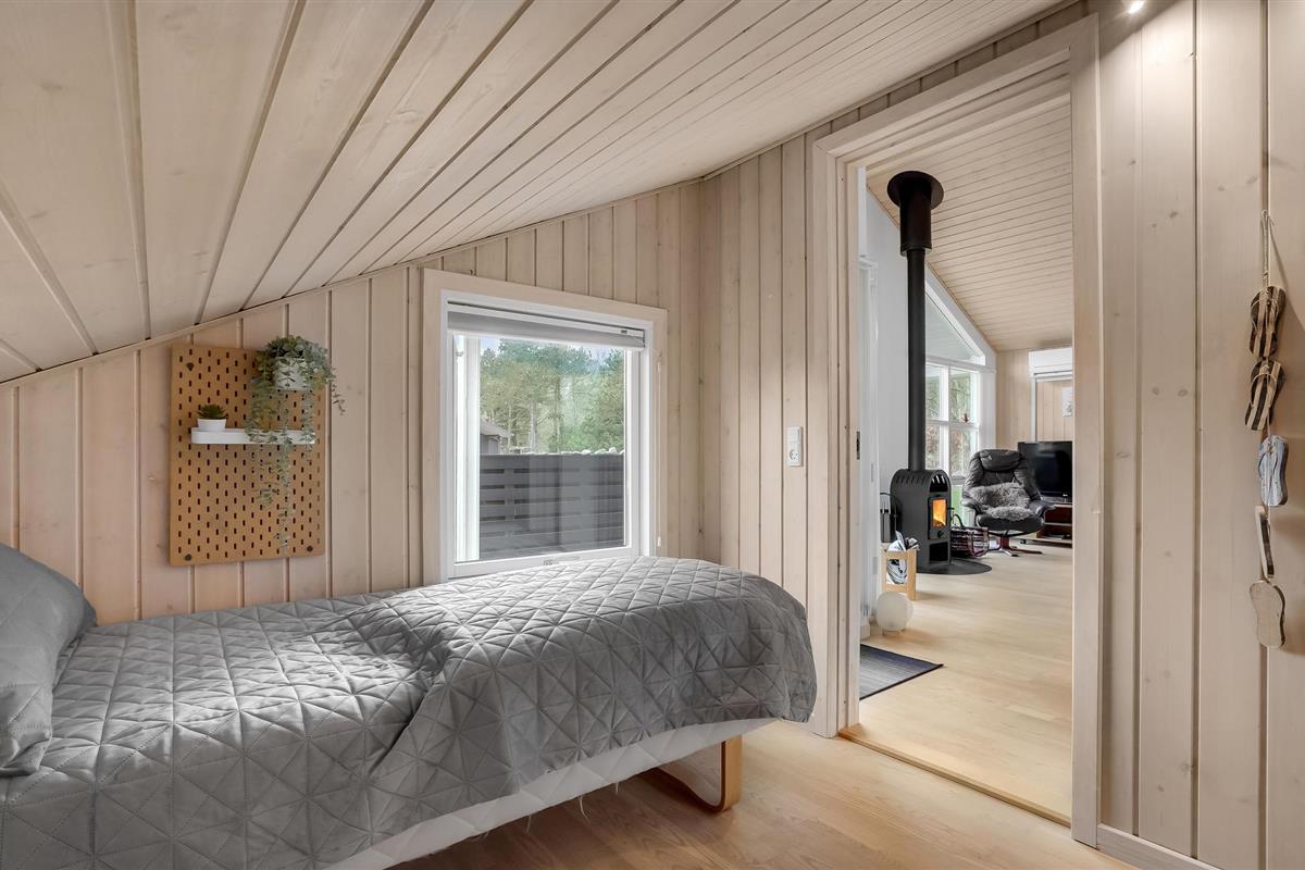 Niet ver van het water van de fjord verblijft u in een echte kleine vakantieoase. Het terrein rondom is groen en omzoomd met bomen, zittend op het terras kunt u rekenen op een aangenaam uitzicht. Hier kunt u genieten van lange avonden samen op het buitenmeubilair, maar ook voor totale ontspanning in de whirlpool ernaast.