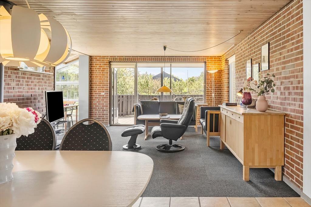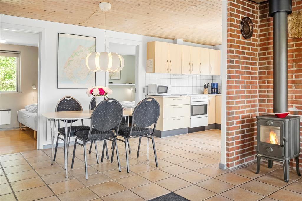 Der Sølvmågevej endet direkt am Ferienhaus. Das Grundstück grenzt an offene Felder, was die ruhige und friedvolle Atmosphäre merklich unterstreicht. Von Ihrem Haus aus spazieren Sie innerhalb von fünf Minuten an den Limfjord, an dem Sie baden, schöne Muscheln suchen, lange Spaziergänge unternehmen und die Aussicht über das Wasser genießen können. Die Umgebung erfreut sich bei Anglern und Wassersportlern größter Beliebtheit. Ambitionierte Windsurfer und Wellenreiter zieht es sicherlich an die Strände der legendären Küstenlinie Cold Hawaii, die per Pkw gut erreichbar ist.