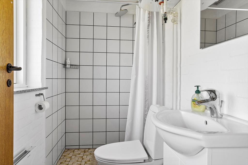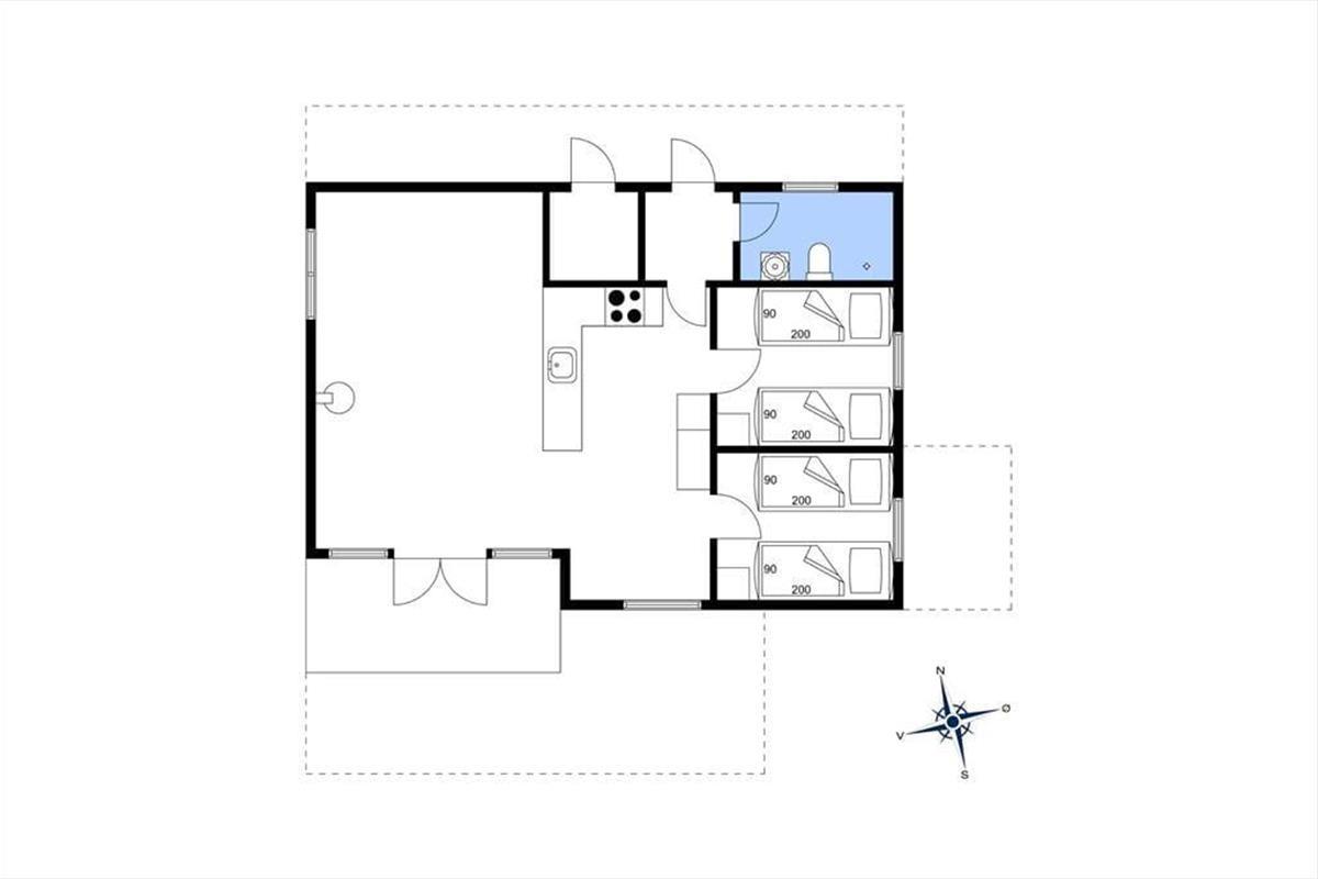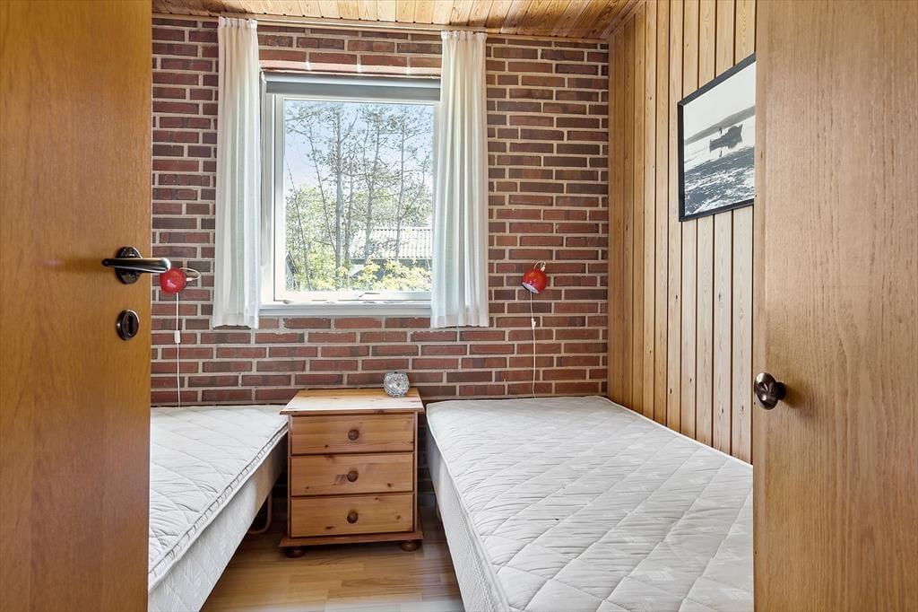 Das 62 m² große Urlaubsdomizil bietet eine gelungene Raumaufteilung für vier Personen. Die Schlafplätze verteilen sich auf zwei Schlafräume mit jeweils zwei Einzelbetten. Ein einfaches aber gutes Badezimmer mit einer Duschnische ist vorhanden. Zu entspannten und erholsamen Stunden lädt der Wohnraum ein. Dieser umfasst einen Kaminofen, einen Fernseher mit Parabolempfang und eine komfortable Möblierung. Die Küche ist offen in den Wohnraum integriert. Während Sie die Mahlzeiten zubereiten oder rund um den Esstisch in geselliger Runde beisammensitzen, genießen Sie stets die Aussicht auf die reizvolle Küstenlandschaft.