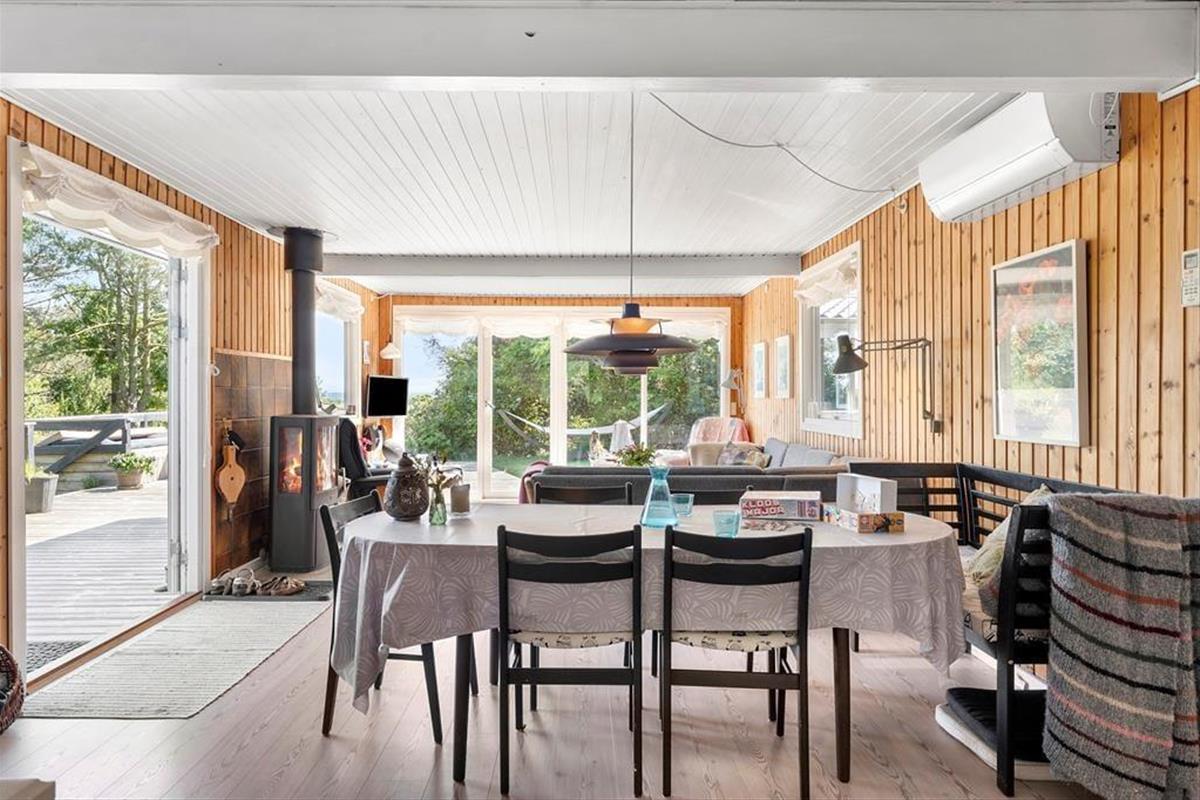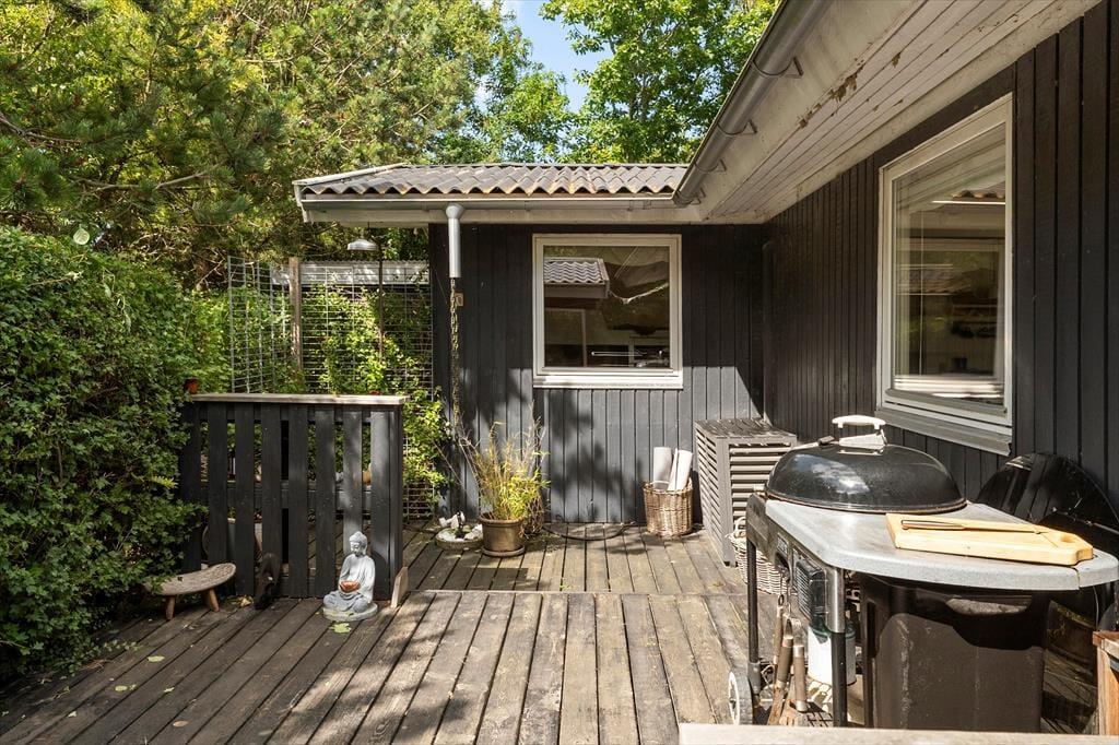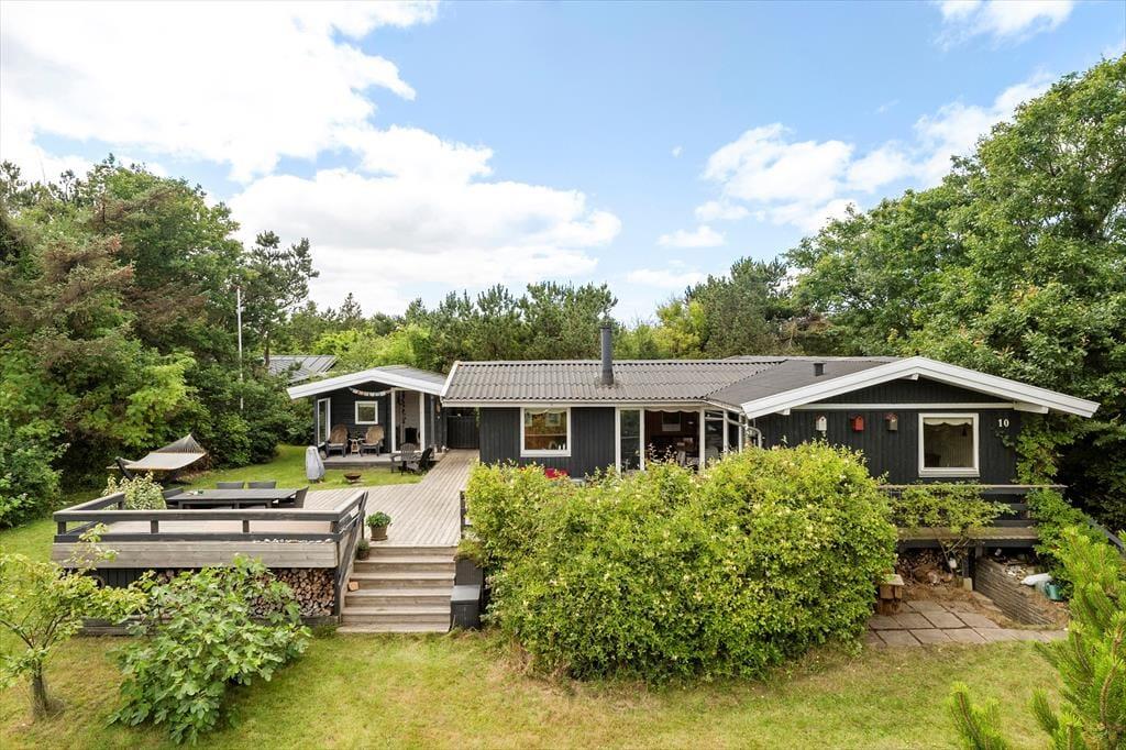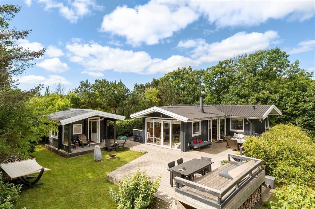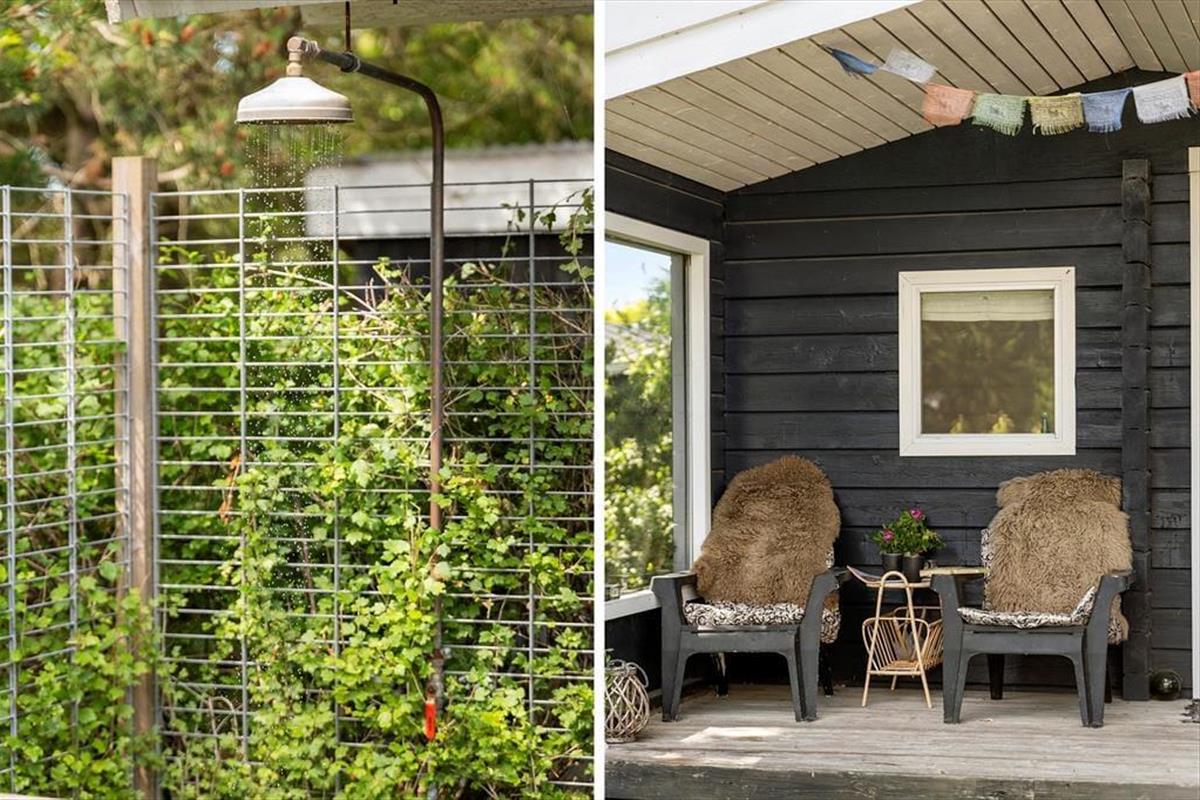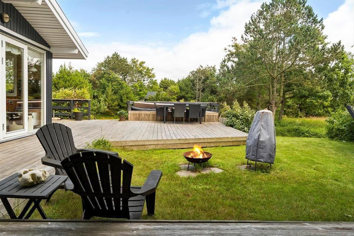 Draußen gibt es viel Platz, um das Leben an der frischen Luft zu genießen. Das Haus liegt auf einem schönen Grundstück mit Rasenfläche, Garten und einer herrlichen Aussicht über die offene Landschaft. Die große Terrasse wird schnell zum Treffpunkt, wenn die Sonne scheint – hier findest du eine windgeschützte Ecke für den Nachmittagskaffee oder kannst das Abendessen unter freiem Himmel genießen. Nach einem Tag am Strand oder auf Erkundungstour in der Umgebung kannst du Sand und Salz unter der Außendusche abspülen. Und wenn es dunkel wird, ist es naheliegend, das Feuer an der Feuerstelle zu entfachen – für Stockbrot, Geschichten und gemeinsame Urlaubserinnerungen. Kurzum: Hier warten viele schöne Momente unter freiem Himmel auf dich.