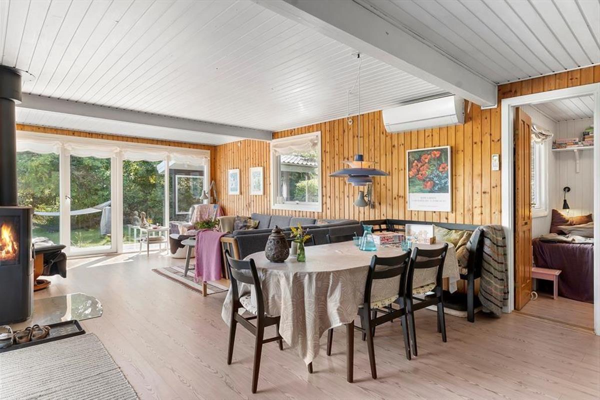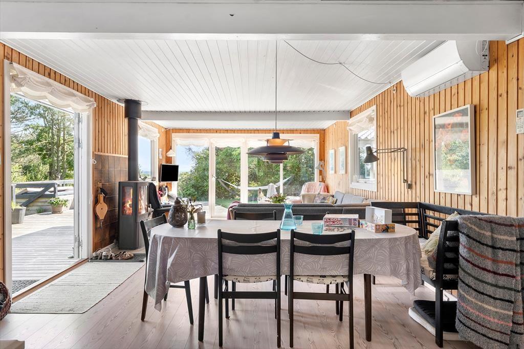Dieses schöne Ferienhaus in der Fjordternevej 10 in Helligsø Drag ist die perfekte Wahl, wenn du von einem Urlaub träumst, bei dem Natur, Gemütlichkeit und gemeinsame Momente im Mittelpunkt stehen. Hier wohnst du in der Nähe von sowohl Meer als auch Fjord – und in einer ruhigen Gegend, von der aus es nicht weit zu Einkaufsmöglichkeiten oder Naturerlebnissen ist. Vom Haus und dem Garten aus hast du einen schönen Blick auf die umliegende Landschaft, und mit Kaminofen, Außendusche, Feuerstelle und einer schönen Terrasse findest du hier die perfekten Rahmenbedingungen für einen entspannten Urlaub – mit oder ohne Hund.