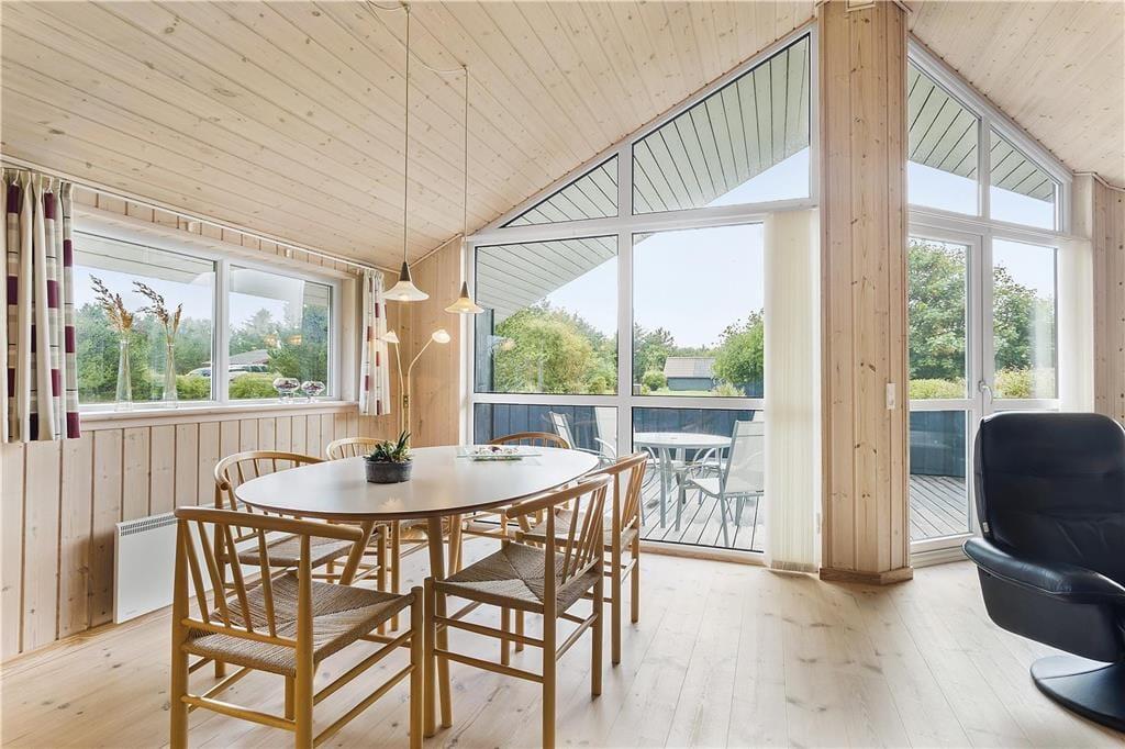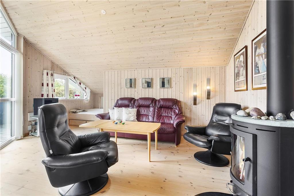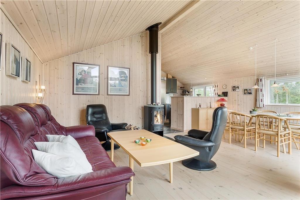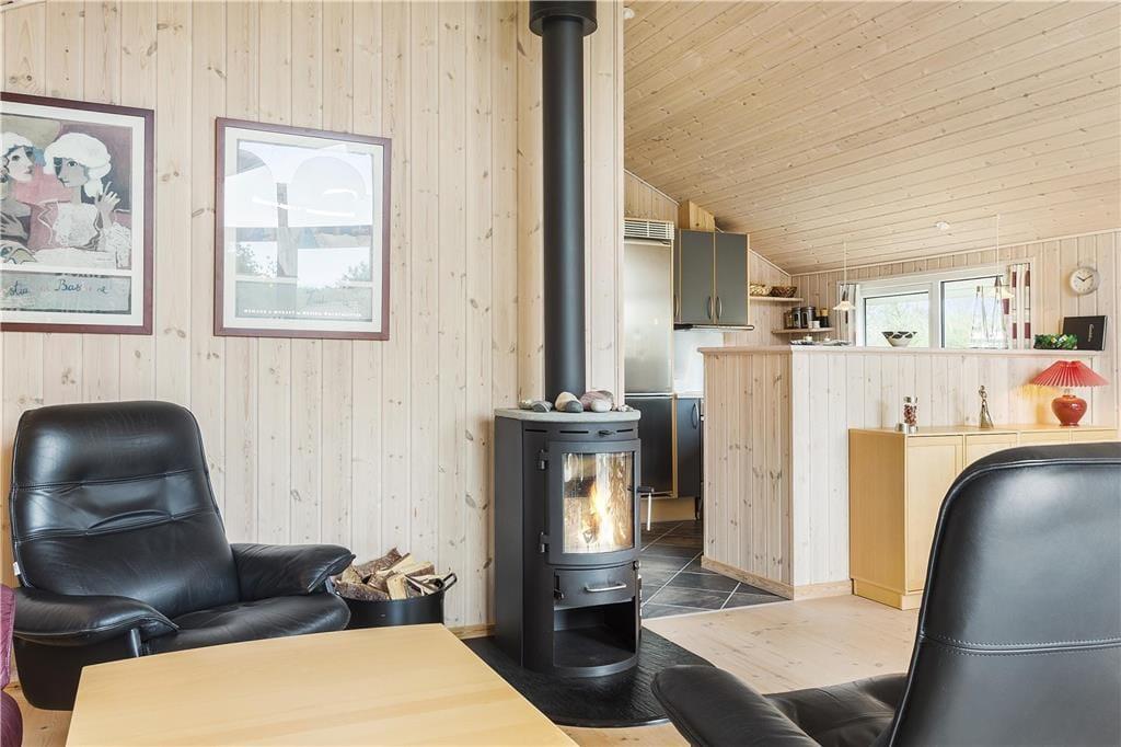 Wenn du das Ferienhaus betrittst, wirst du von einer einladenden Atmosphäre begrüßt, die dir das Gefühl gibt, zu Hause zu sein. Der offene Wohnbereich ermöglicht es dir, viel Zeit mit deinen Lieben zu verbringen. Der Kaminofen sorgt an kühleren Tagen für zusätzliche Gemütlichkeit und Wärme, und du kannst ein gutes Buch lesen oder ein Brettspiel vor den Flammen genießen. Die drei Schlafzimmer sind geräumig und in hellen, ruhigen Farben eingerichtet, sodass du den besten Schlaf genießen und mit Blick auf die schöne Natur aufwachen kannst. Die offene Küche gibt dir die Möglichkeit, zu kochen, während du in der Nähe deiner Feriengäste bleibst, und das praktische Layout macht das Haus sowohl funktional als auch angenehm.