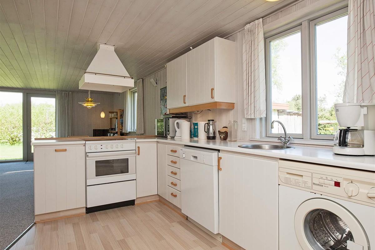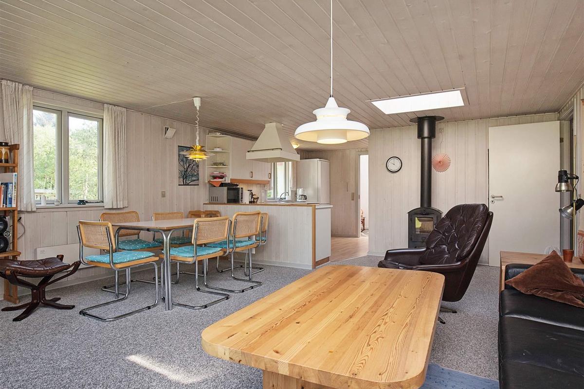 Dieses ansprechend möbilierte Ferienhaus liegt auf einem 1200 m² großen Naturgrundstück mit Rasenfläche. Um das Haus herum führt eine 40 m² große Terrasse, so dass Sie hier immer eine geschützte Ecke finden können. Innen erwartet Sie ein großes, helles Wohnzimmer mit Holzofen, eine offene Küche mit Herd, Abzugshaube, Mikrowelle, einem separaten Gefrierplatz und einer Spülmaschine, vier Schlafzimmer und ein Badezimmer mit einer Sauna.