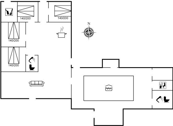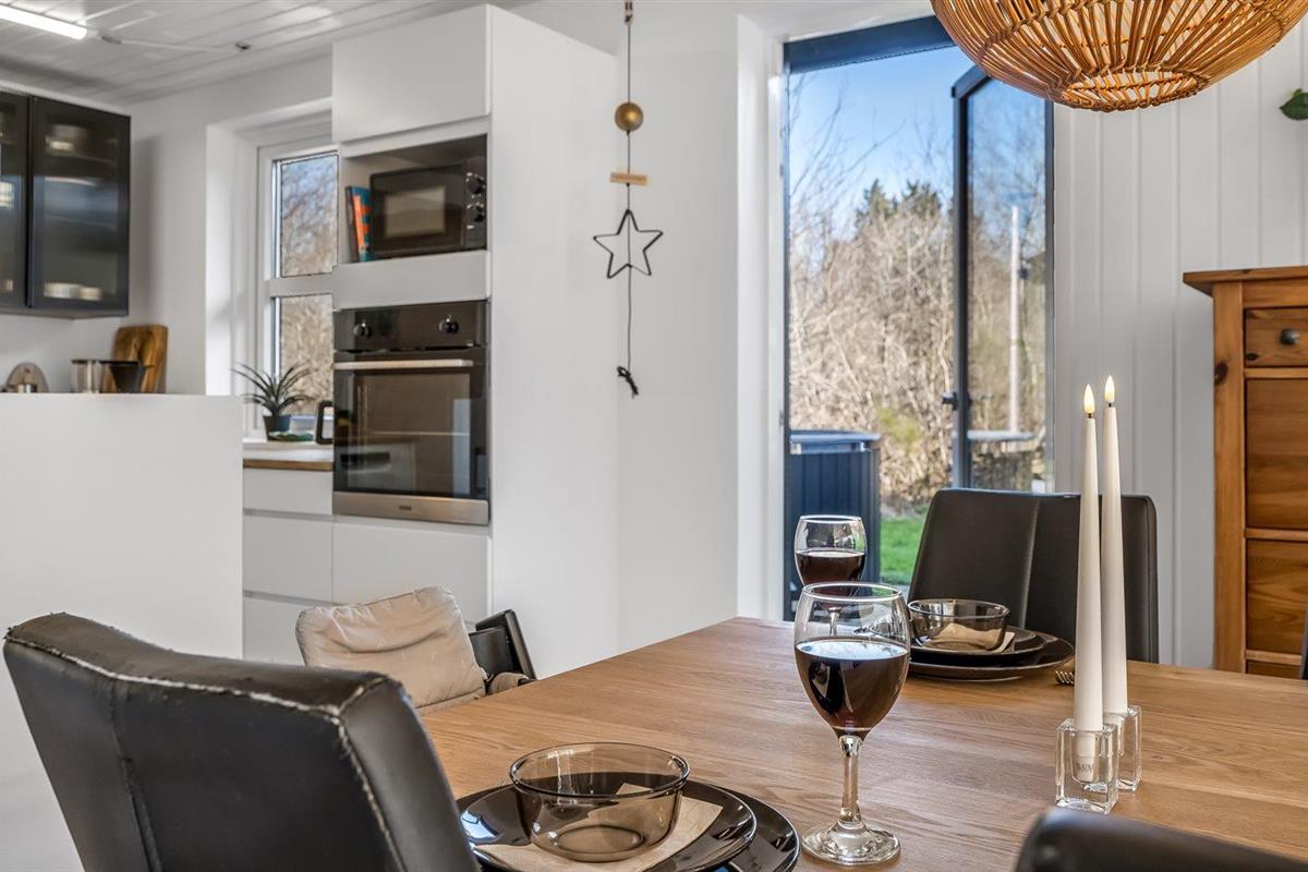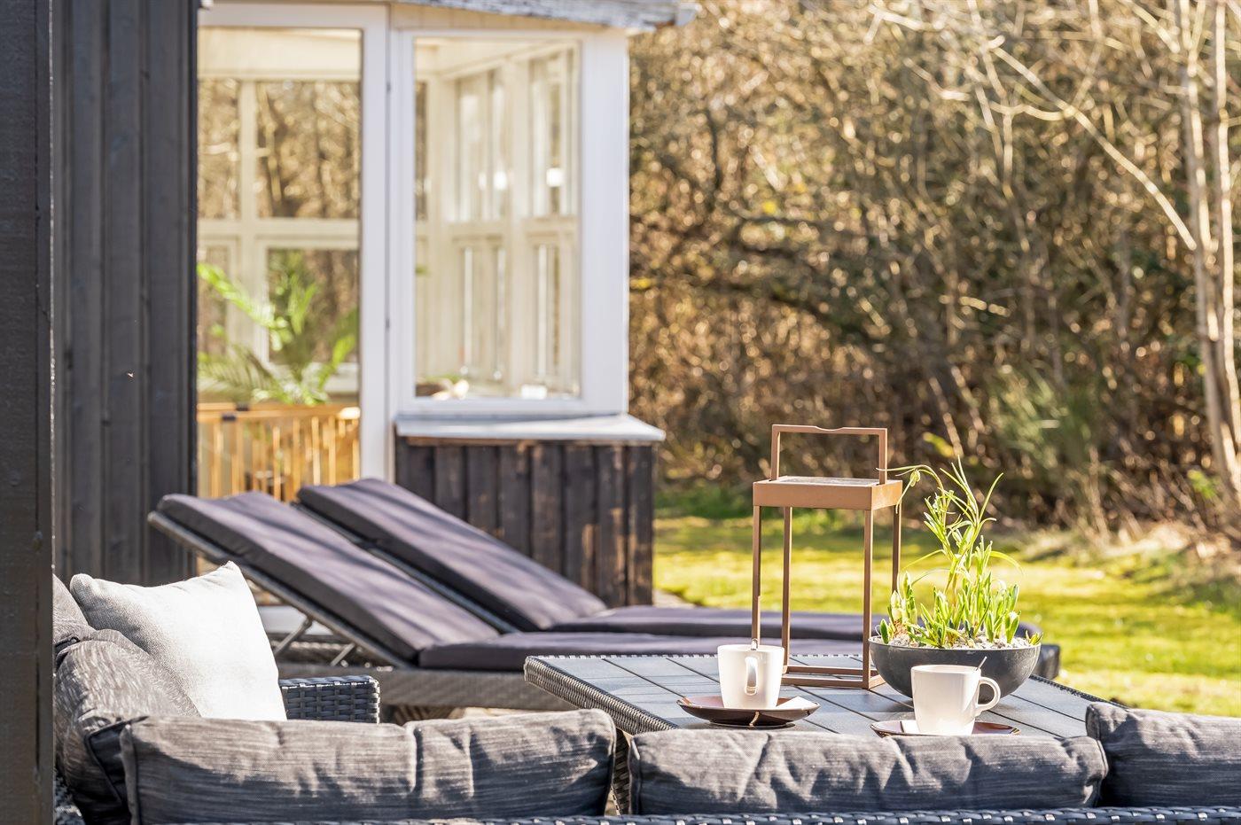 De vakantiewoning is gelegen op een 4790 m² groot natuural grond. Afstand tot de zee 7500 m. Afstand tot de fjord 250 m. Afstand tot meer 250 m. Er is een zwemsteiger in de buurt. Dichtstbijzijnde winkel 4000 m. Er is een golfbaan op een afstand van 3000 m. Bij de vakantiewoning hoort terras. Schommel. Zandbak. Speeltoren. Glijbaan. Barbecue. Parkeerplaats bij het huis.