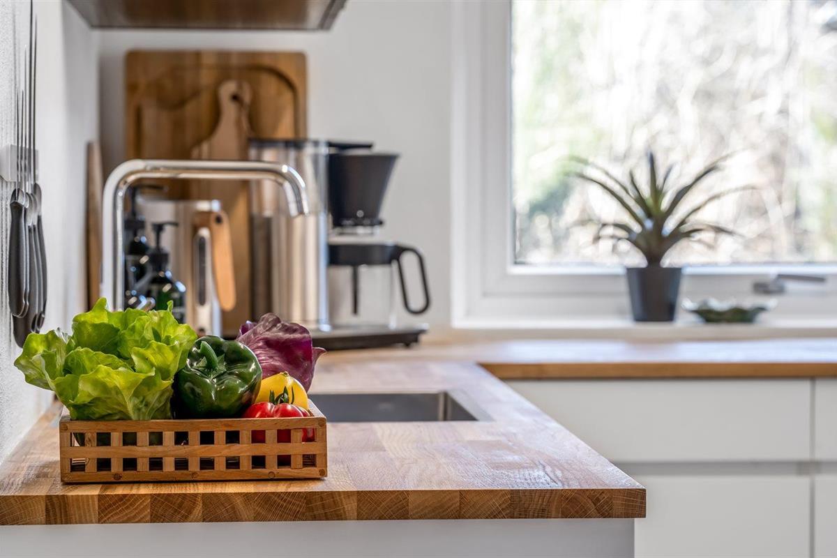 De keuken is uitgerust met koelkast Er zijn 4 keramische kookplaten, heteluchtoven, magnetron en vaatwasser.