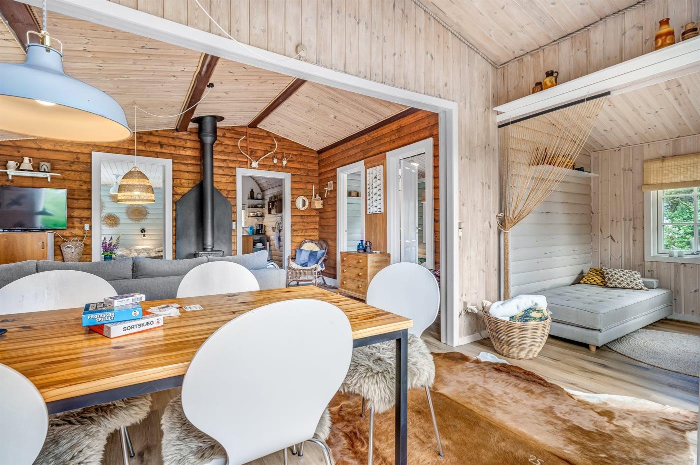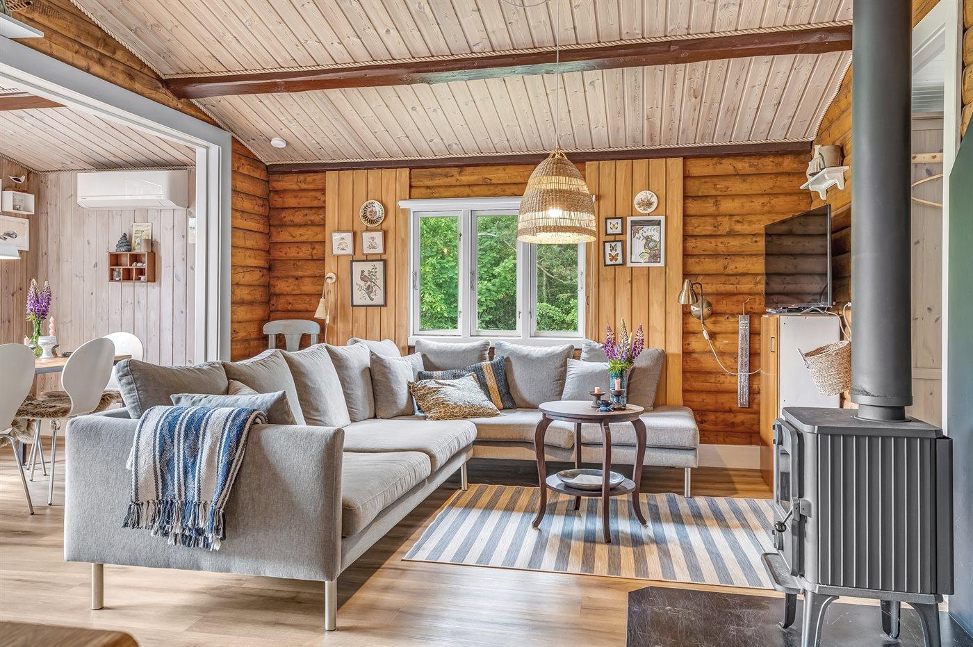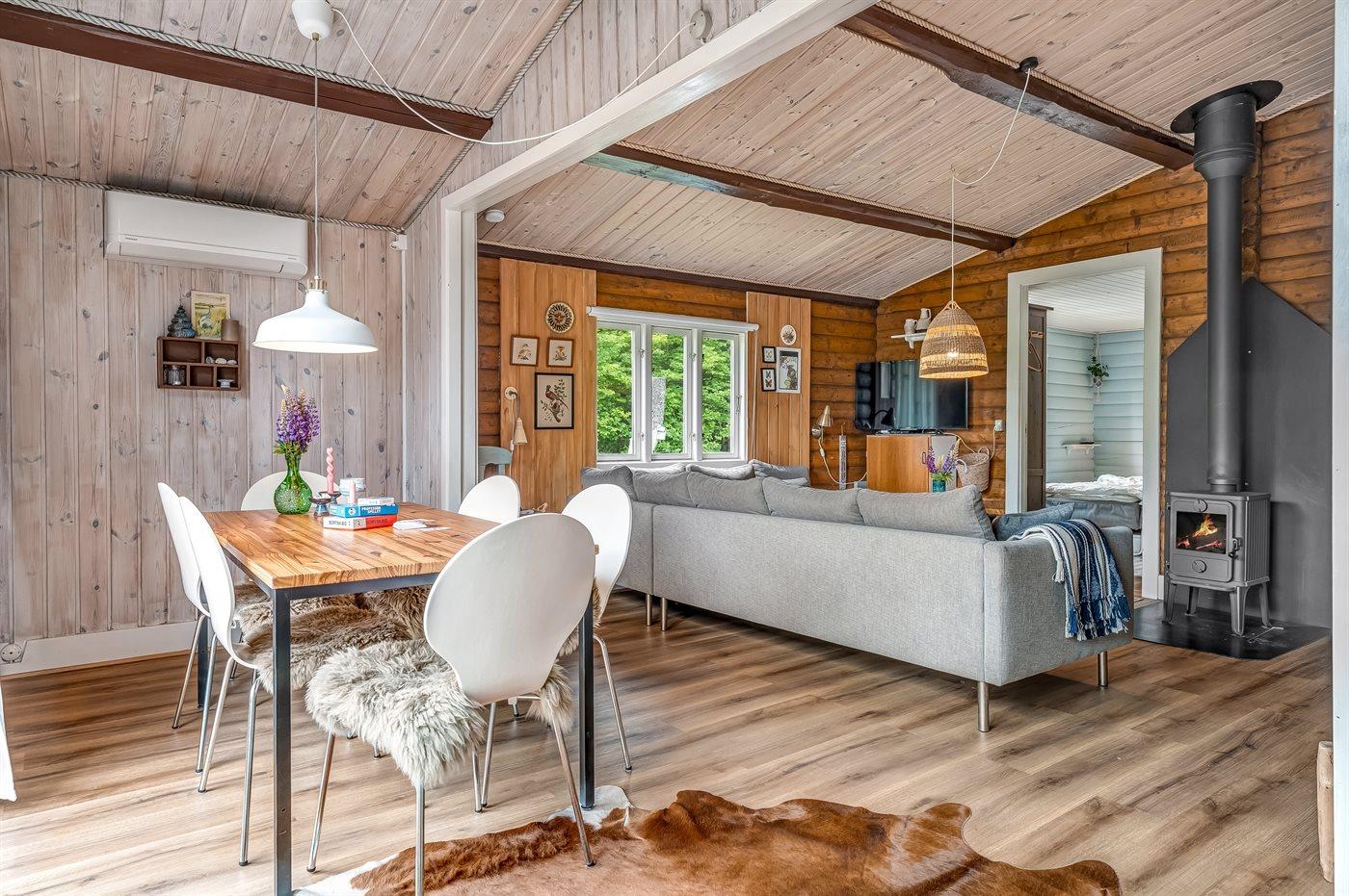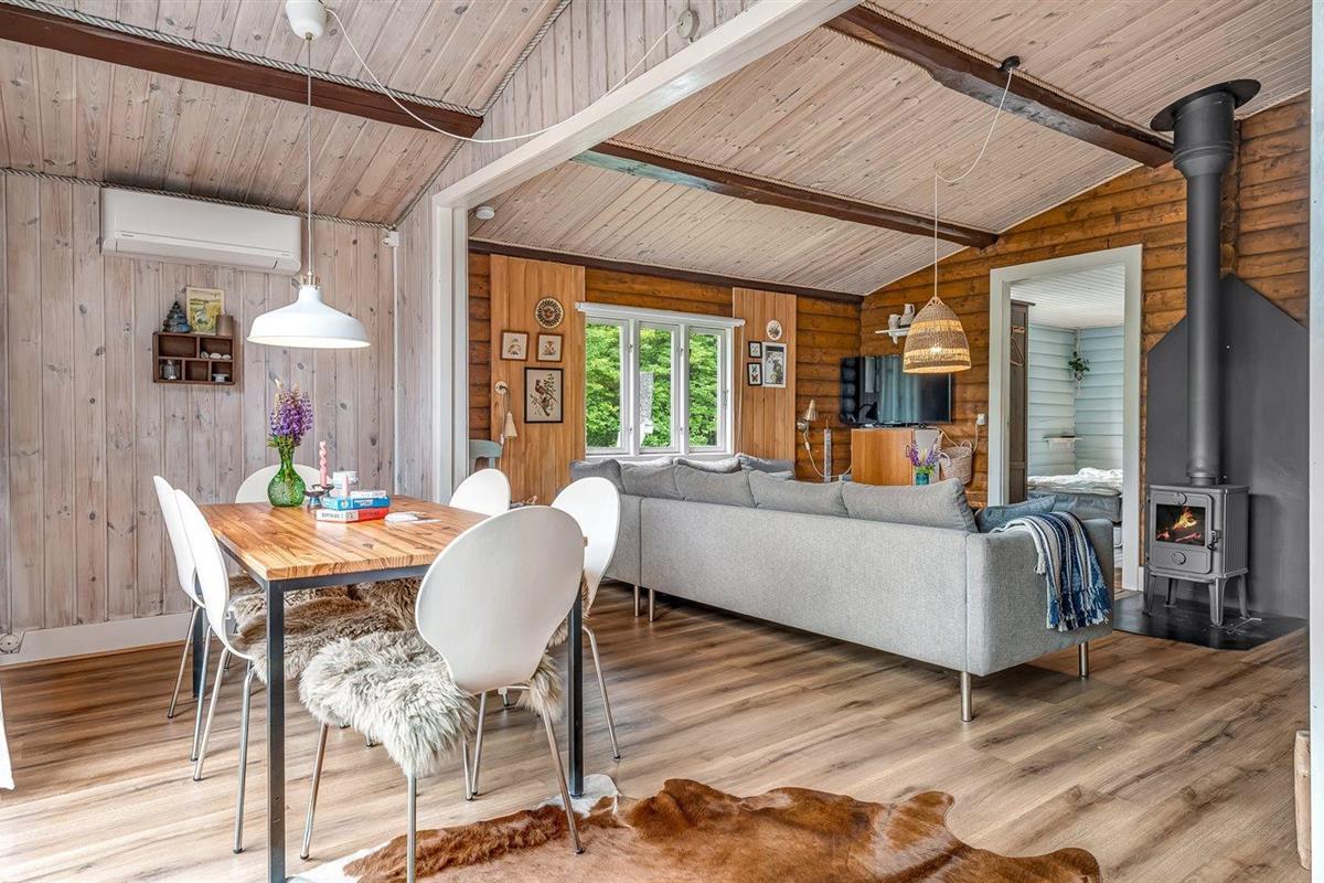 De vakantiewoning is gelegen op een 1258 m² groot natuural grond. Afstand tot de fjord 100 m. Er is een zwemsteiger in de buurt. Dichtstbijzijnde winkel 8500 m. Er is een golfbaan op een afstand van 6000 m. Bij de vakantiewoning hoort terras. Parkeerplaats bij het huis.
