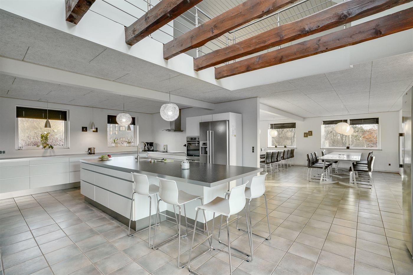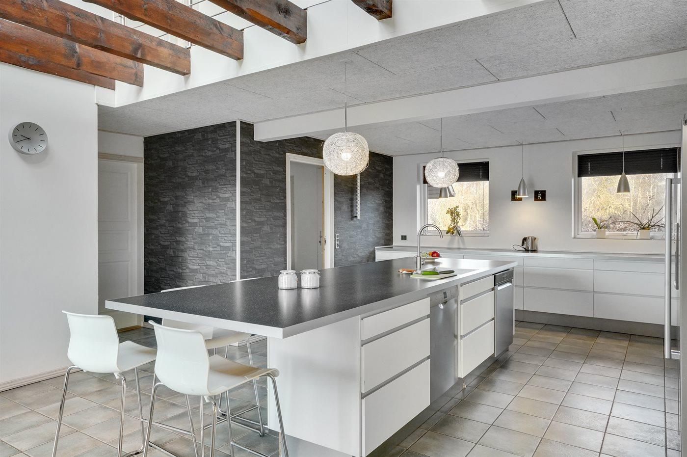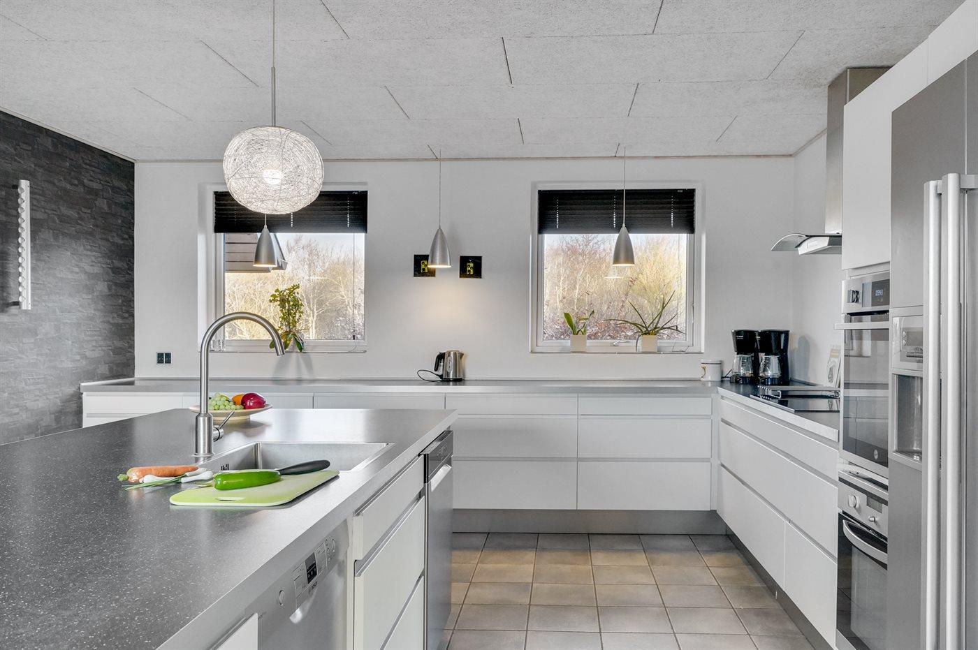 De keuken is uitgerust met koelkast Er is 4 inductiekookplaten, heteluchtoven, magnetron en vaatwasser.